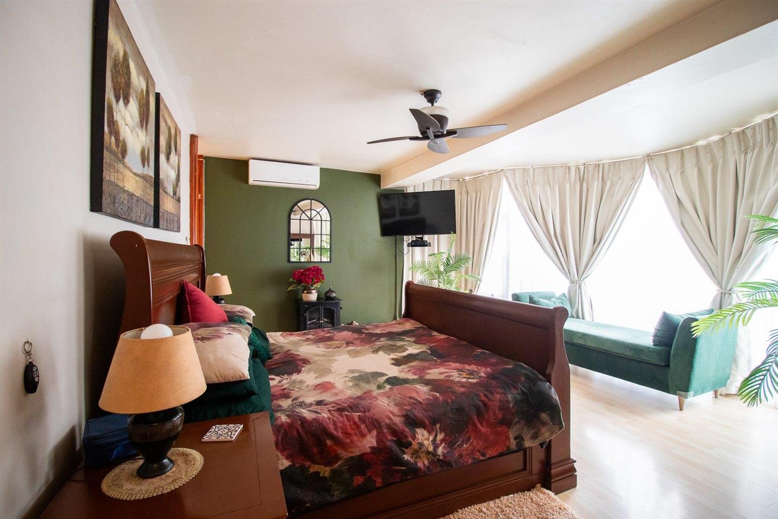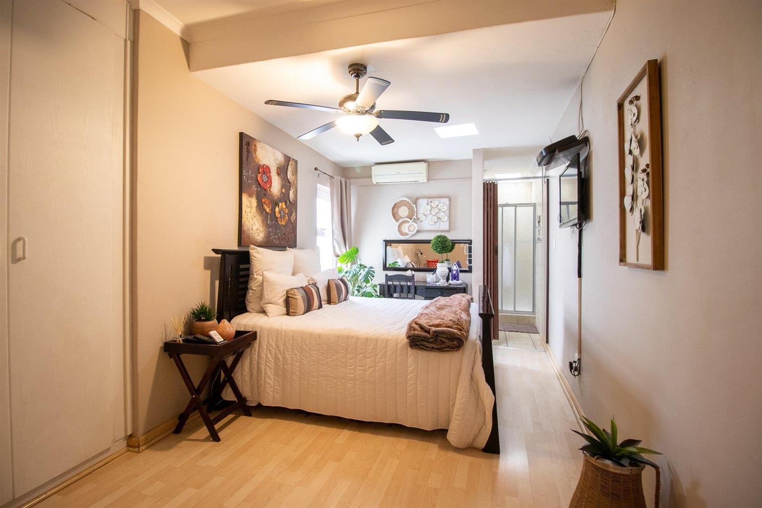 Convenience and functionality extend beyond the main living areas. The property includes outside servants' quarters with a shower, basin, and loo. A double automated garage provides secure parking, complemented by an alarm system and 24-hour main gate security for peace of mind. Eco-conscious homeowners will appreciate the six solar panels, 5 kW inverter, and 5 kW lithium battery, making this home both sustainable and energy-efficient.