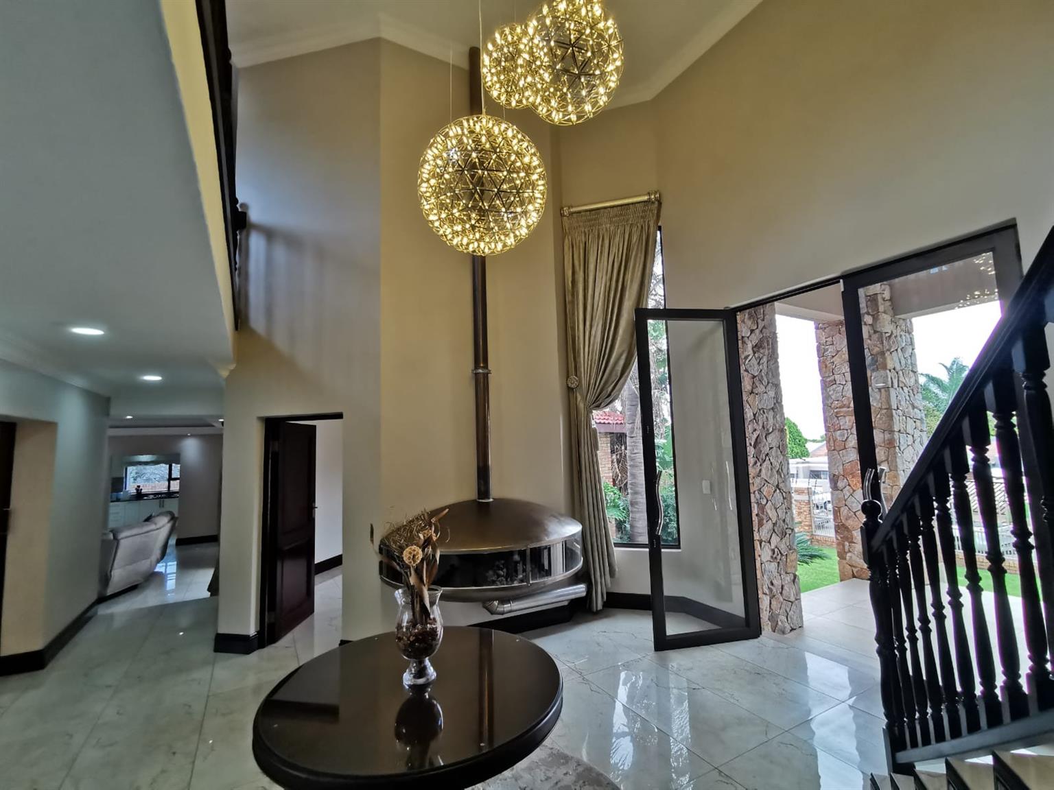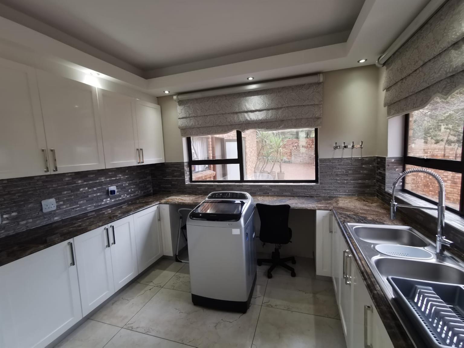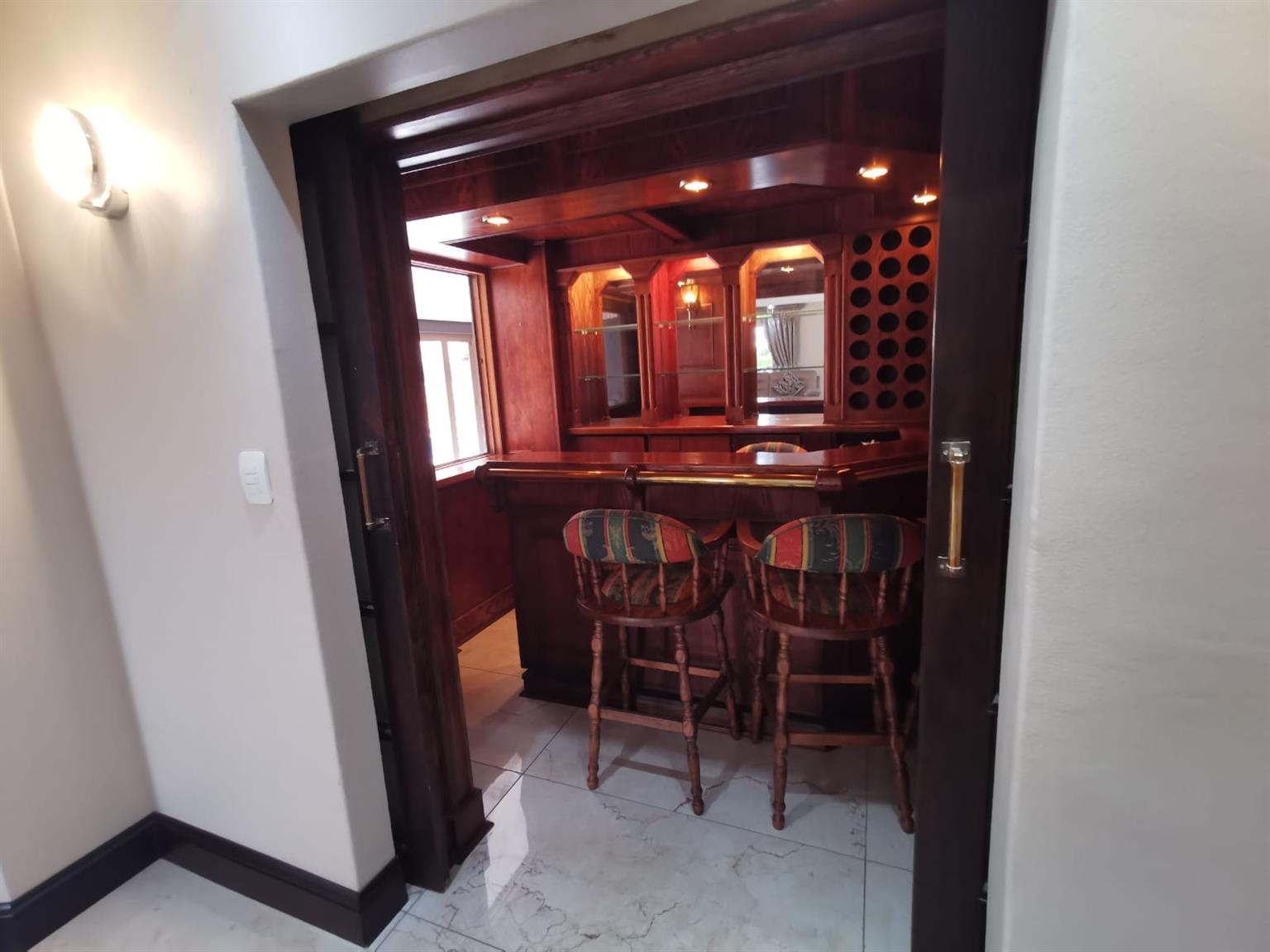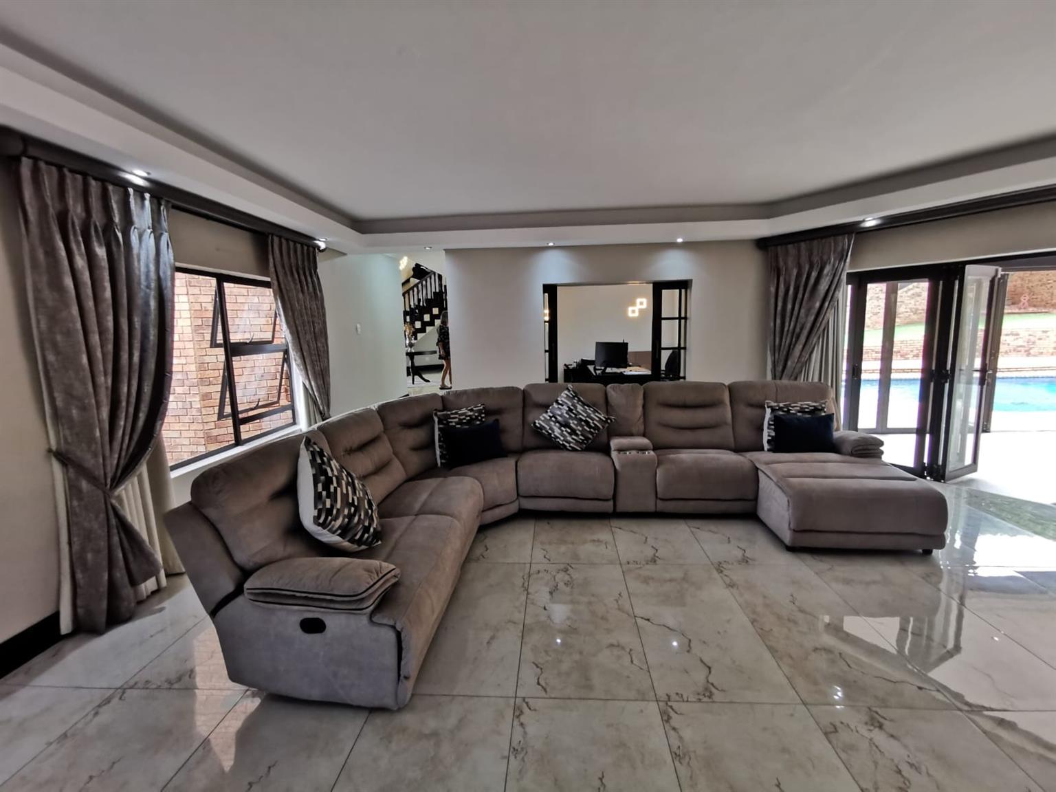 You’ll be captivated by the grand double-volume entrance, featuring a anthracite fireplace and chandelier. Designed for both relaxation and entertainment, the home offers two lounges, a formal dining room, a built-in bar, and a private study. The gourmet kitchen is , equipped with high-end appliances and a separate scullery.