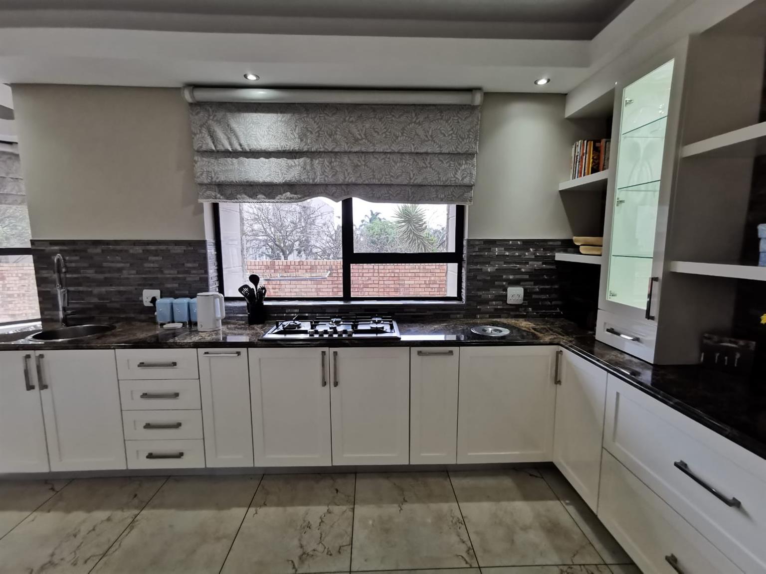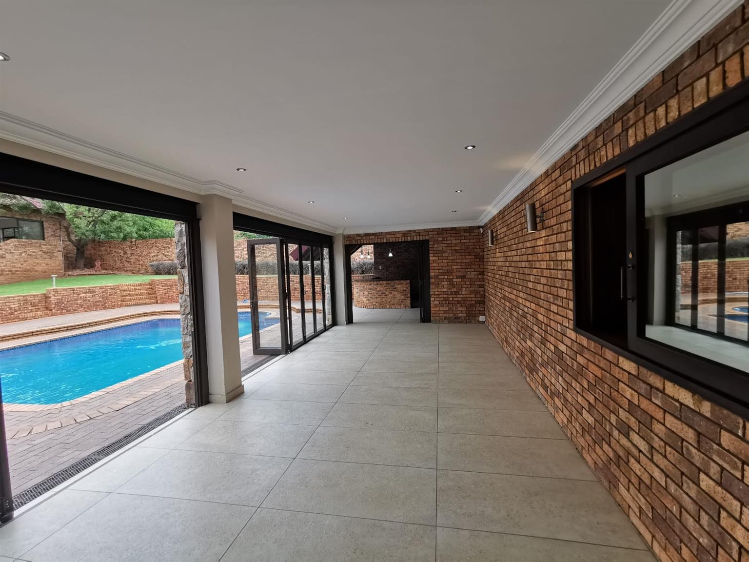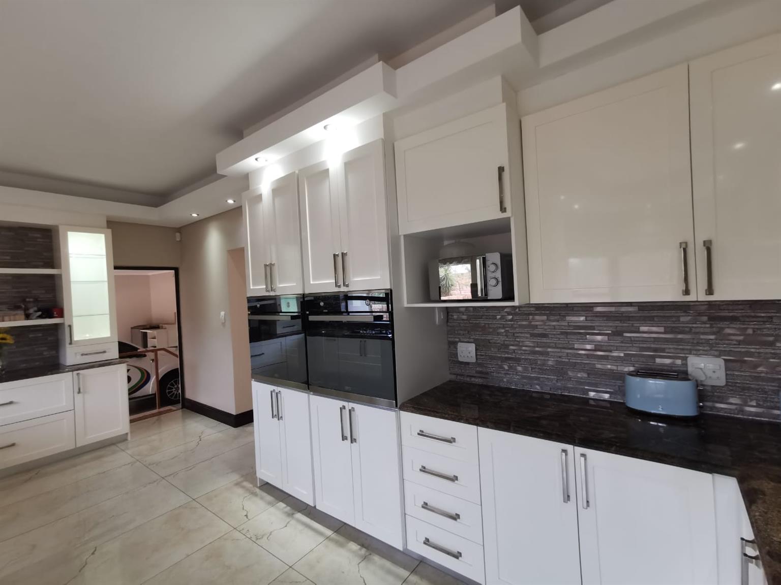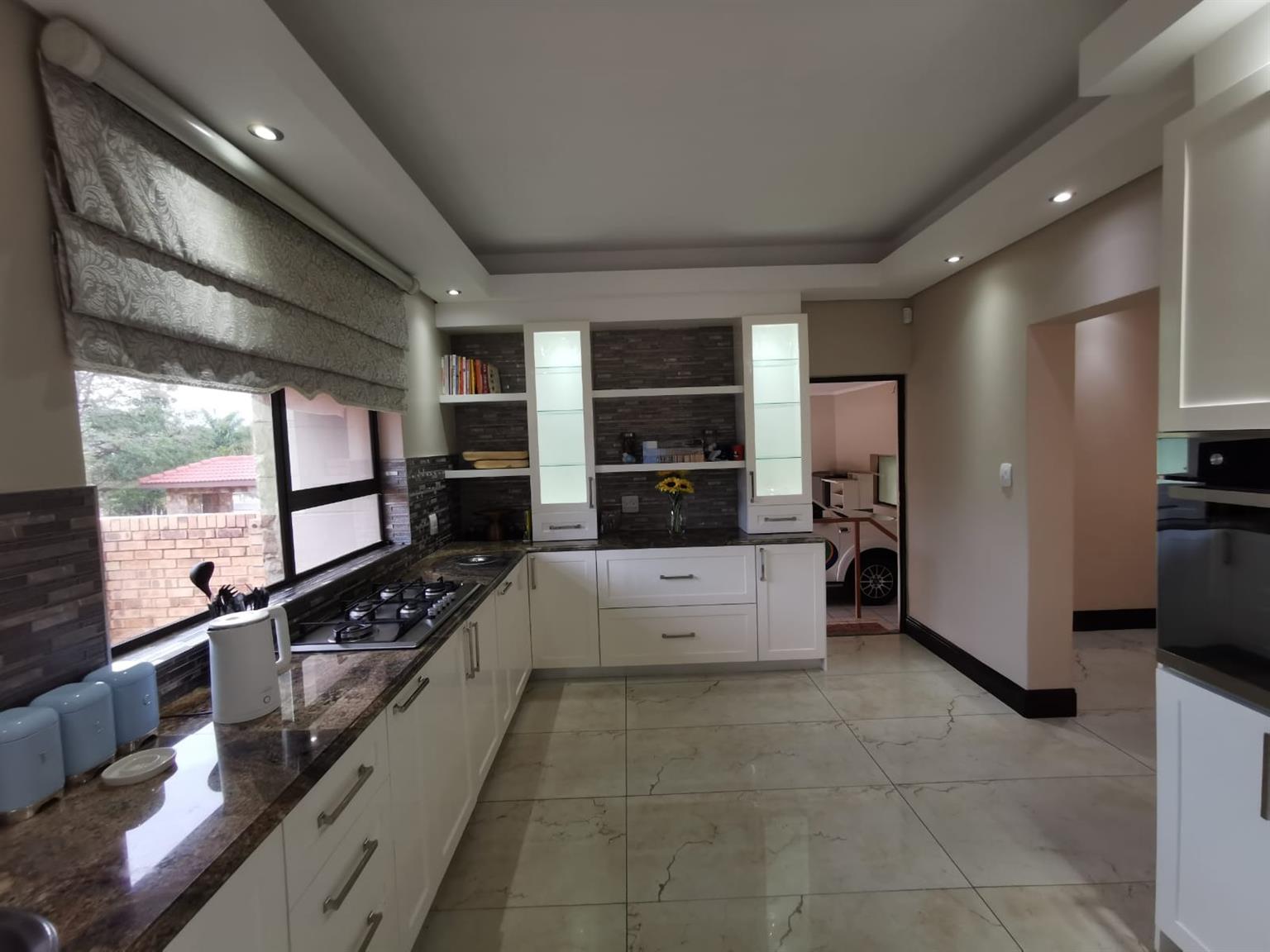 You’ll be captivated by the grand double-volume entrance, featuring a anthracite fireplace and chandelier. Designed for both relaxation and entertainment, the home offers two lounges, a formal dining room, a built-in bar, and a private study. The gourmet kitchen is , equipped with high-end appliances and a separate scullery.