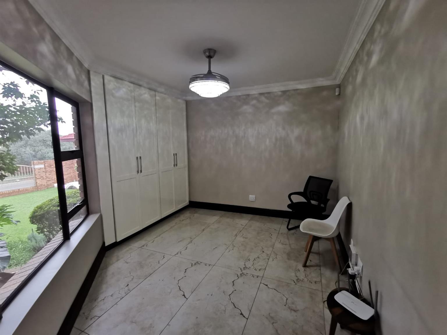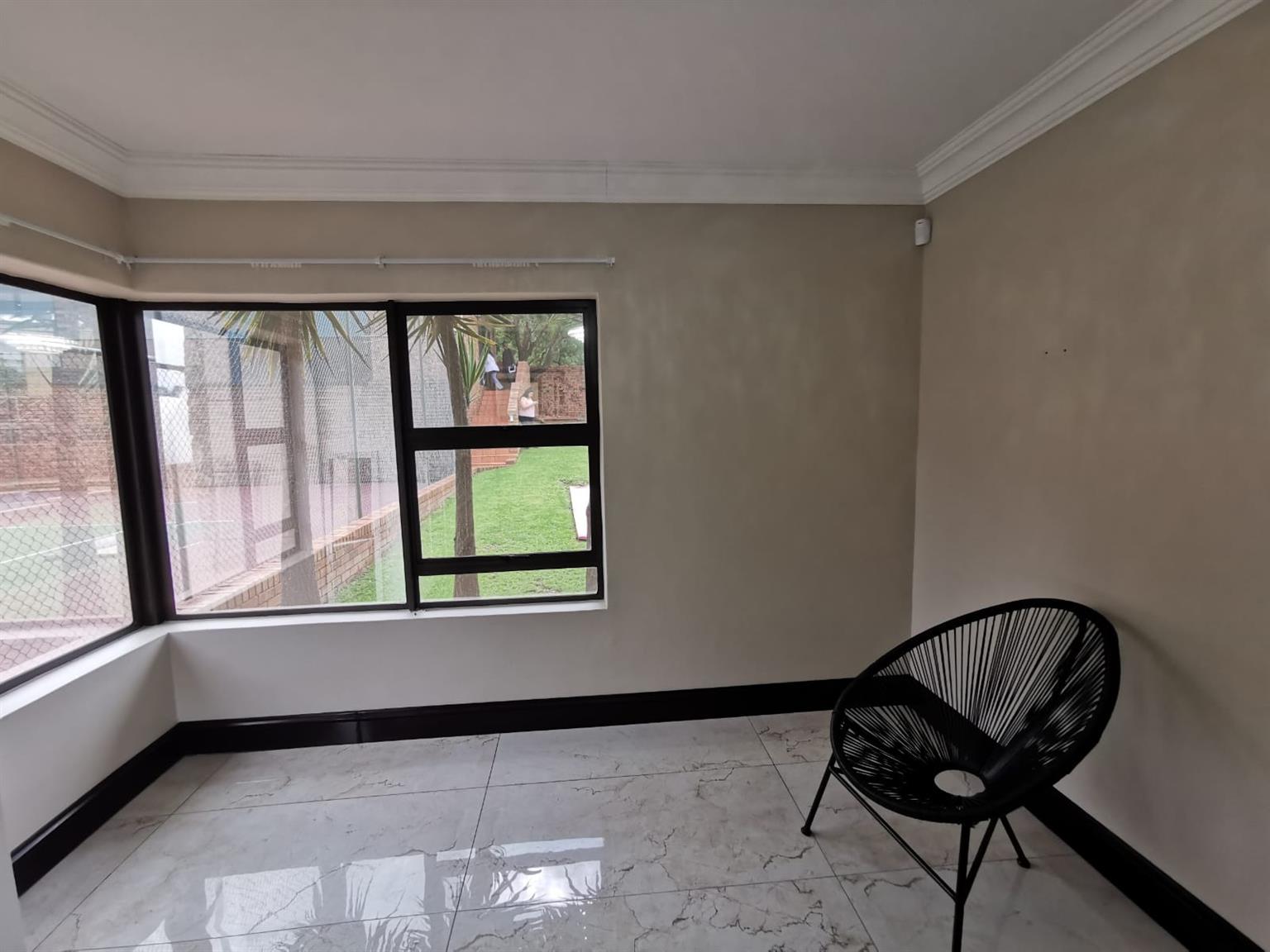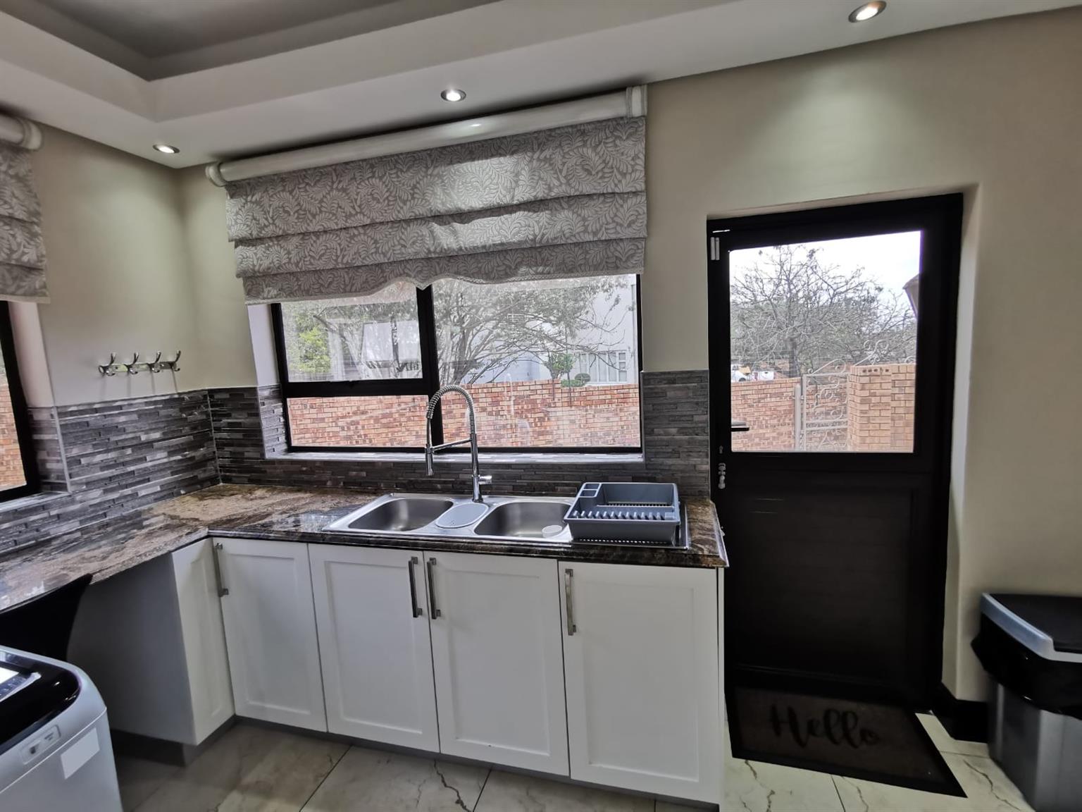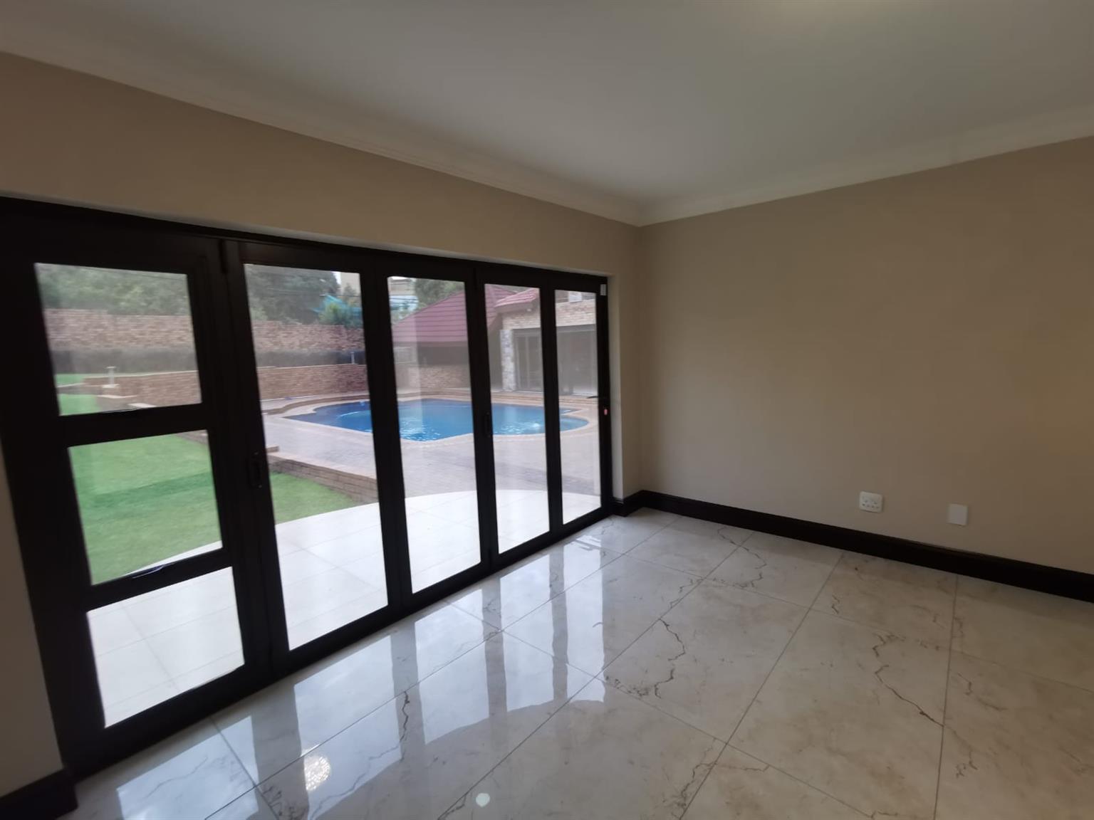 You’ll be captivated by the grand double-volume entrance, featuring a anthracite fireplace and chandelier. Designed for both relaxation and entertainment, the home offers two lounges, a formal dining room, a built-in bar, and a private study. The gourmet kitchen is , equipped with high-end appliances and a separate scullery.