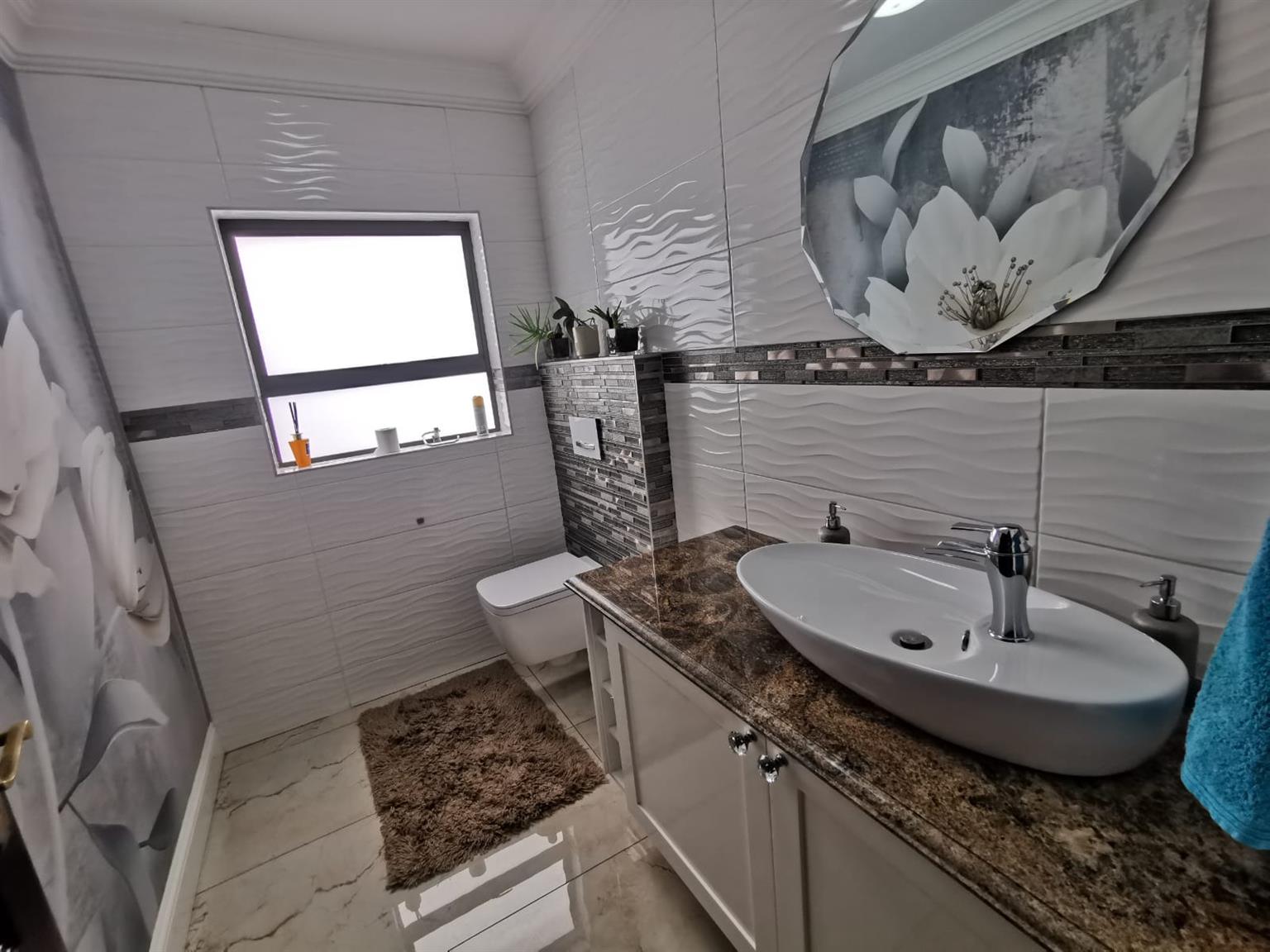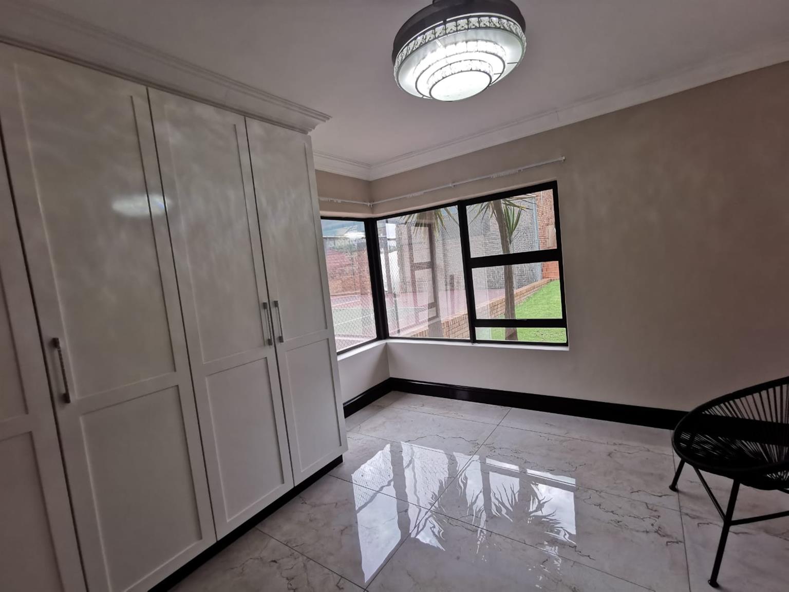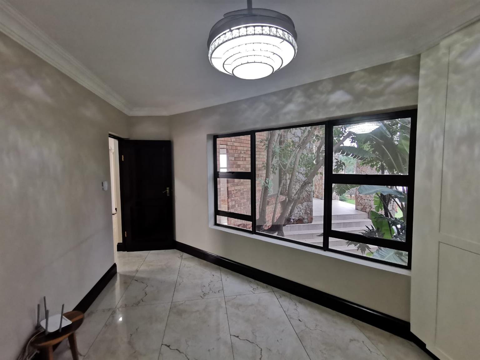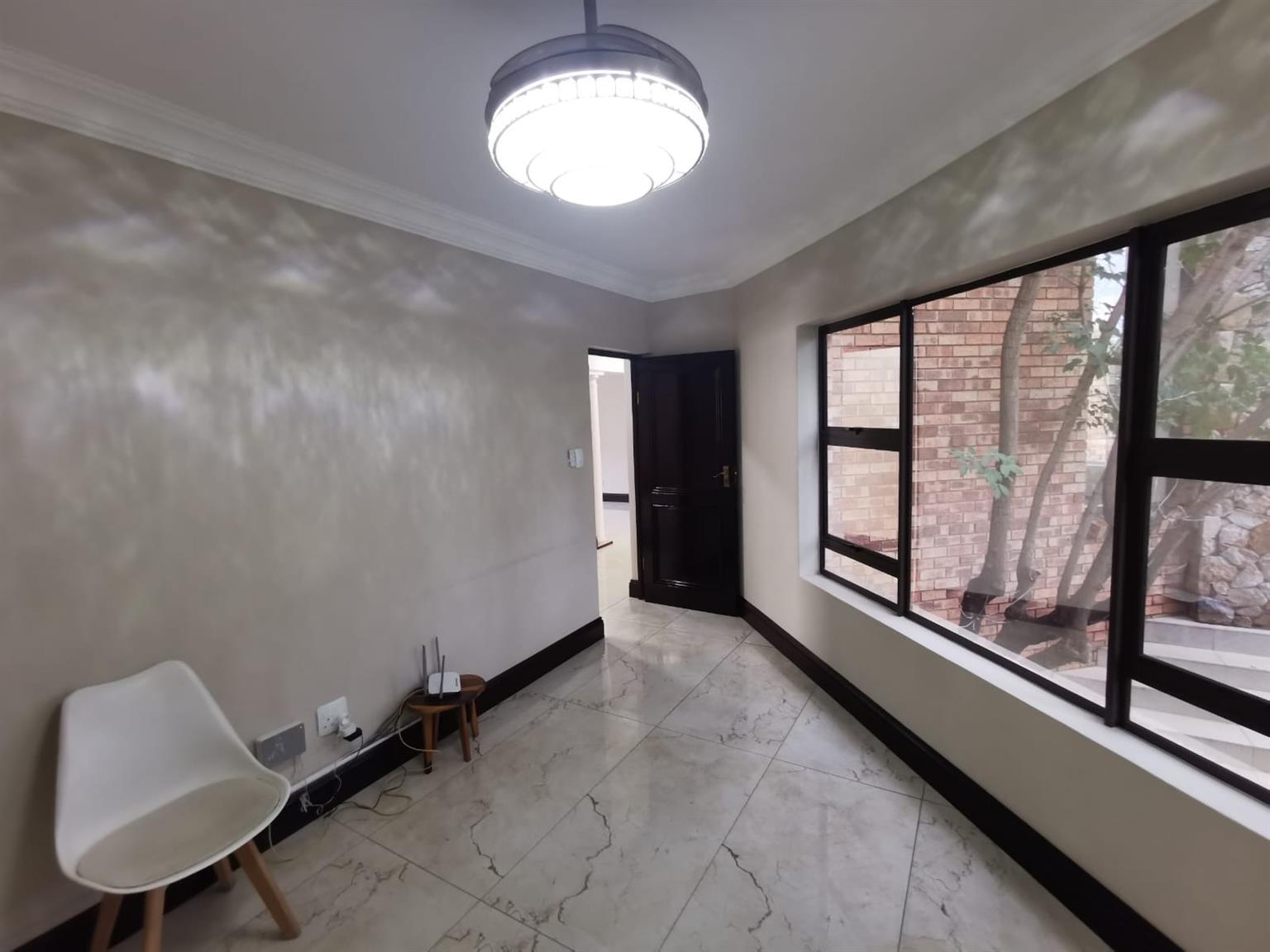 You’ll be captivated by the grand double-volume entrance, featuring a anthracite fireplace and chandelier. Designed for both relaxation and entertainment, the home offers two lounges, a formal dining room, a built-in bar, and a private study. The gourmet kitchen is , equipped with high-end appliances and a separate scullery.