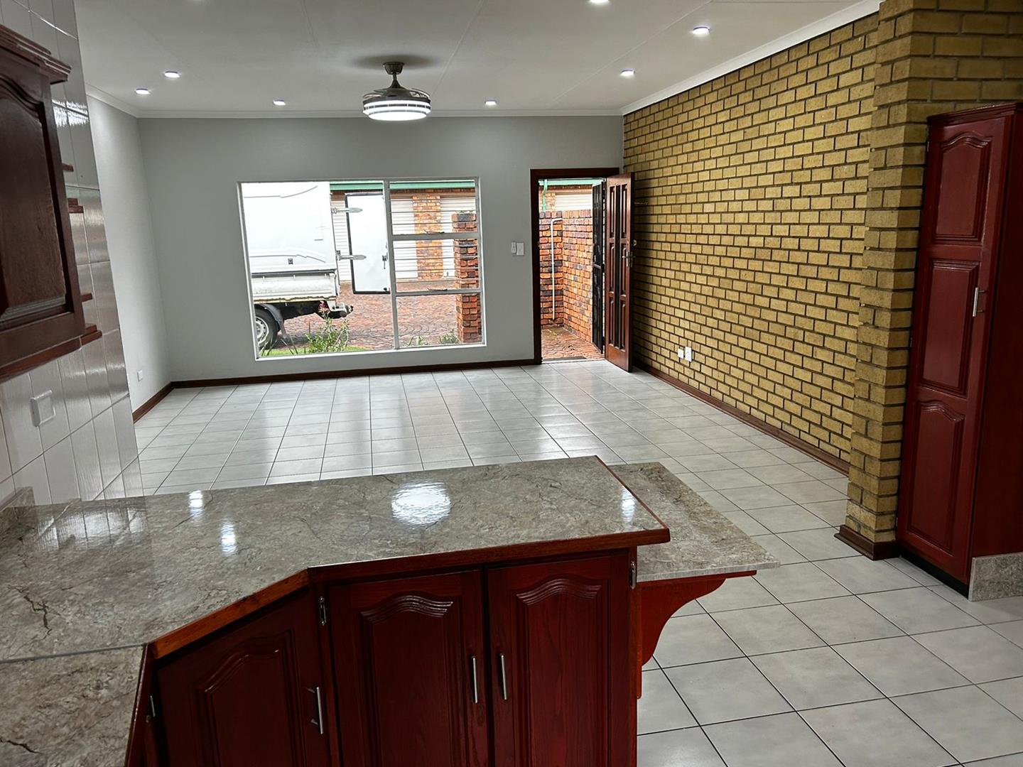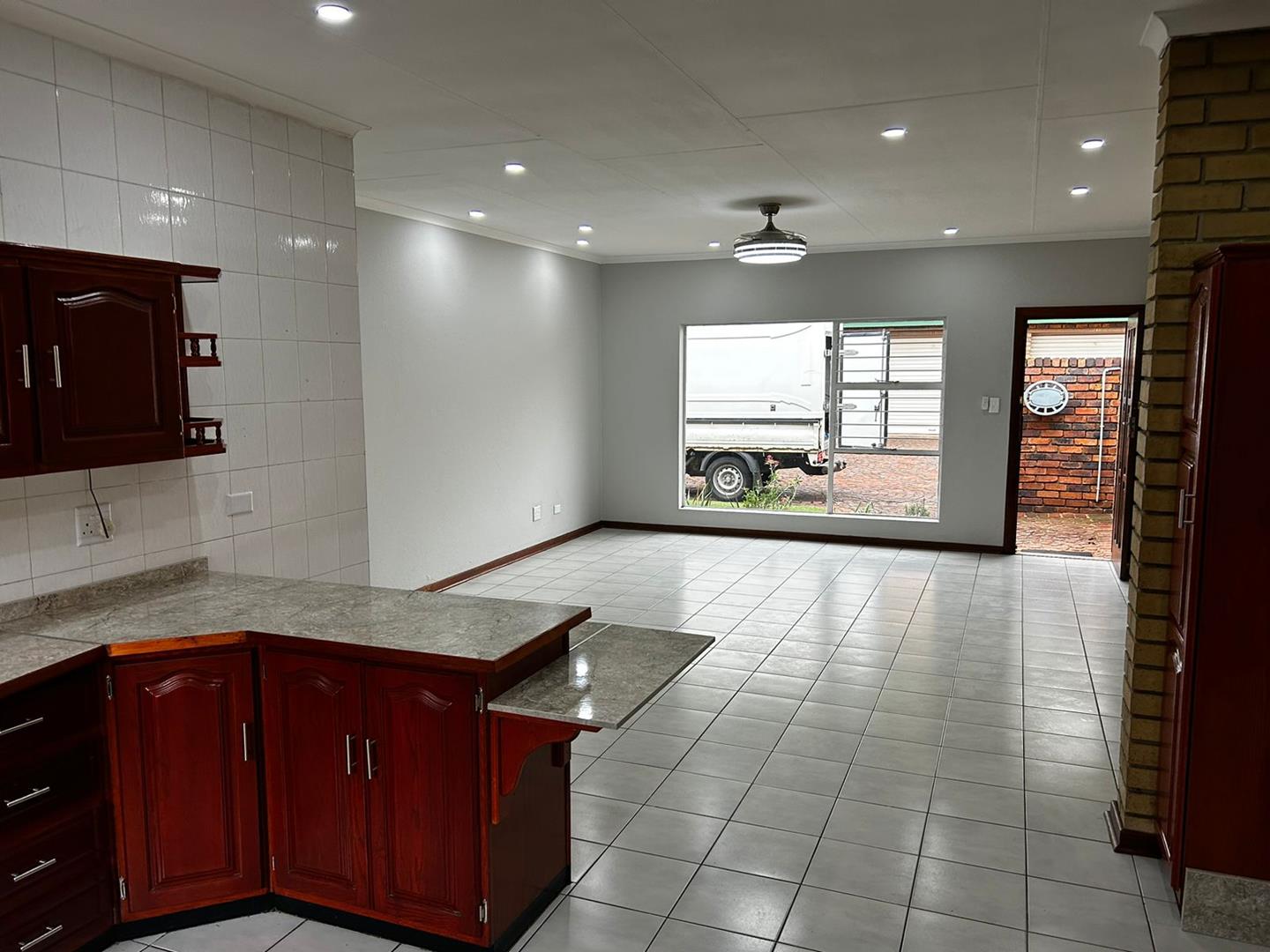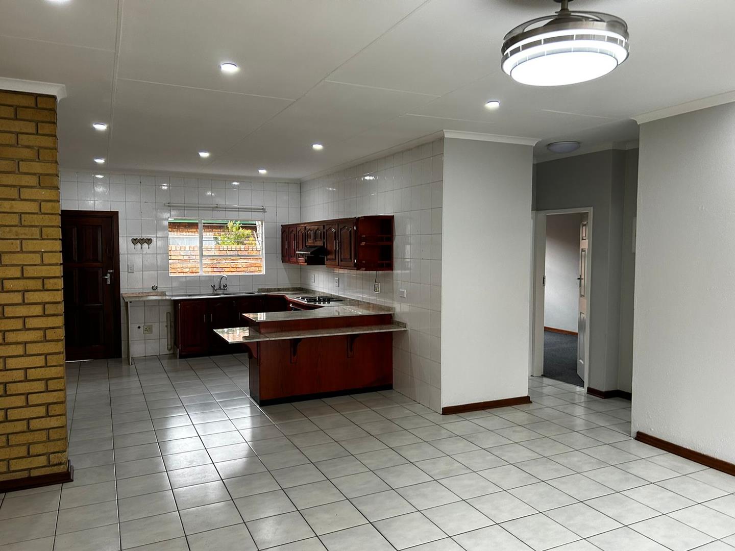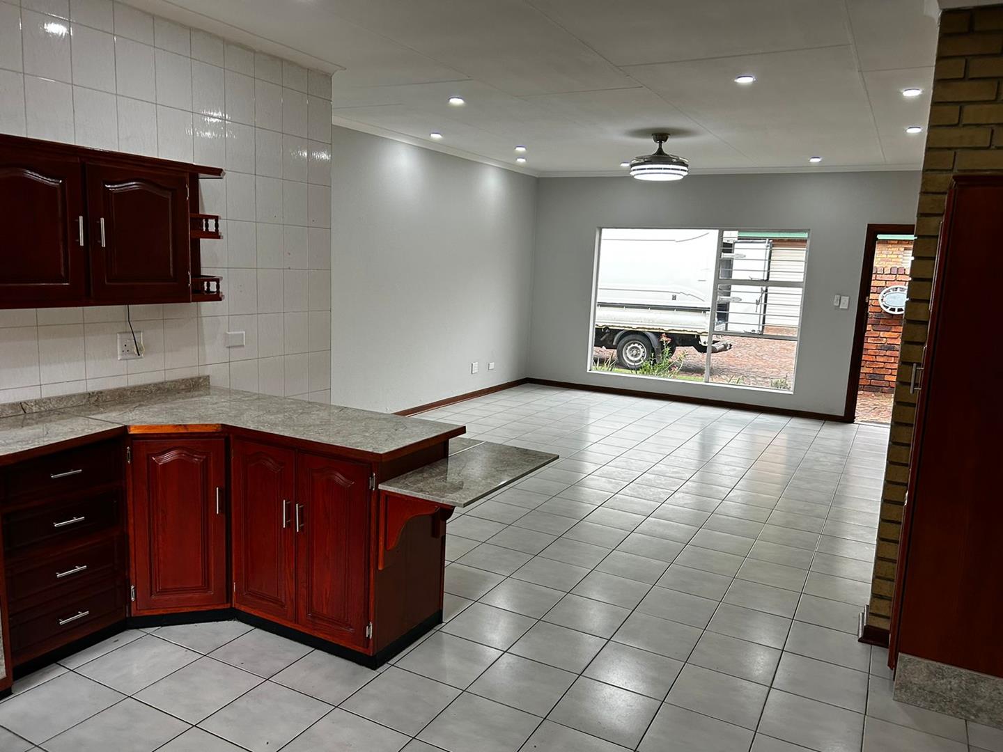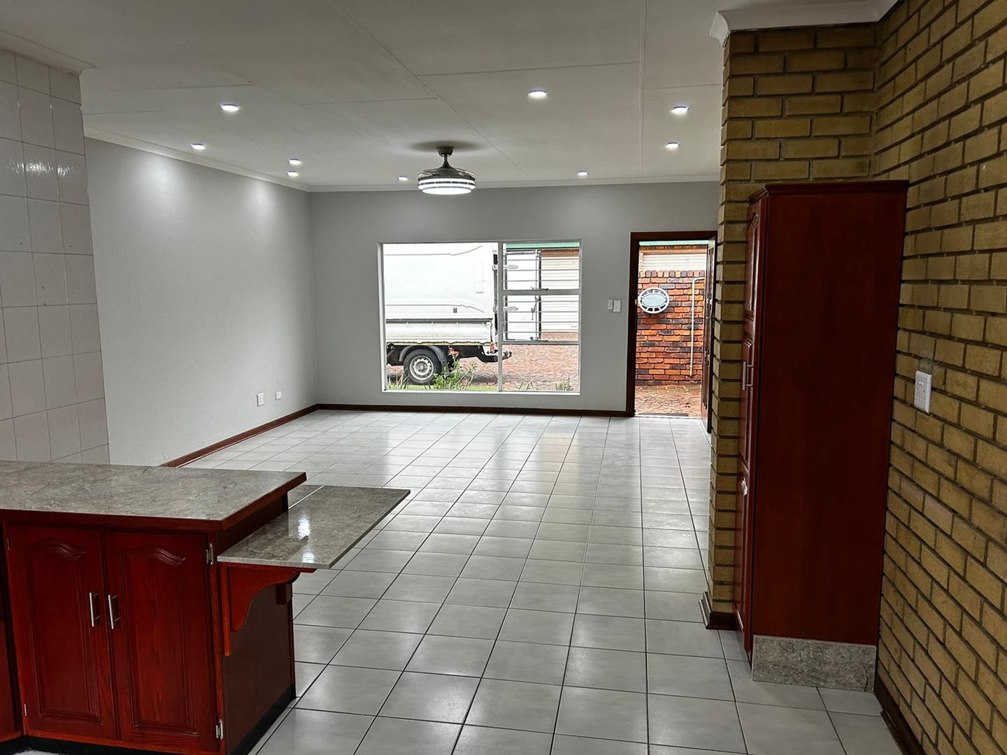 Big open plan lounge, dining room and spacious kitchen. 1 Full bathroom and 2 spacious bedrooms with built in cupboards. Separate laundry area for your washing machine just before you enter the bathroom. Courtyard with a washing line. 1 Single garage and lots of open parkings for a second vehicle or visitors parking.