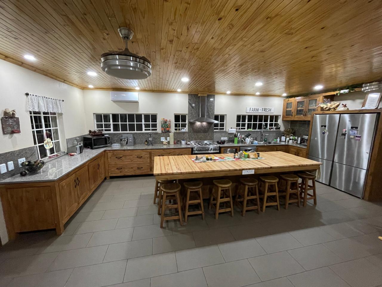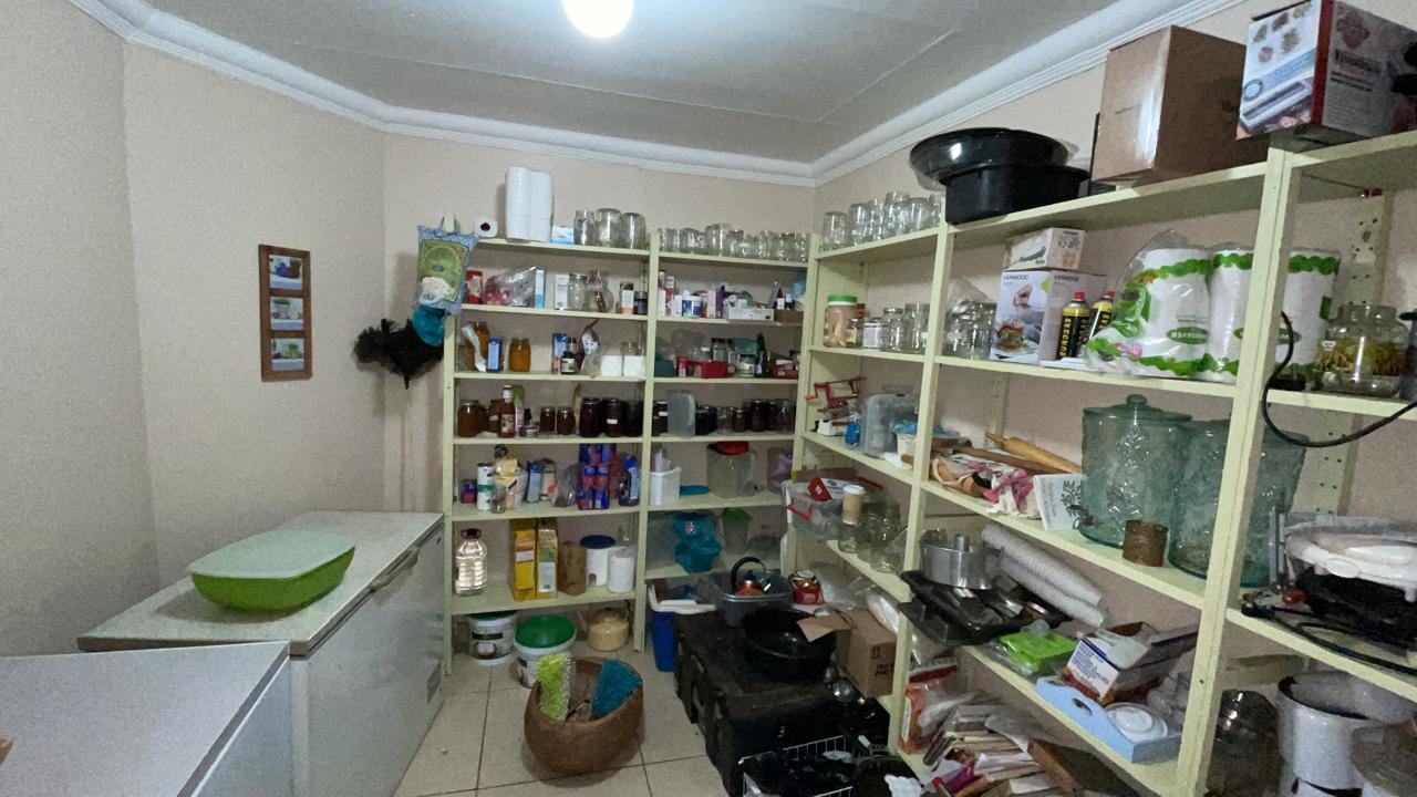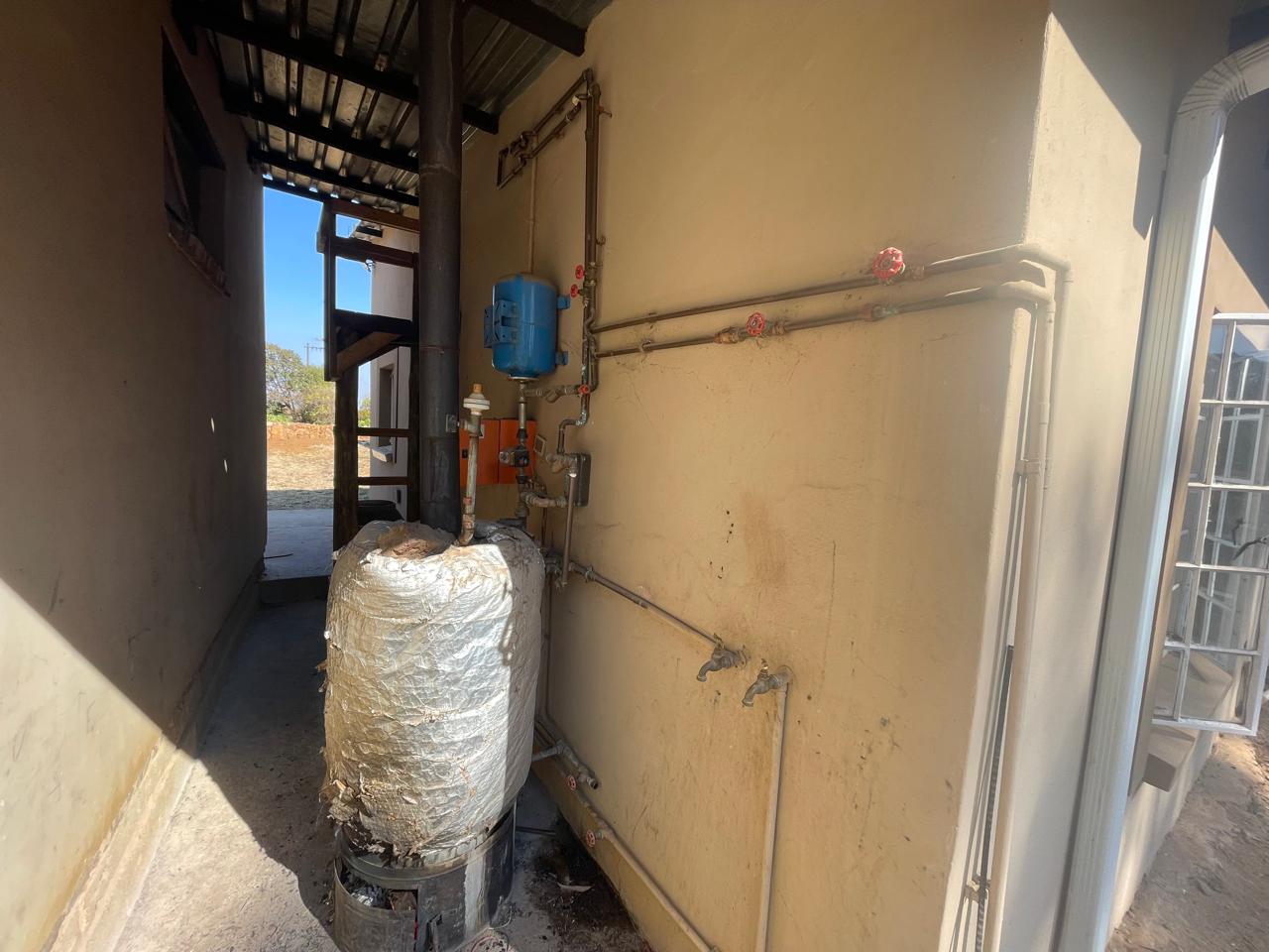MAIN HOUSE: Tiled throughout. 8 bedrooms; 6 bathrooms (4 en-suite). Modern house with beautiful kitchen, modern appliances (included), large lounge, dining room, and spacious walk-in pantry. Two solar geysers with wood fired donkey to supplement system, and electric backup. Well-insulated house with fire-place.
