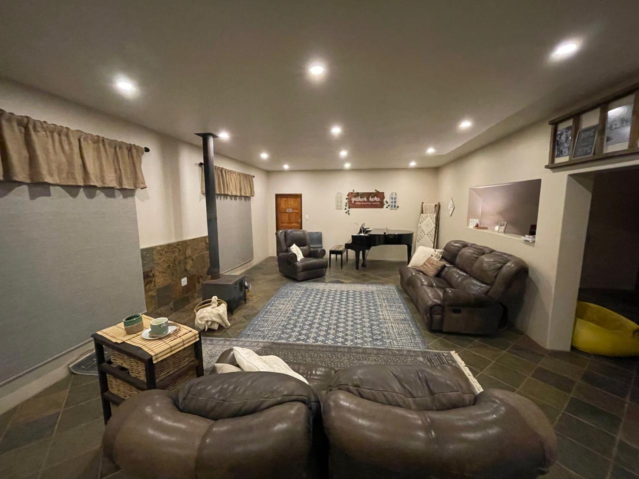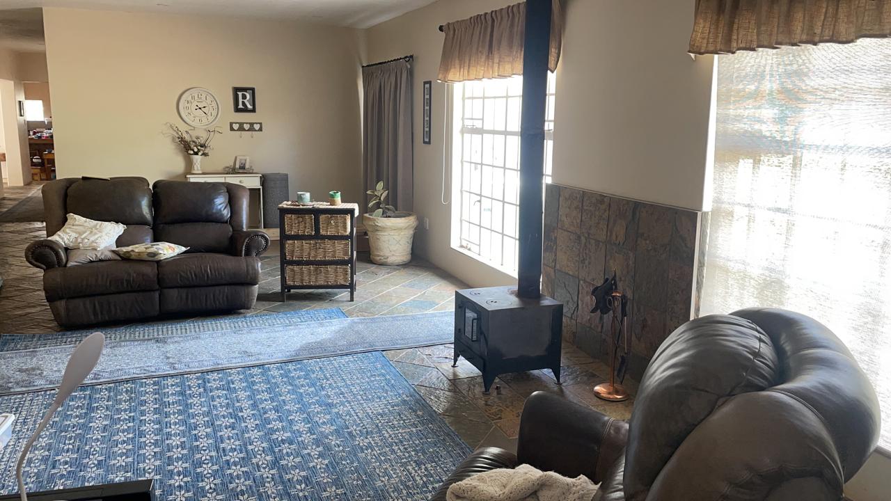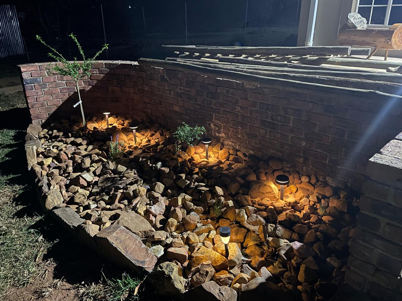 MAIN HOUSE: Tiled throughout. 8 bedrooms; 6 bathrooms (4 en-suite). Modern house with beautiful kitchen, modern appliances (included), large lounge, dining room, and spacious walk-in pantry. Two solar geysers with wood fired donkey to supplement system, and electric backup. Well-insulated house with fire-place.