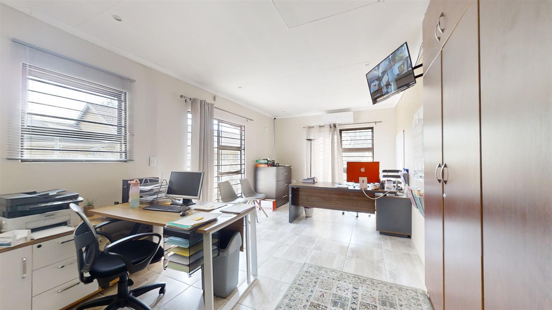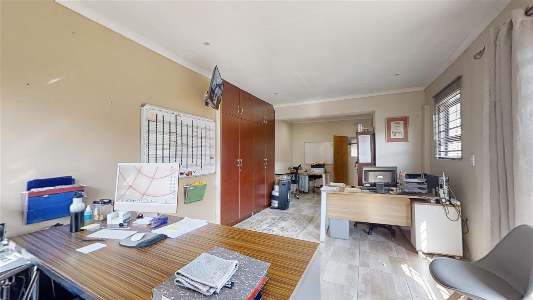 Very large comfortable home , newly renovated. Extended house , plus two separate flats and garage for six cars. The house has large open plan lounge with flooring tiles , two sliding doors and a modern free standing fireplace and has a pivot door. The open plan dining room adds to making the home feeling larger and comfortable. The open plan kitchen leads off and also adds to the appeal, it is equipped with a gas stove which is fitted with a double sink and modern wooden flooring. The large main bedroom has a ensuite modern bathroom with shower. The next bedroom also has a ensuit modern bathroom also with a shower. The third bedroom is also large with ample cupboards. The is also a single toilet in the passageway. A double garage leads off the lounge which has floor tiles and motorised wooden doors. Fitted in the house is security cameras and a generator. The first of the two flats has a kitchen, dining room , lounge, two bedrooms and a bathroom. The second flat also has a kitchen, dining room, lounge and one bedroom and bathroom. There is a separate four car garage. The property has tiled roof , Security bars, entertainment area and a pond. The driveway is paved and the first driveway gate of two is motorized. Seller has already emigrated so is a serious seller. This property is in an enclosed area and a levy of R350 per month is paid for it. Price is negotiable.