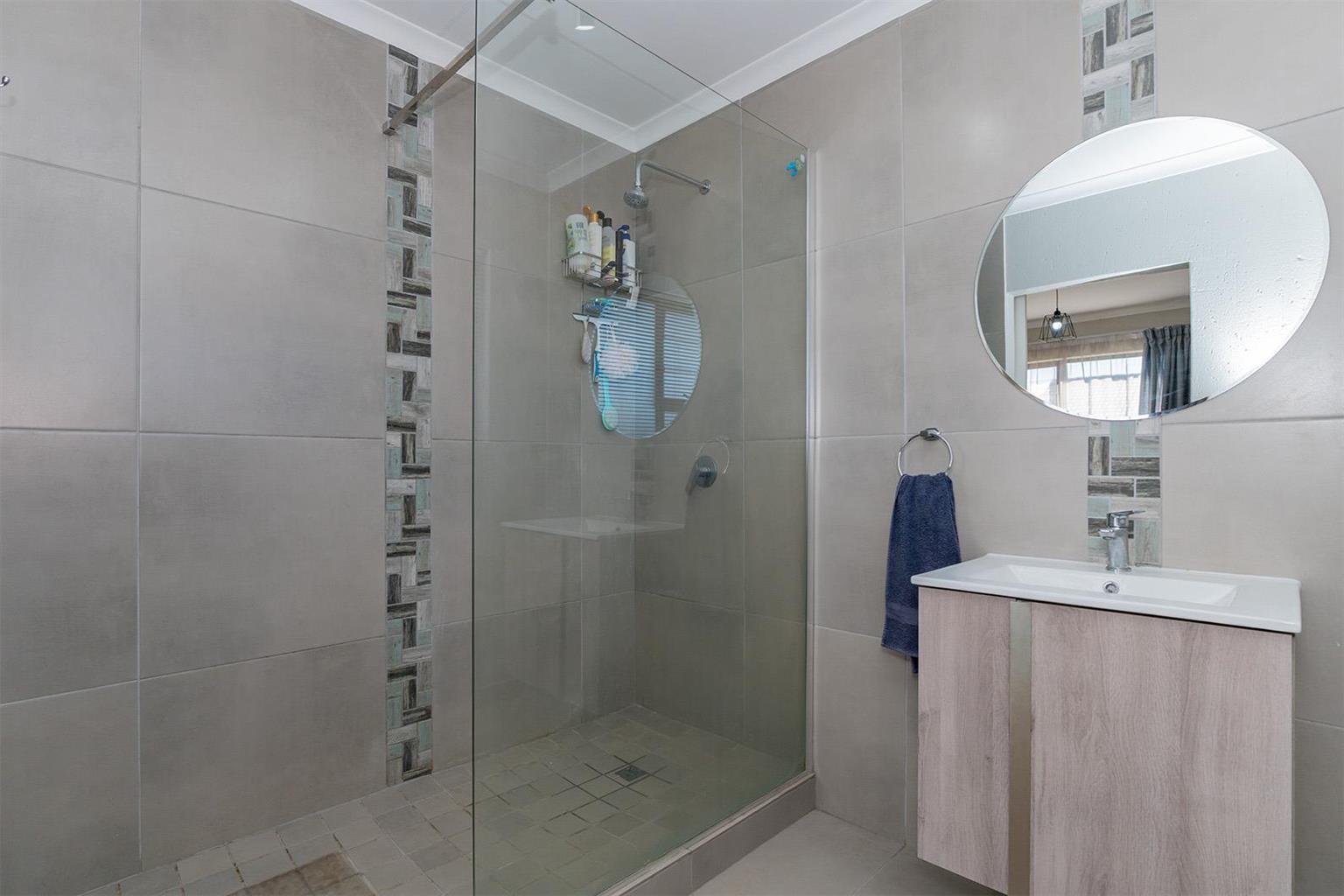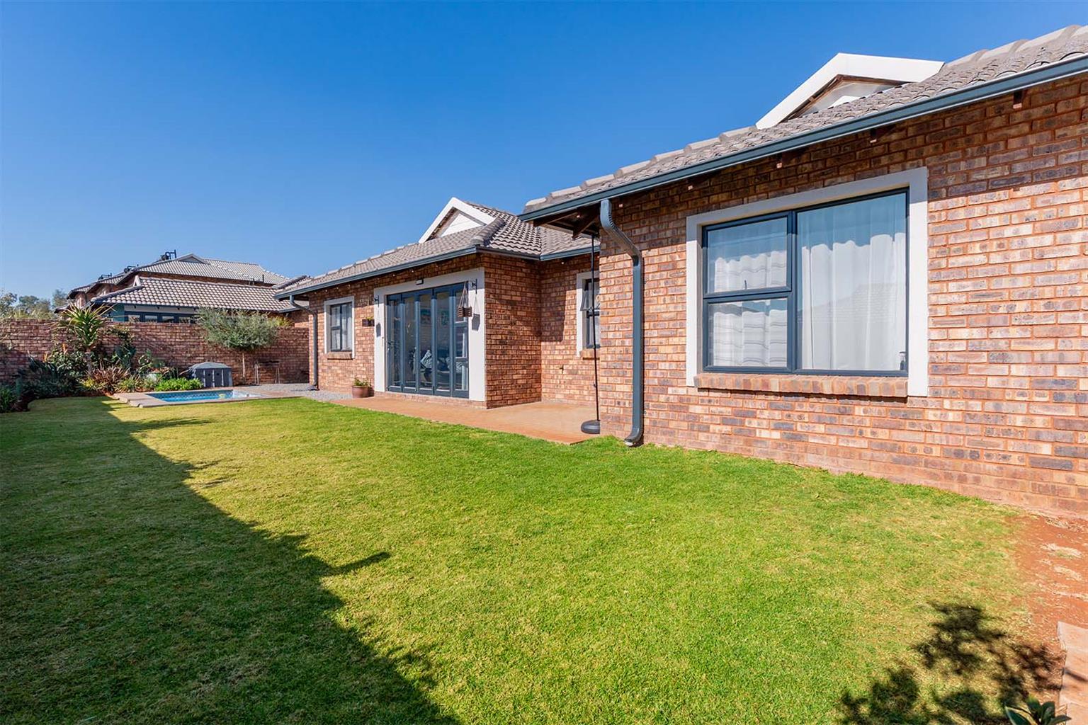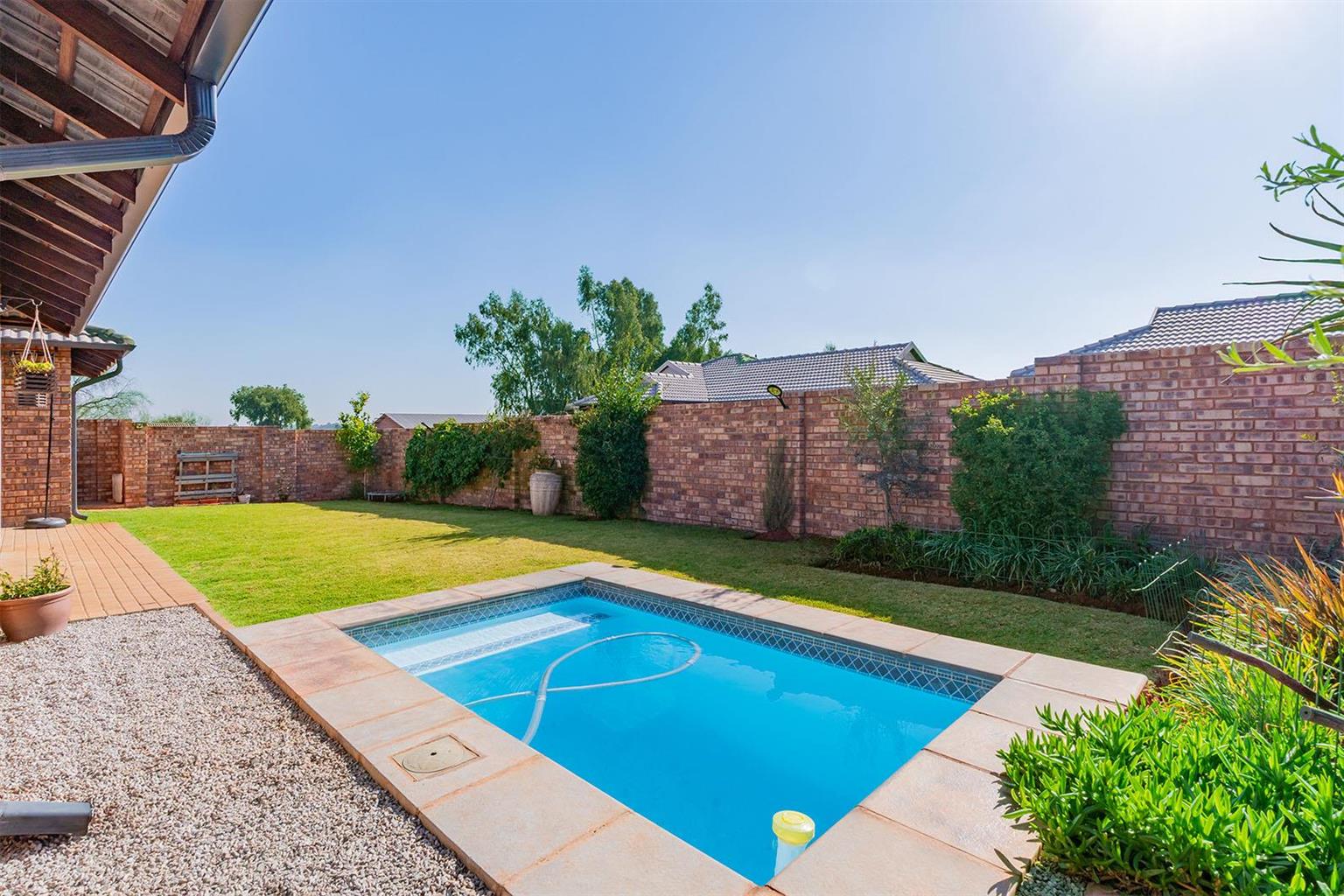 Spacious combined open plan tiled dining area and lounge with stacker doors leading to manageable private garden and pool, gourmet open plan kitchen with Quartz tops, breakfast counter, gas hob, under counter oven, extractor fan, ample cupboards and space for appliances, courtyard with washing line off kitchen, 4 generous sized bedrooms with laminated flooring and built-in cupboards, 2 modern bathrooms with one being en-suite to main bedroom, double auto garages and open parking, pet friendly complex.