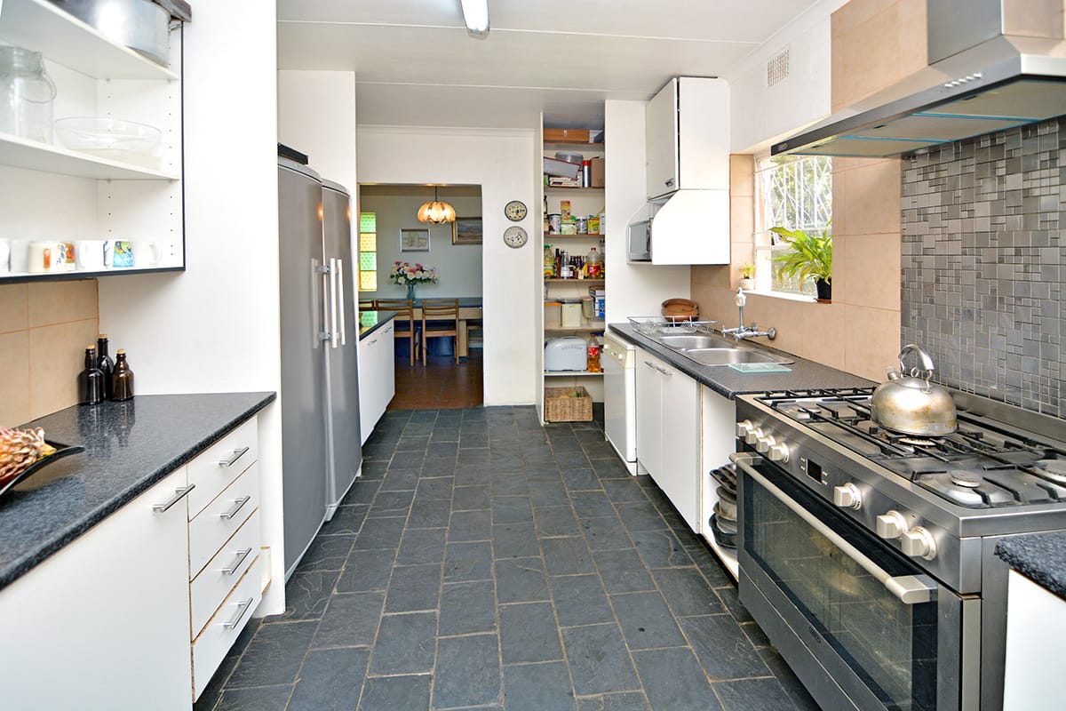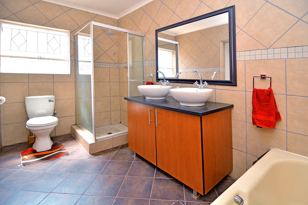 Tiled spacious lounge, tiled dining room, 4 spacious bedrooms, 2 modern tiled to the ceiling bathrooms, Large kitchen with gas four plate and electric stove with extractor fan, separate laundry.