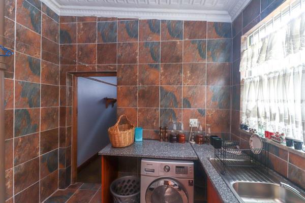 Step into the expansive open-plan lounge and dining room, also boasting high ceilings, providing a perfect setting for entertaining guests or enjoying family time. The kitchen is a chef's delight, featuring a cozy breakfast nook and direct access to the dining area. Flanking the kitchen are a convenient walk-in pantry and a separate scullery, adding functionality to this delightful space.