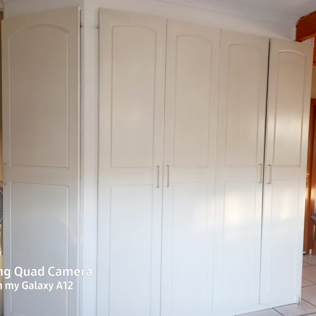 1 X Bedroom with new cupboards, fits queen bed with pedestals.