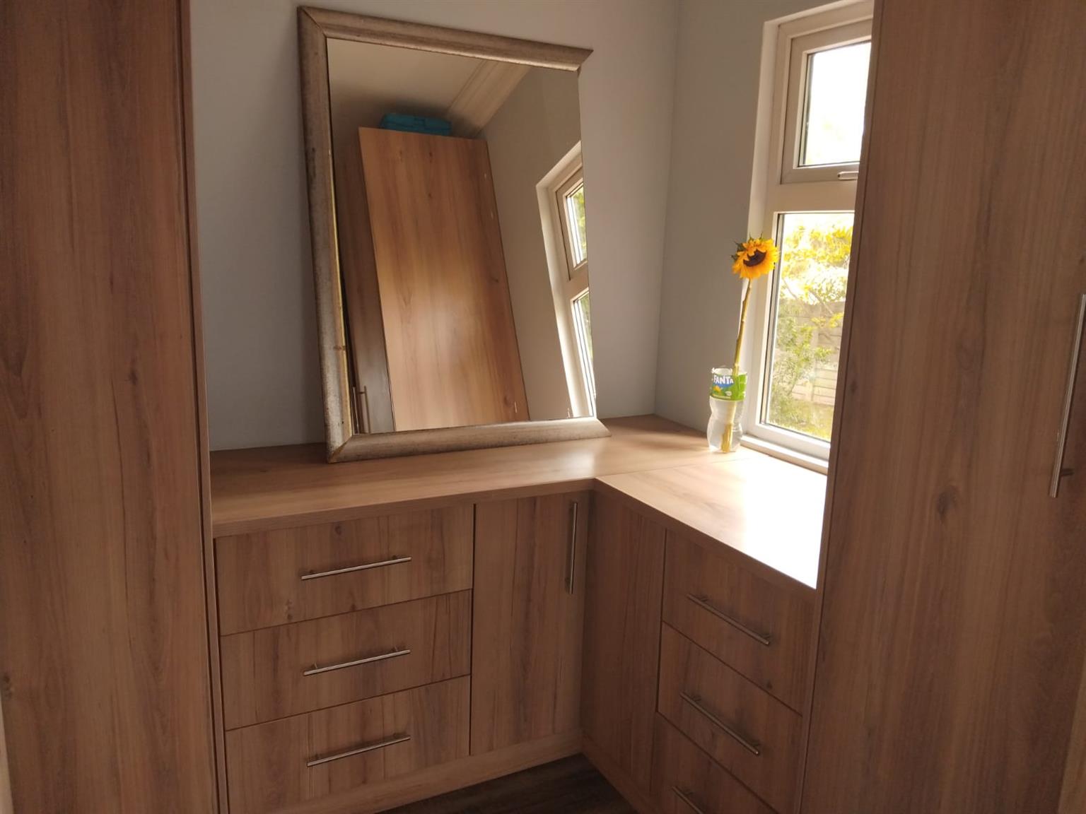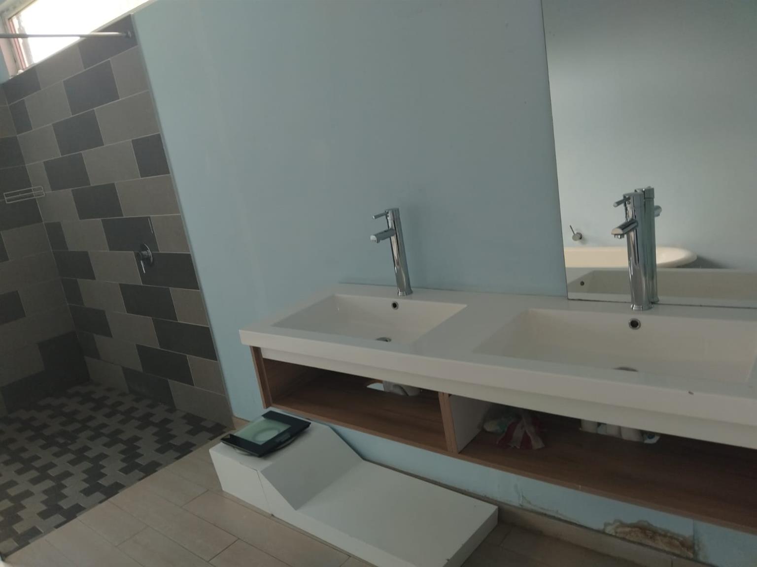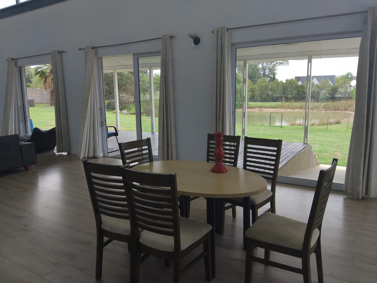 It has a spacious open-plan living area that combines the lounge and dining room, as well as a stunning kitchen with a scullery. The large sliding doors enhance the aesthetic appeal of the house.