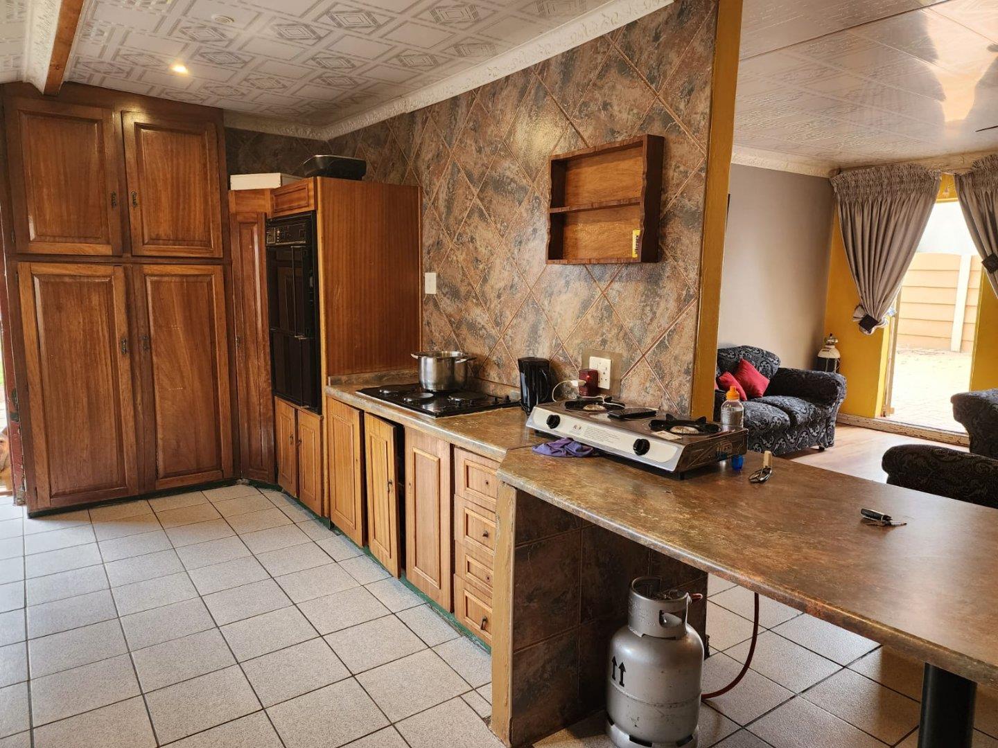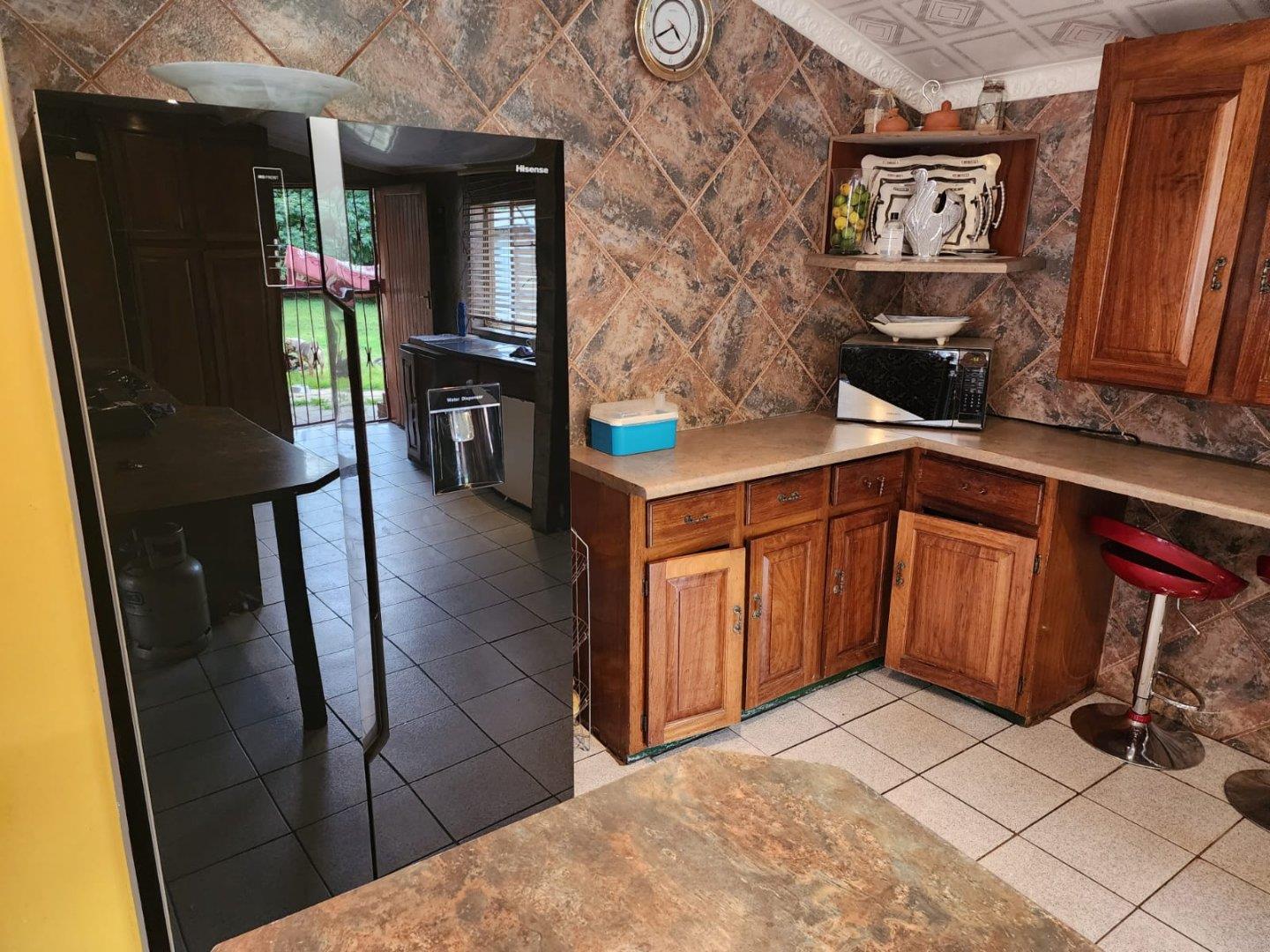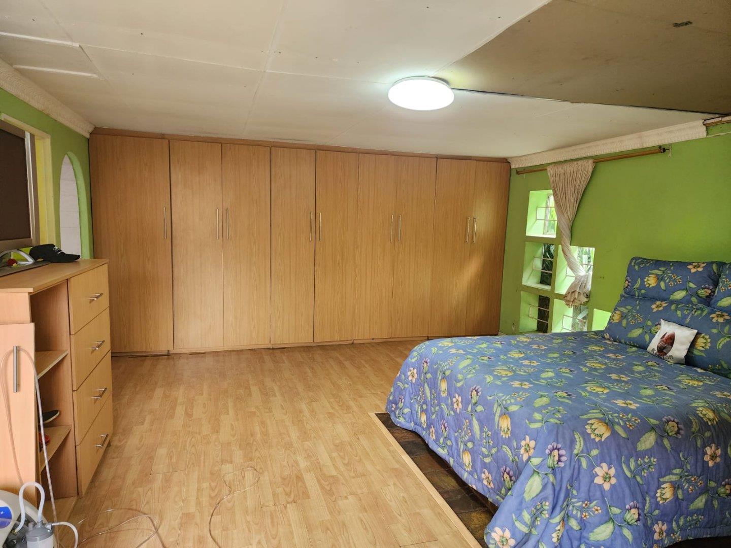 There is an outside laundry, toilet, and garage with enough space for 4 vehicles.