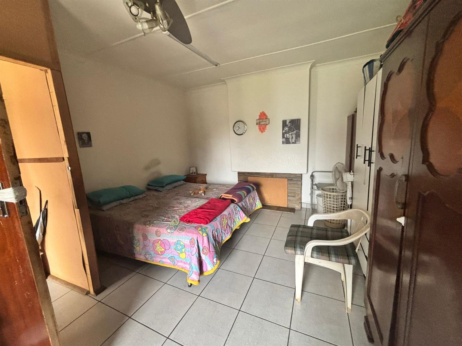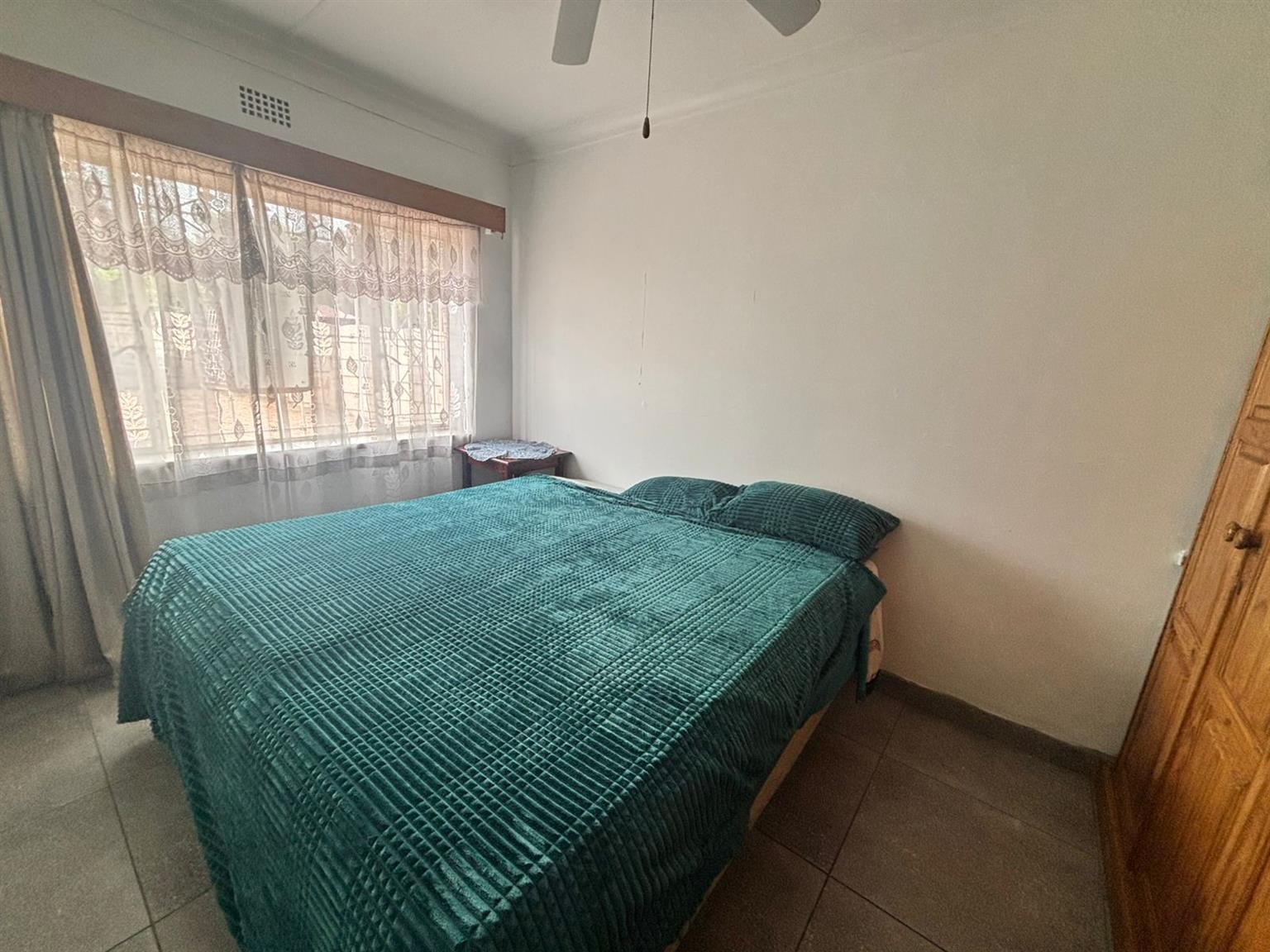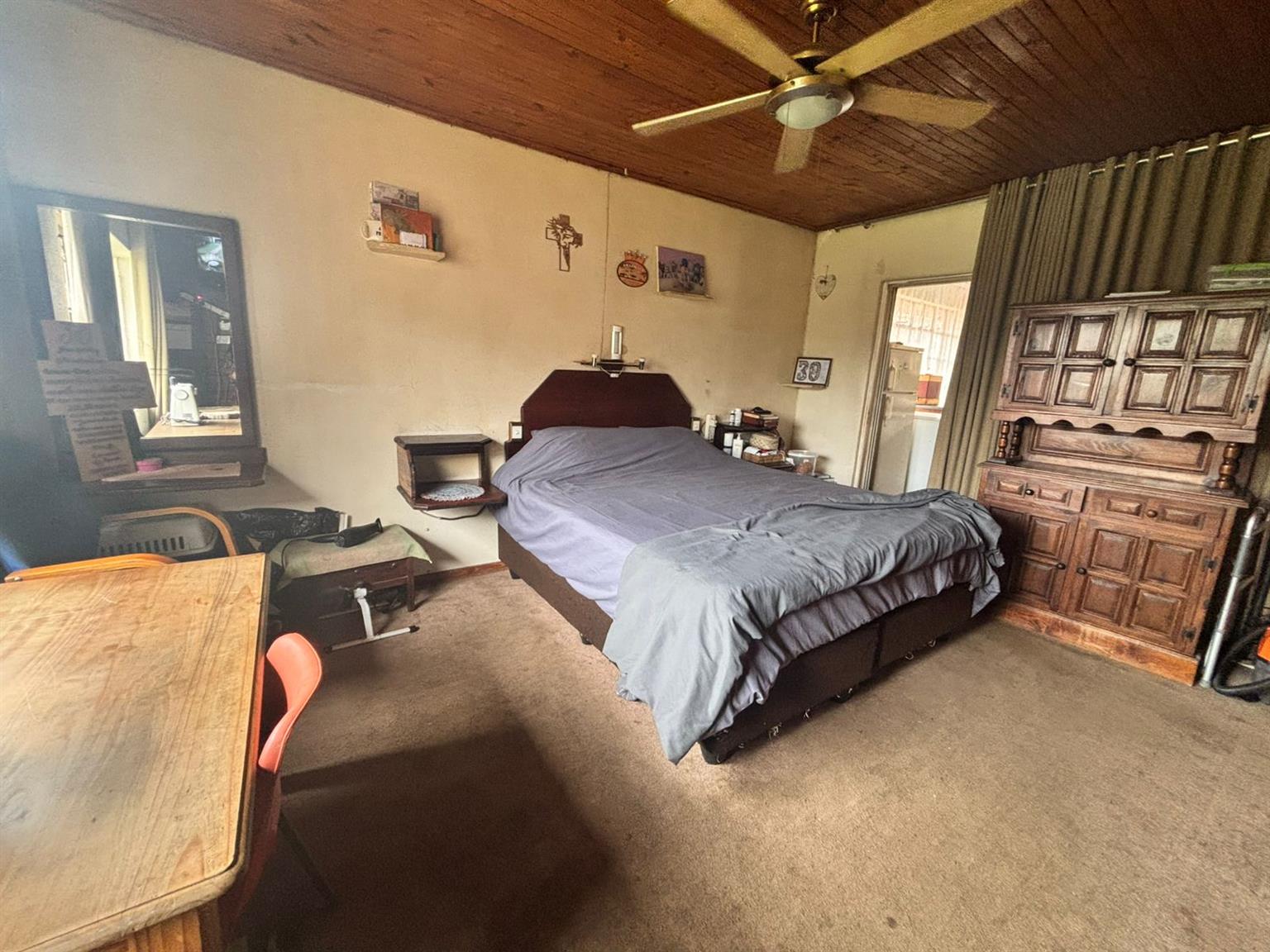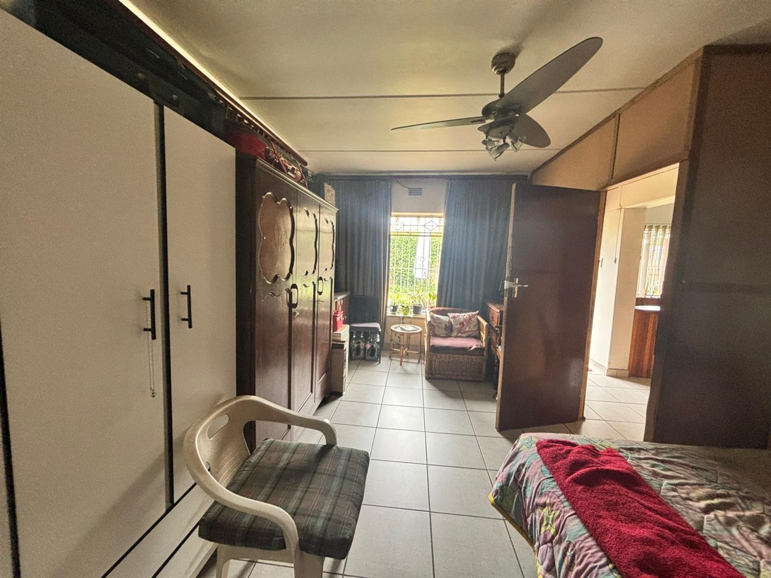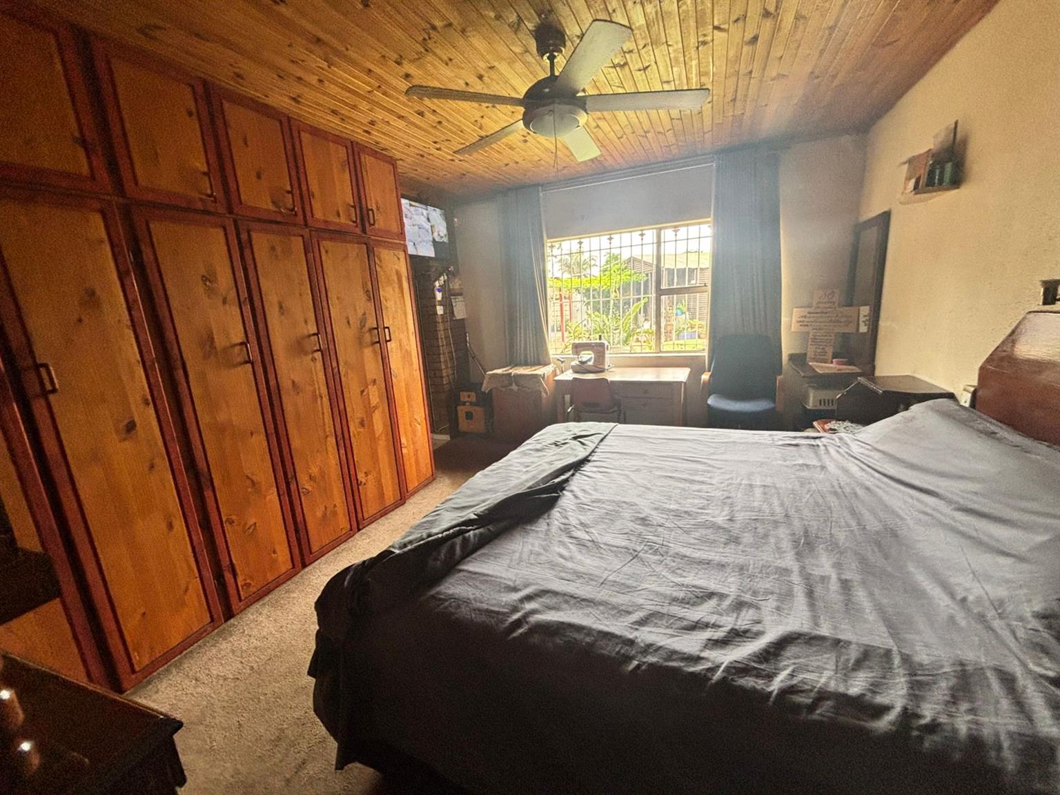 Down the passage, four generously sized bedrooms provide flexibility and comfort. One of the bedrooms includes a dedicated storage room with a built-in safe, making it ideal to convert into a walk-in closet. The home features two neat bathrooms, one with a separate toilet, and a second fully functional kitchen, perfect for dual living, extended family or rental use. At the front of the property, a Wendy hut equipped with its own DB board, electricity and air conditioning creates the perfect work-from-home office or studio.