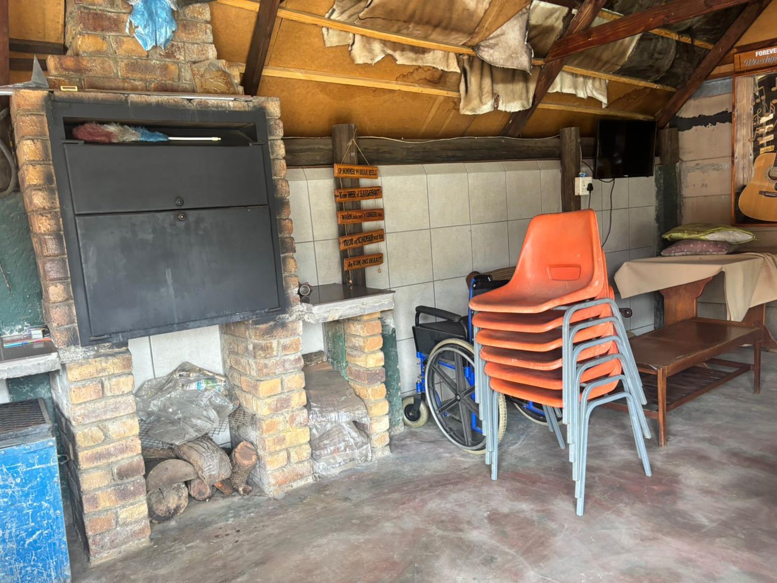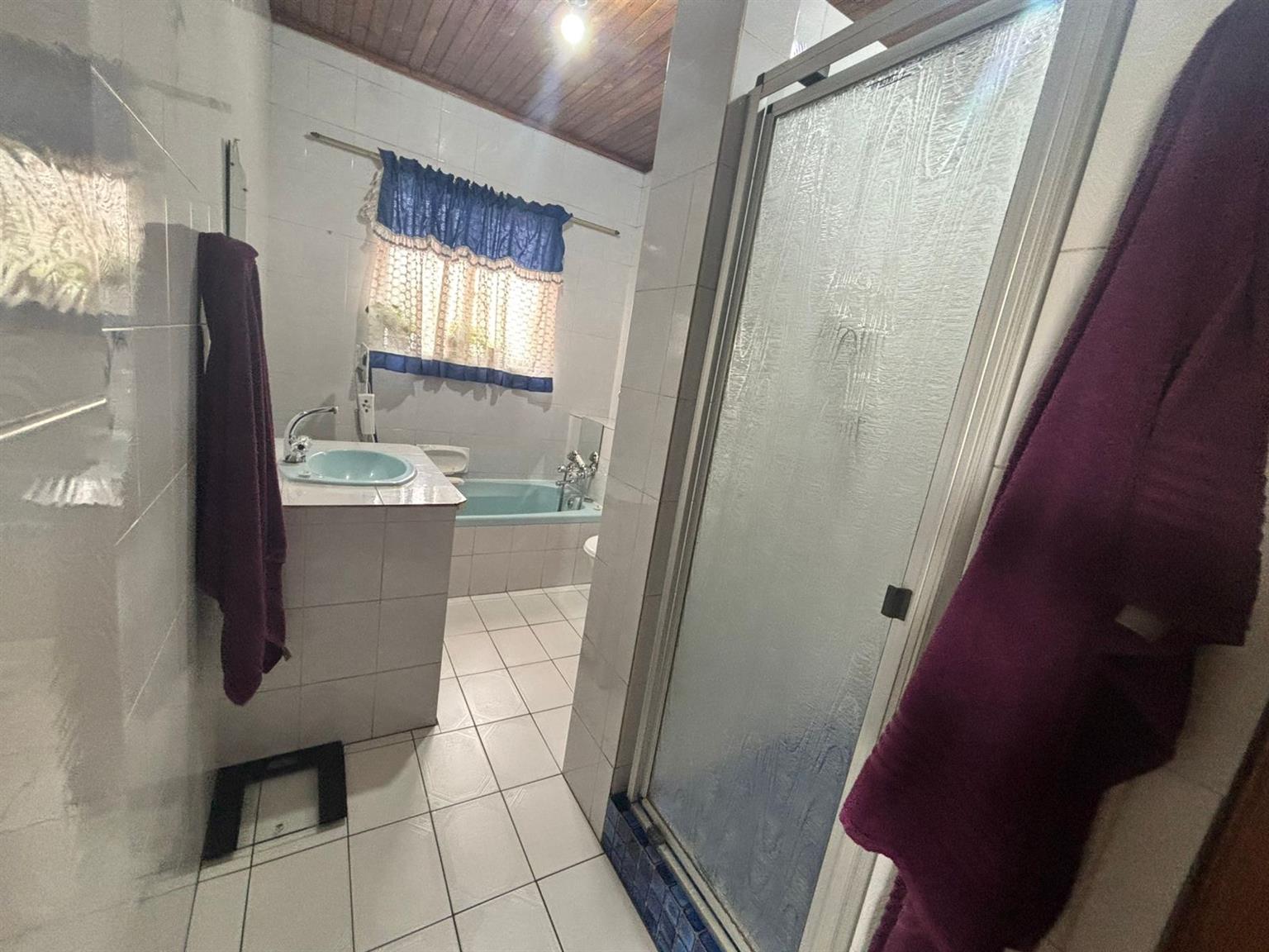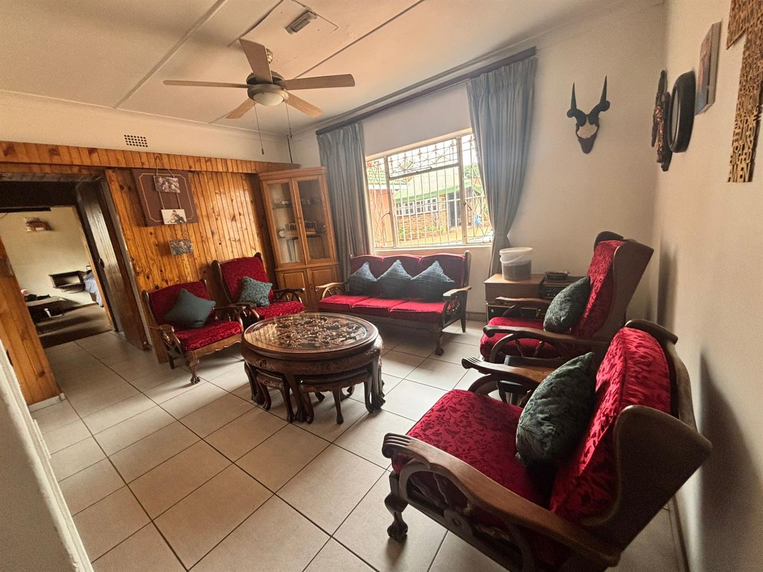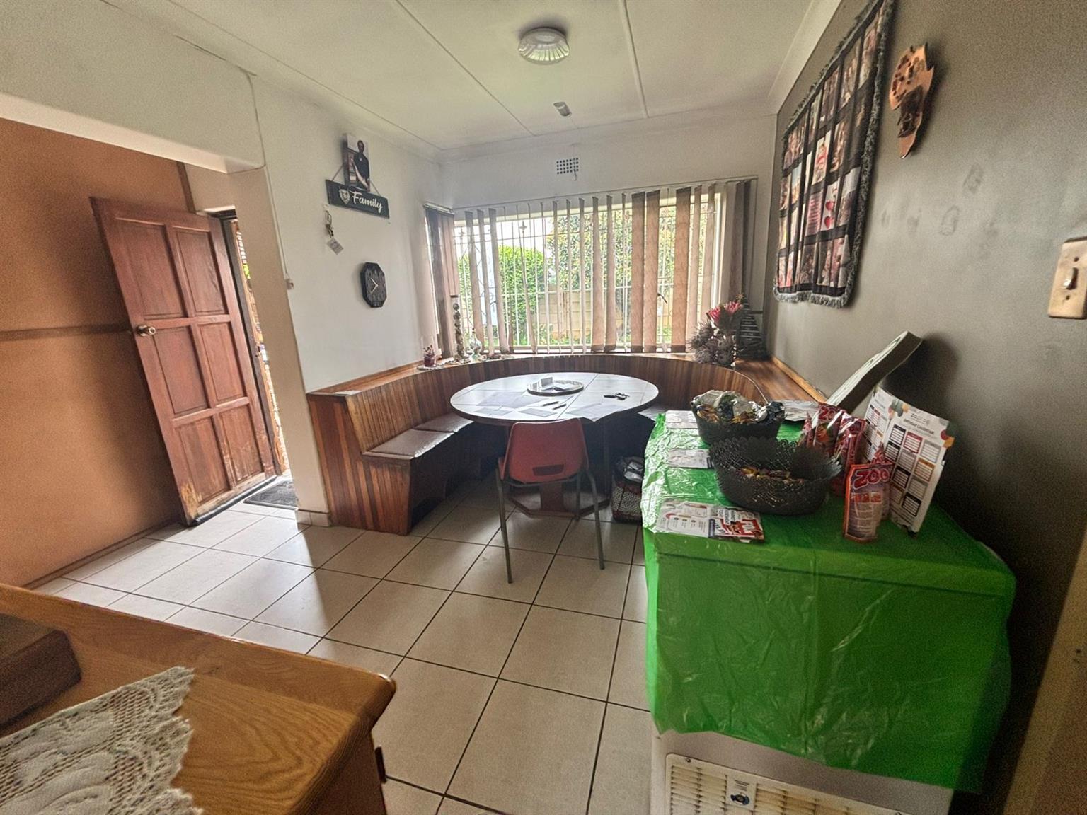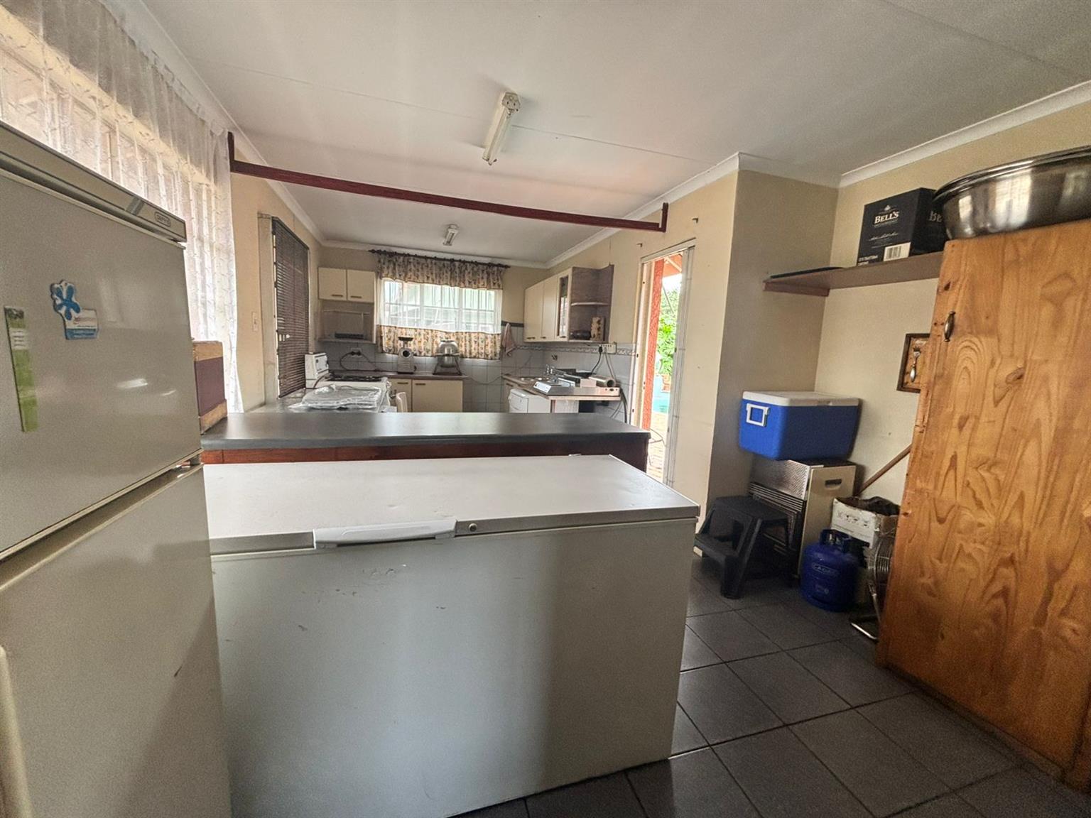 Down the passage, four generously sized bedrooms provide flexibility and comfort. One of the bedrooms includes a dedicated storage room with a built-in safe, making it ideal to convert into a walk-in closet. The home features two neat bathrooms, one with a separate toilet, and a second fully functional kitchen, perfect for dual living, extended family or rental use. At the front of the property, a Wendy hut equipped with its own DB board, electricity and air conditioning creates the perfect work-from-home office or studio.