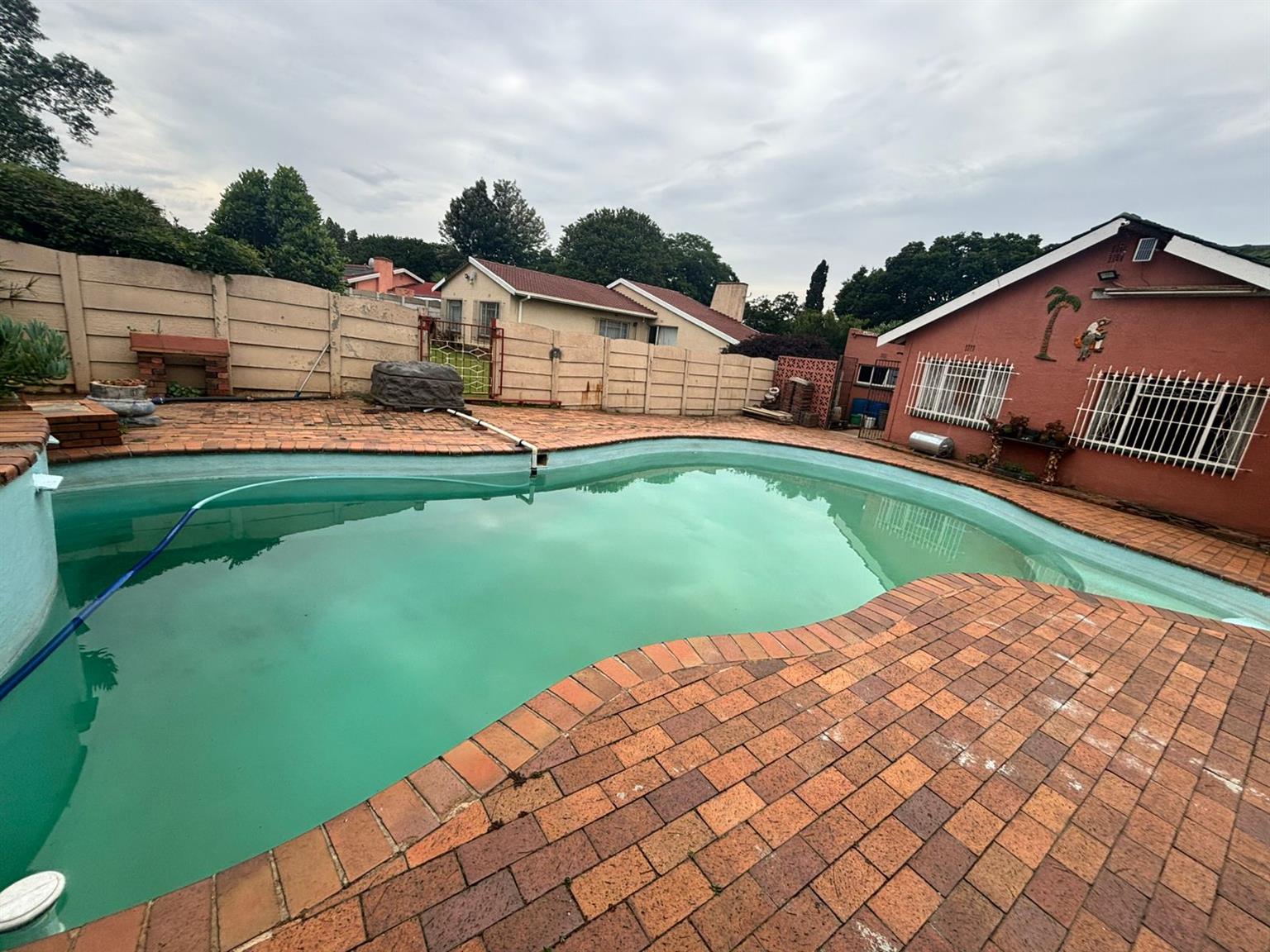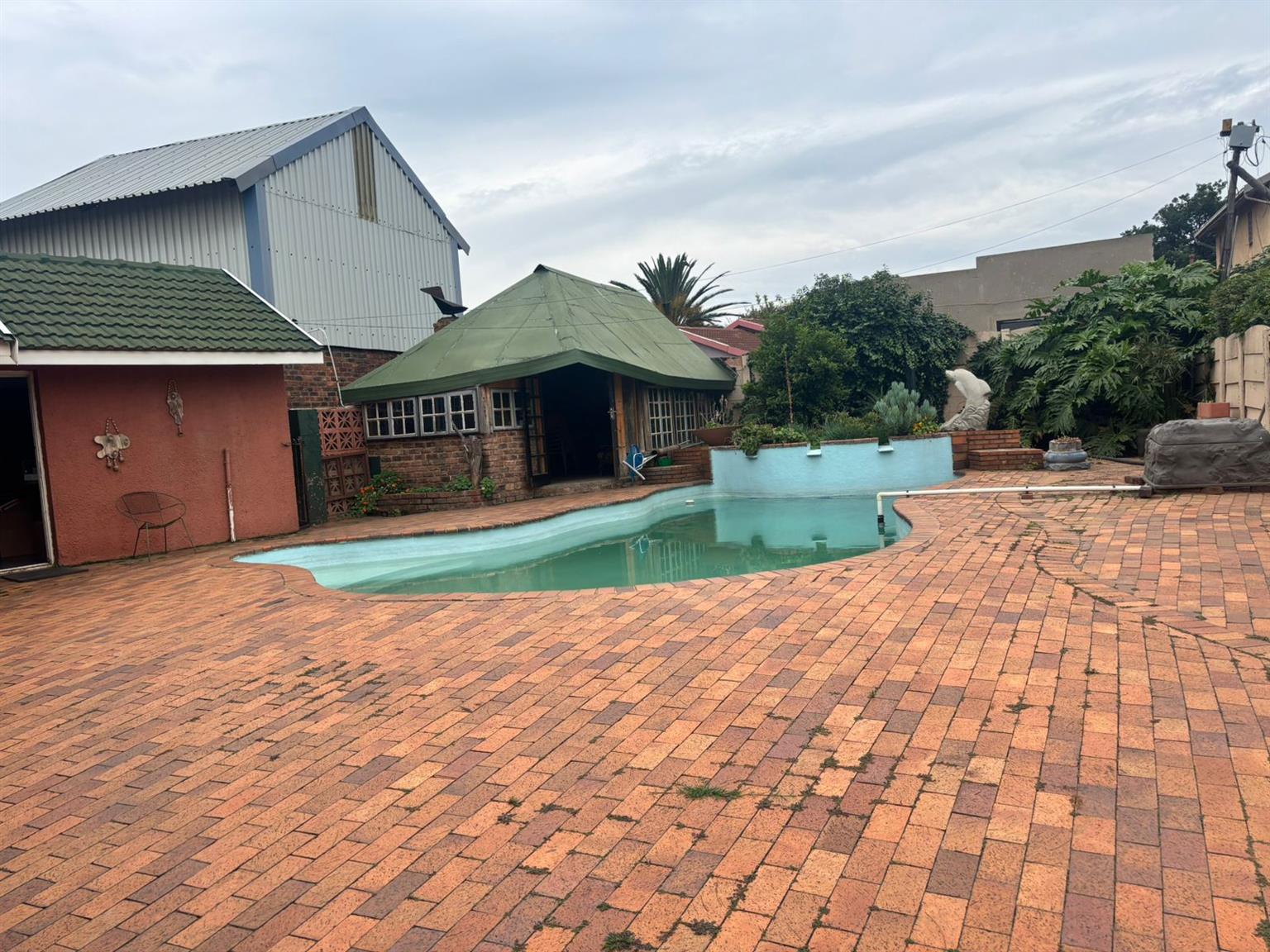 Outside, the property offers ample secure parking with two motorised gates — one on Eric Road and the other on Main Street — leading to an IBR carport, shade net carports, and a single garage. A dolphin-shaped swimming pool and enclosed entertainment area with a built-in braai make it easy to enjoy weekends at home with family and friends.