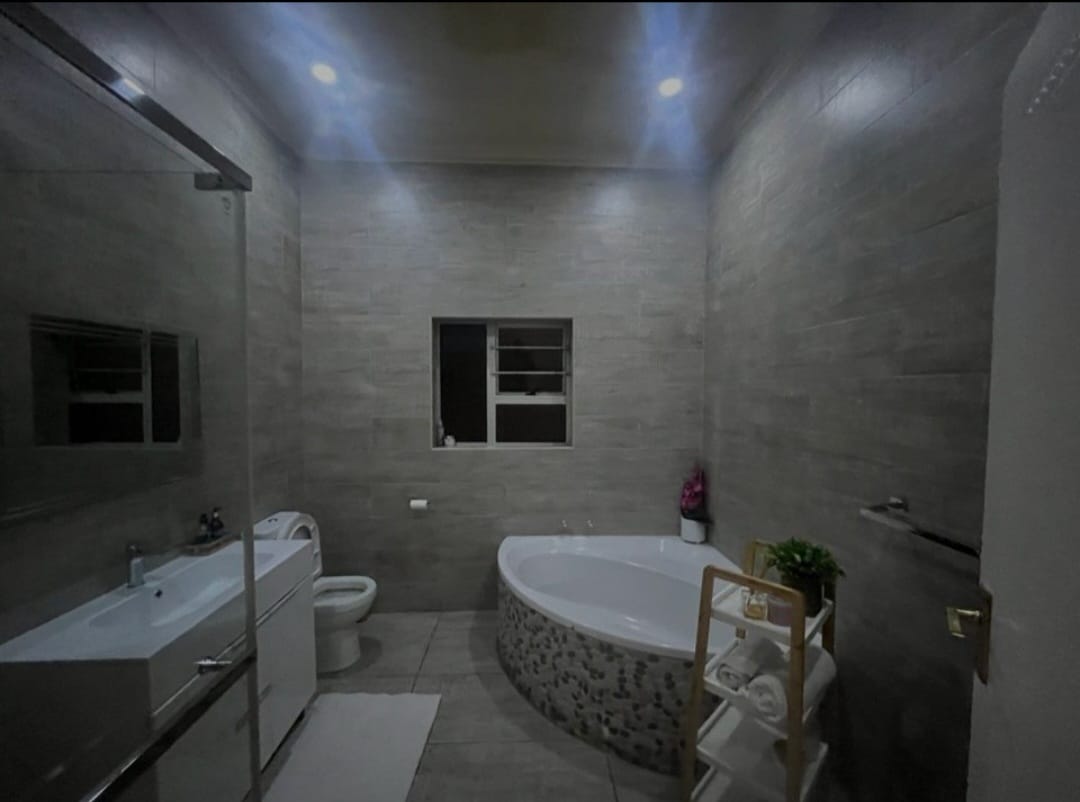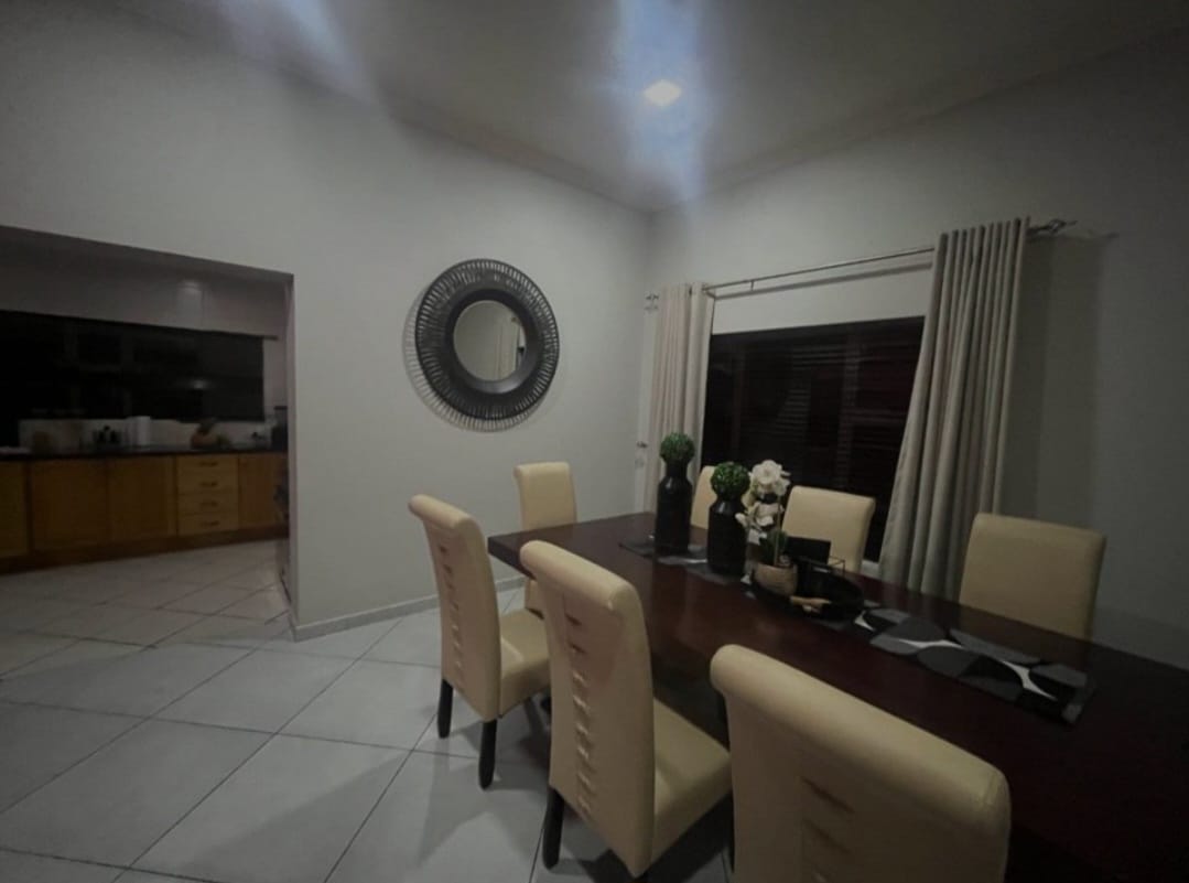This house has a double garage, plenty space for visitors to park and is fully paved for neatness. The well manicured garden allows room for a perfect play area for children. This property is fully walled and secure with an electric gate and intercom at the entrance. It is well situated and close to shopping centers, schools and highways for your convenience.