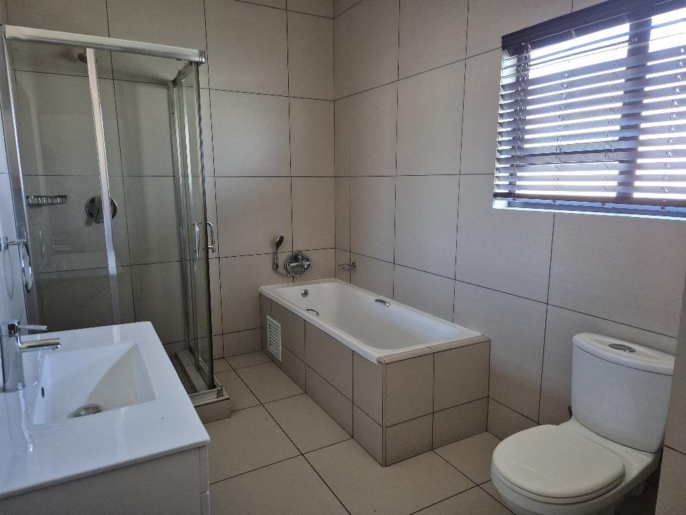 Retreat to the main bedroom, generously sized to accommodate a king-size bed. This carpeted sanctuary comes with built-in cupboards, blinds, and an ensuite bathroom featuring a bath, shower, basin, and toilet for added privacy and luxury.