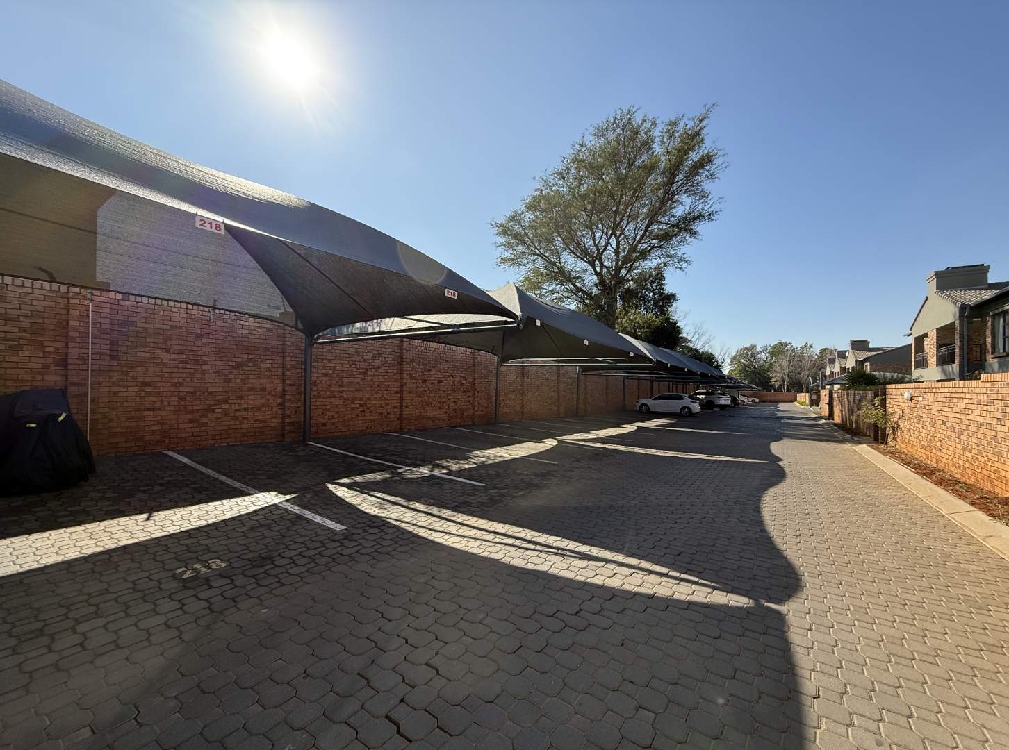 Two covered, designated parking bays