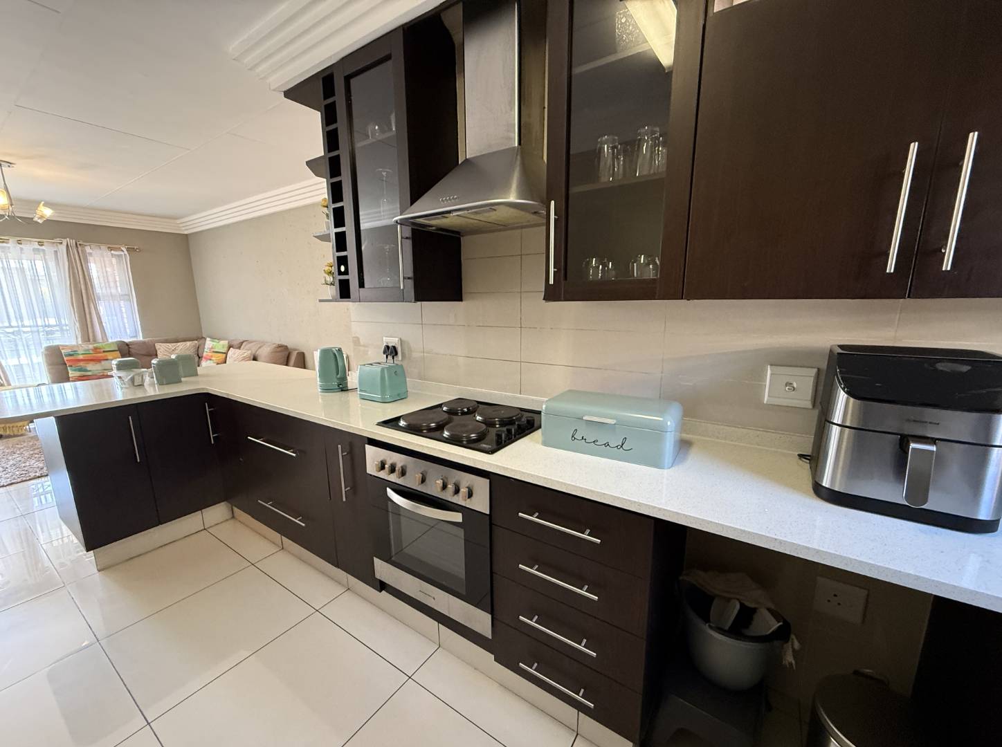 Modern kitchen with electric hob and ample cabinetry
