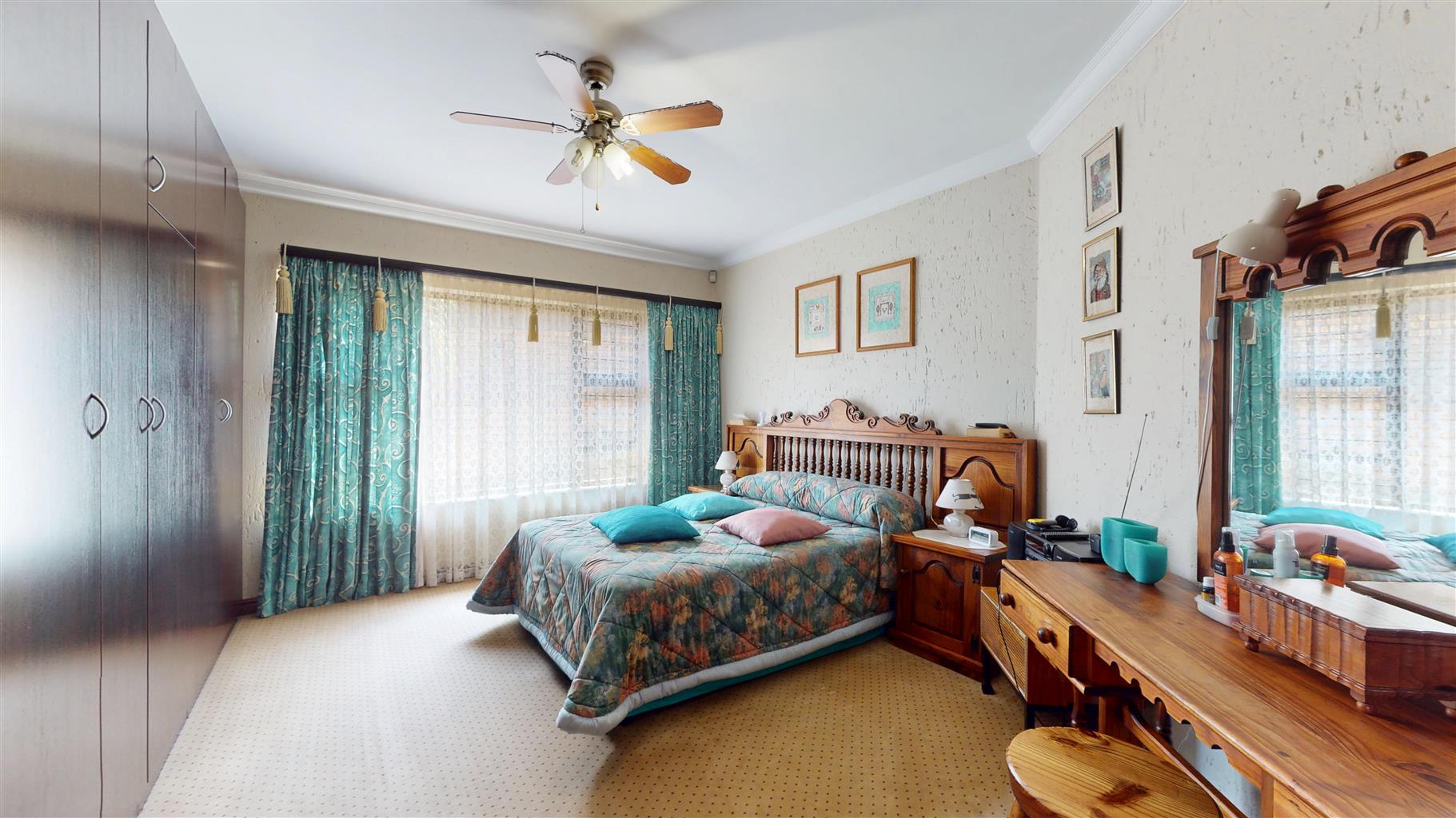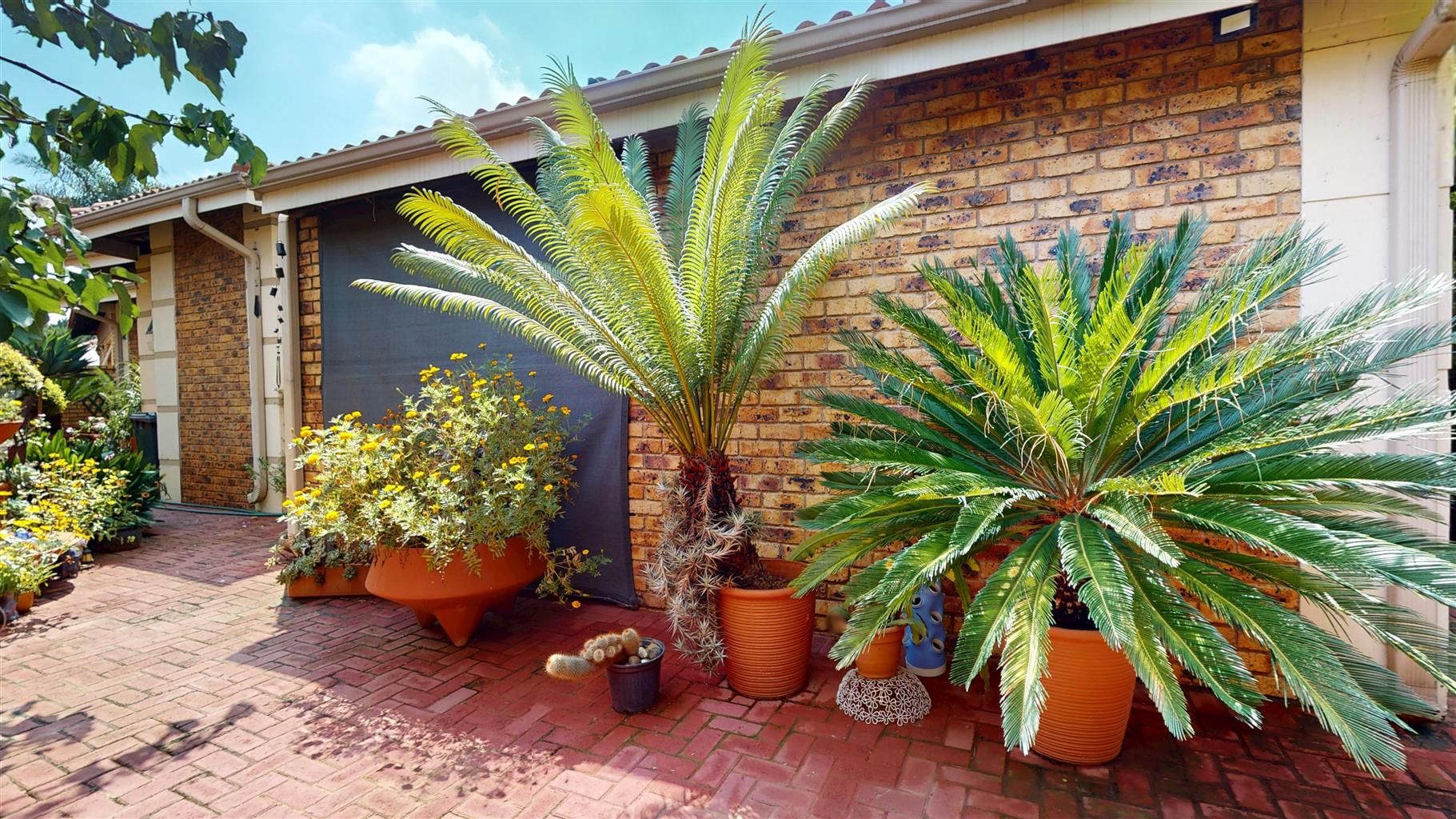 As you arrive, you're welcomed by a beautifully manicured garden adorned with striking cycad trees. A paved driveway leads you into double automated garages, which also include a dedicated tool room—a perfect space for storage or hobbies.