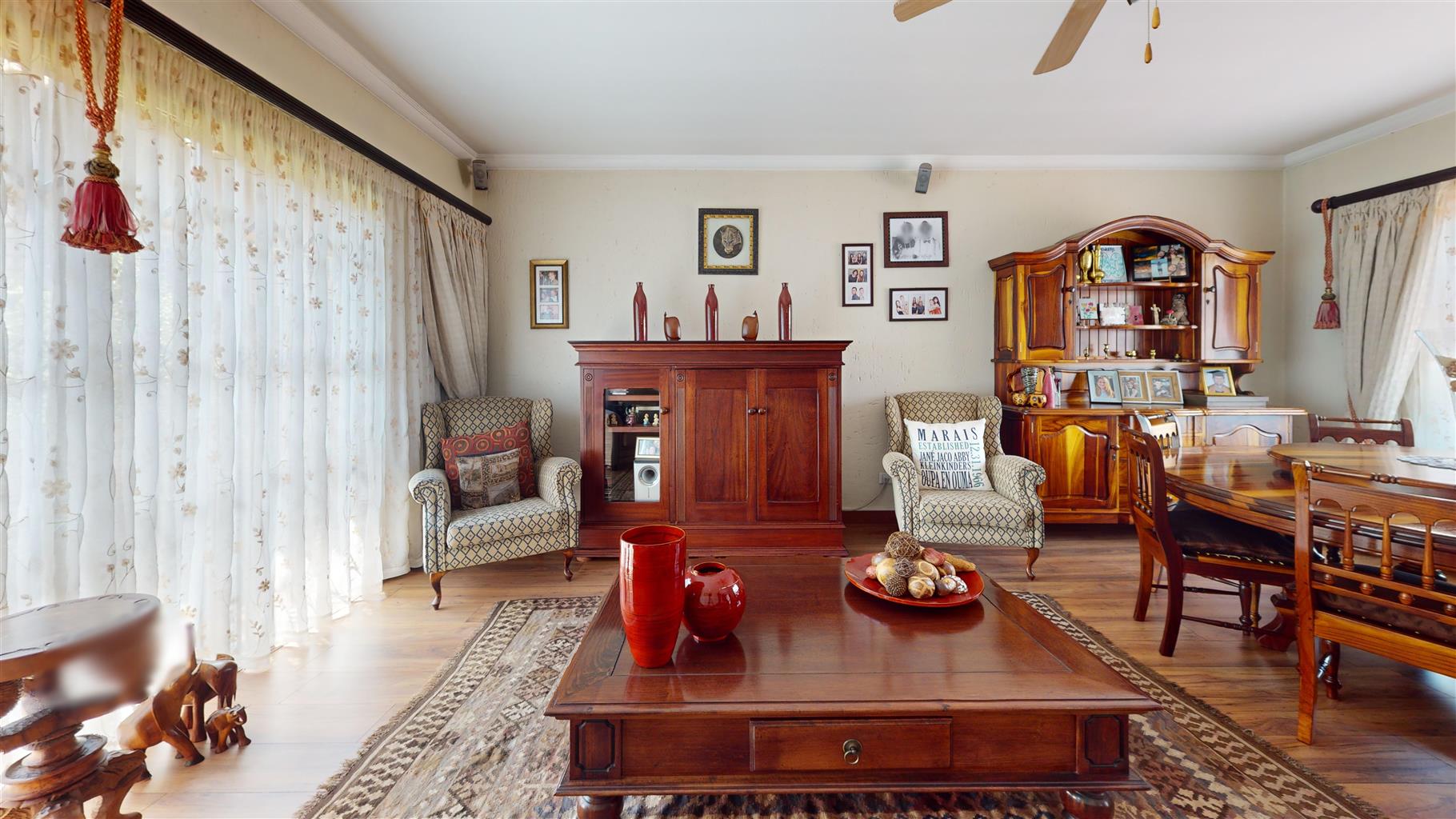 The heart of the home is its inviting living areas. The lounge and dining area are elegantly finished with laminated flooring, providing a warm and stylish ambiance. Step into the enclosed sunroom, a versatile space perfect for relaxing, entertaining, or hosting a family braai.