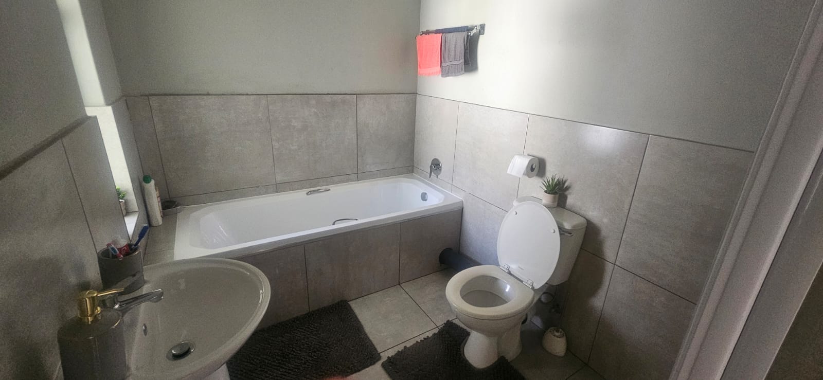 Bathroom with Shower and Bath: The bathroom includes a shower, bath, toilet, and basin, providing versatile options for your daily routine.