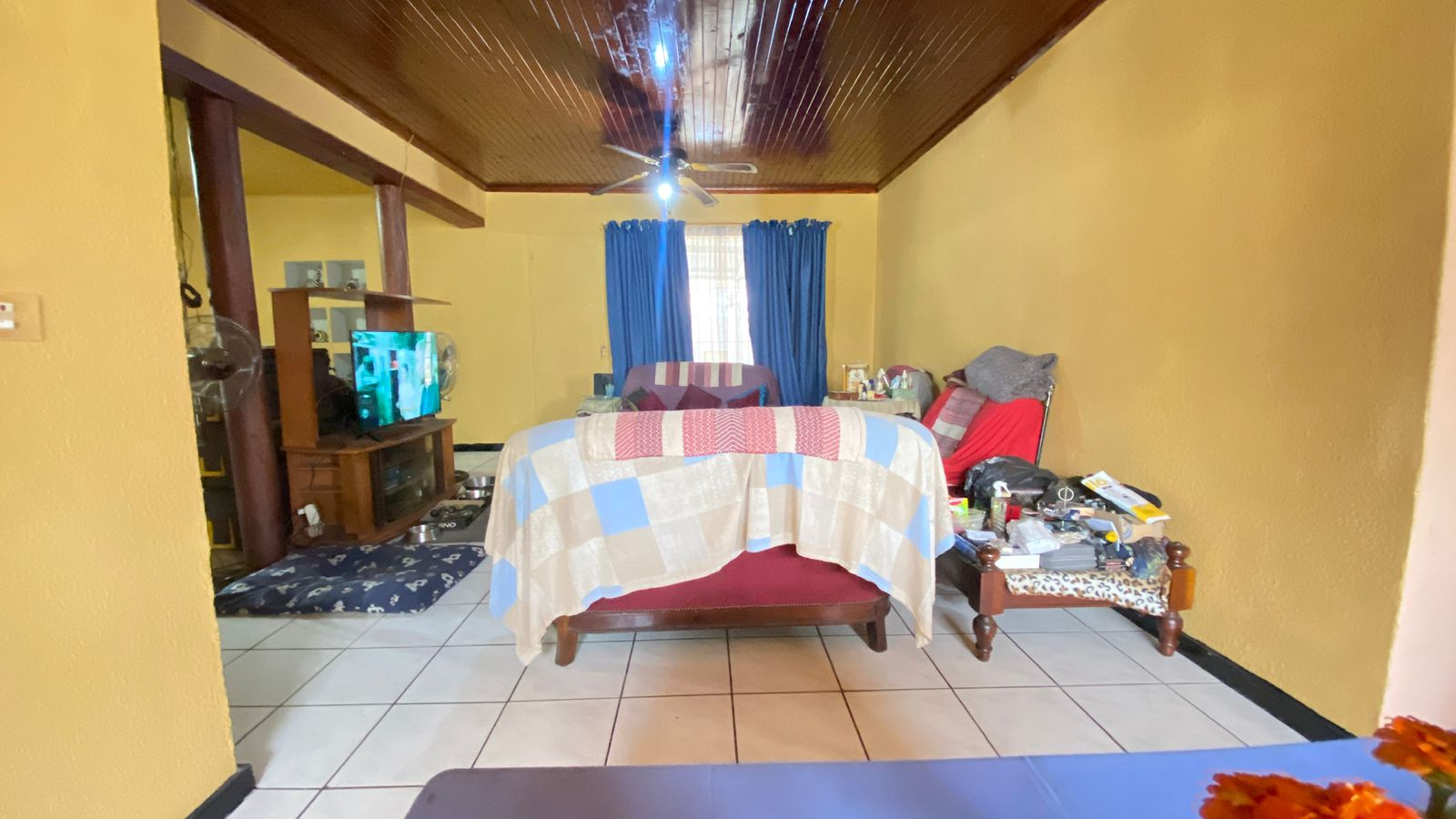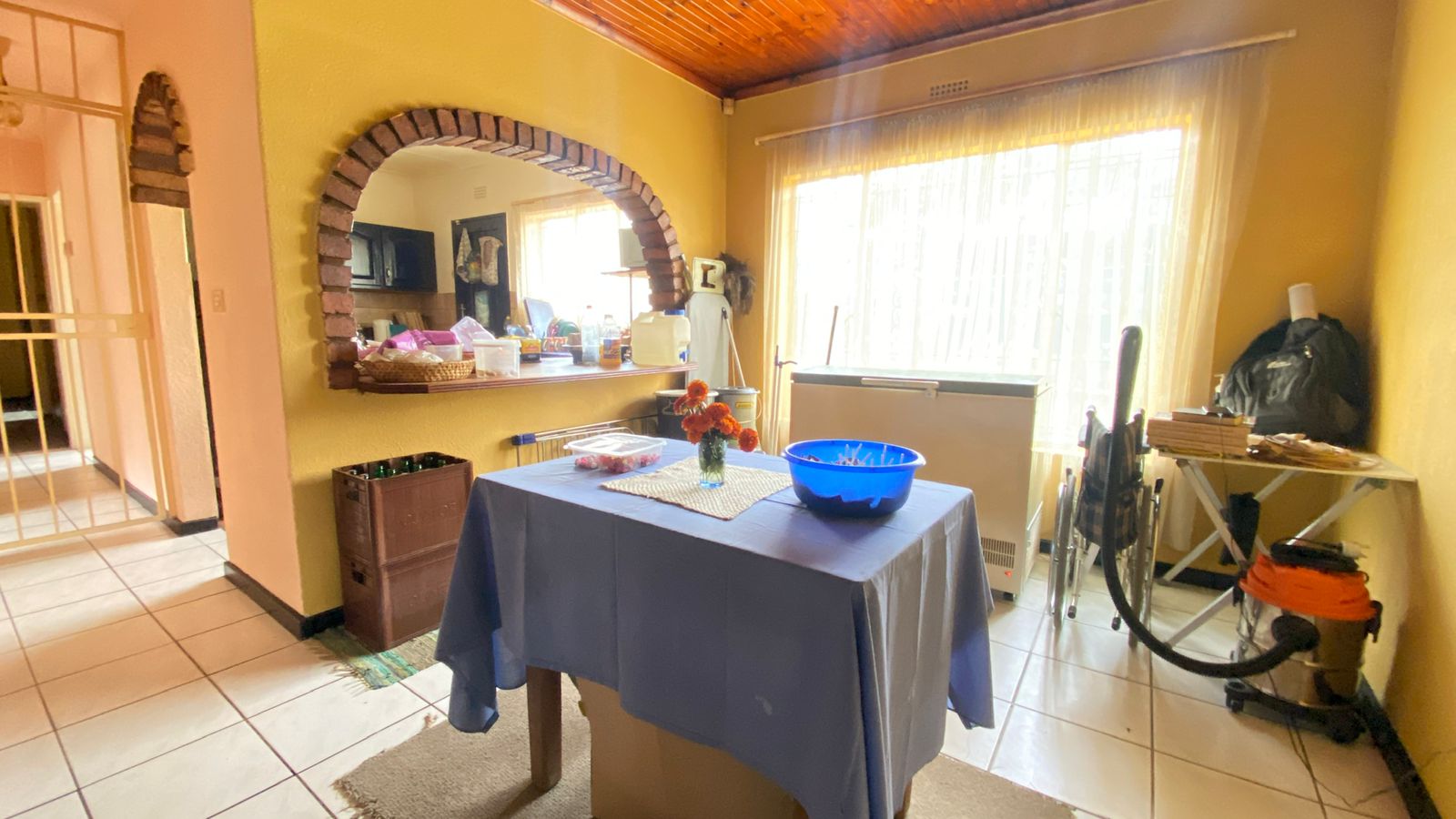 The kitchen is separate from the living areas and fitted with classic wooden cupboards, offering ample storage. The home also boasts a large lounge and a separate dining room, ideal for family meals and entertaining.