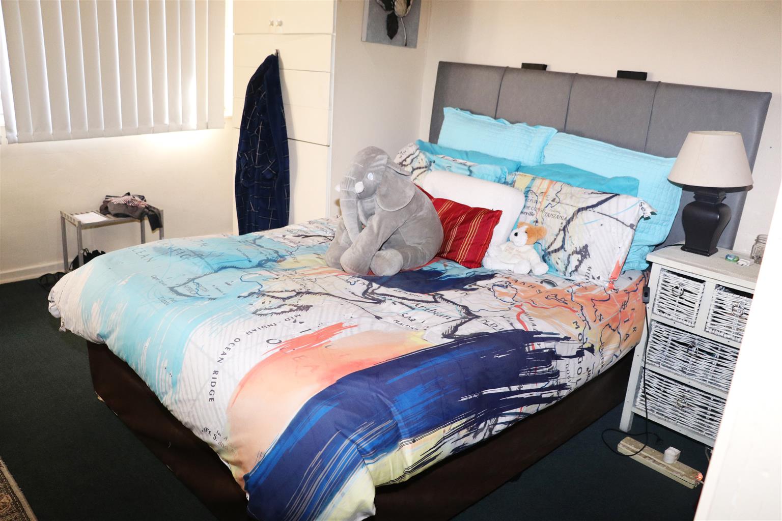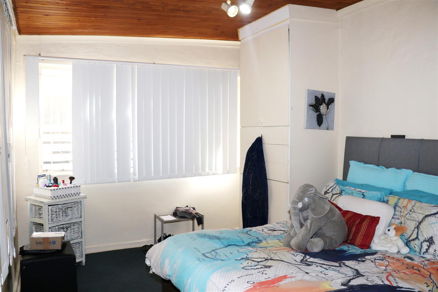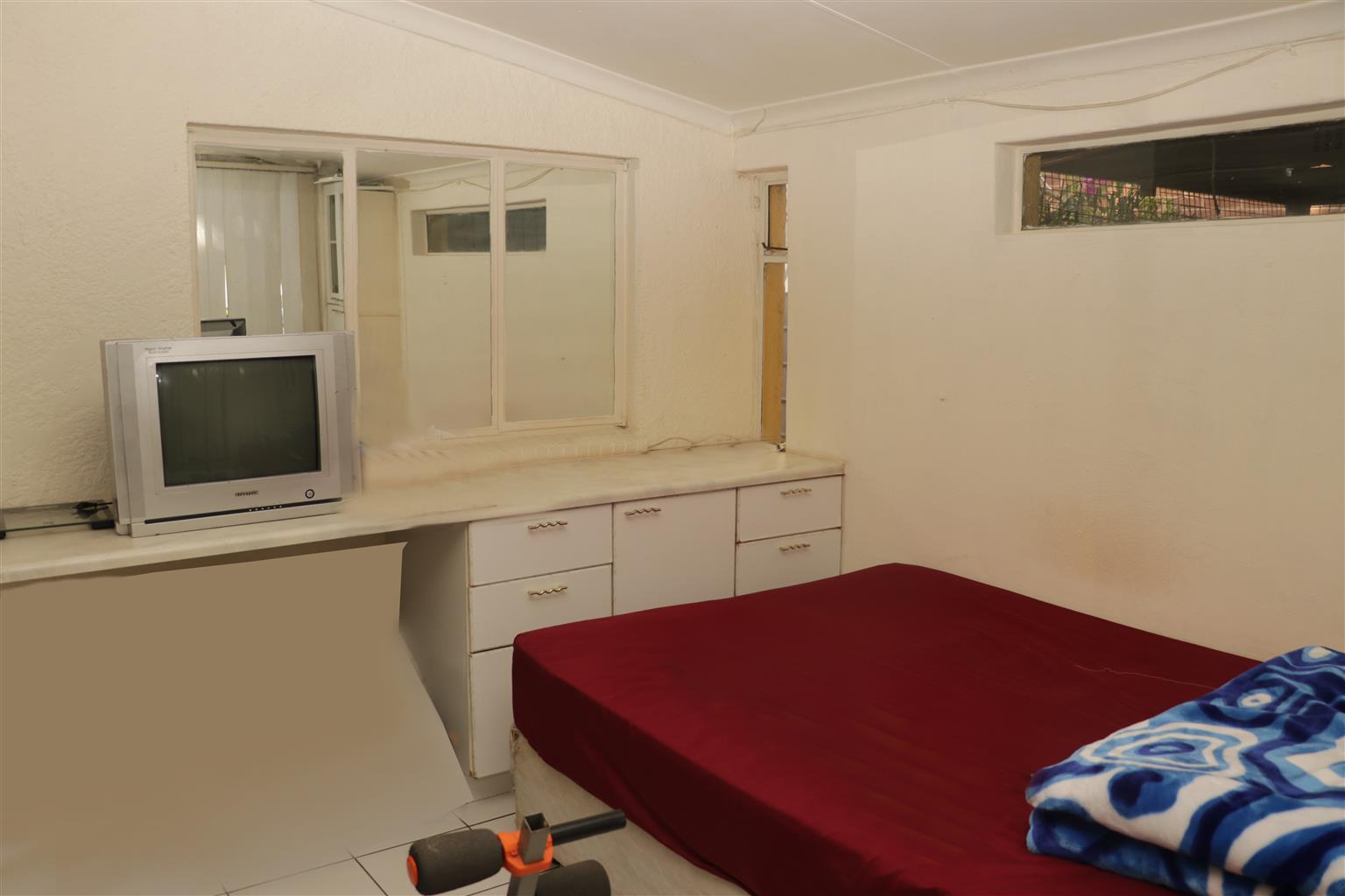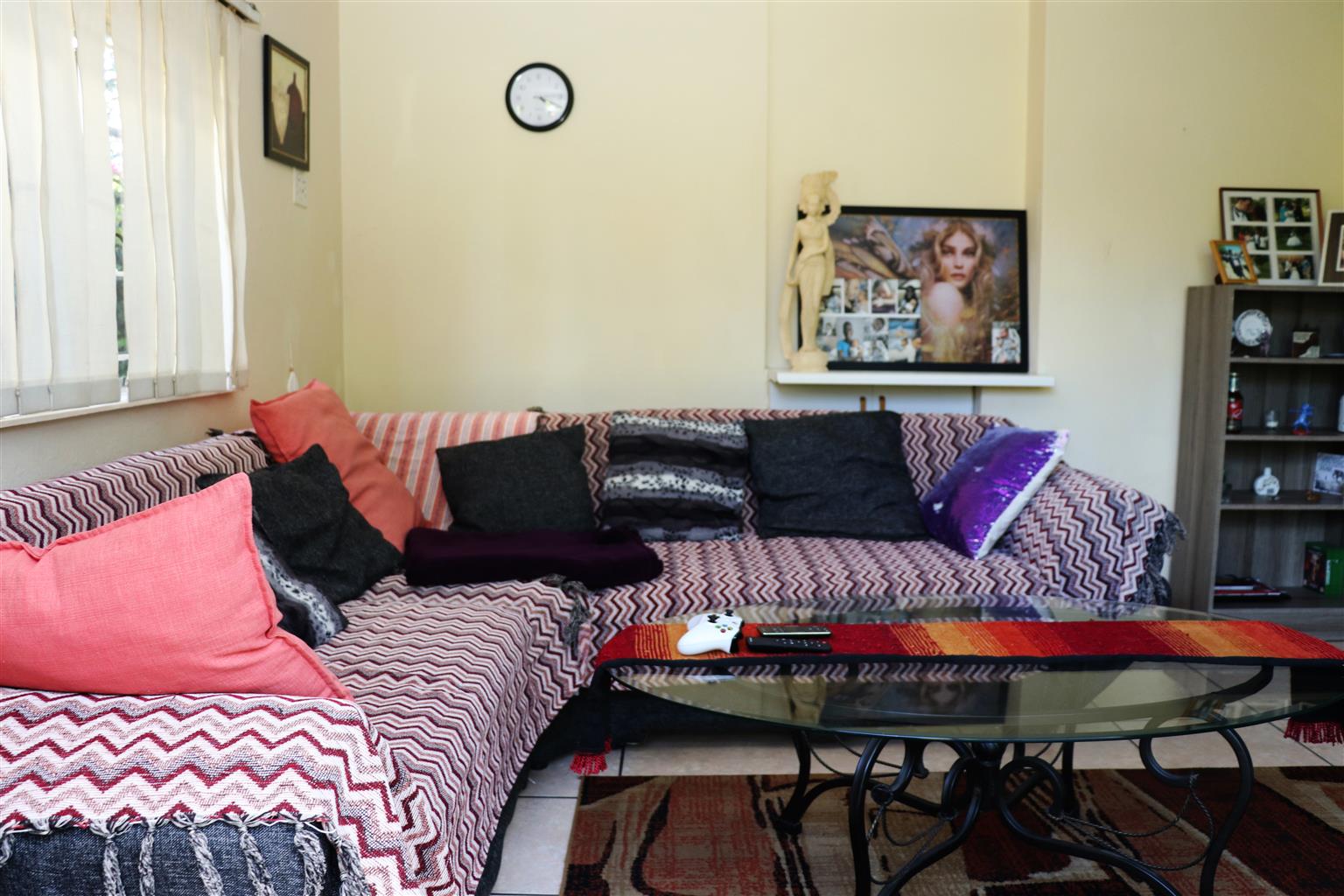2 bedrooms, lounge and small dining area. Bathroom and separate toilet. Spacious white melamine cupboards in the bedroom and kitchen.
