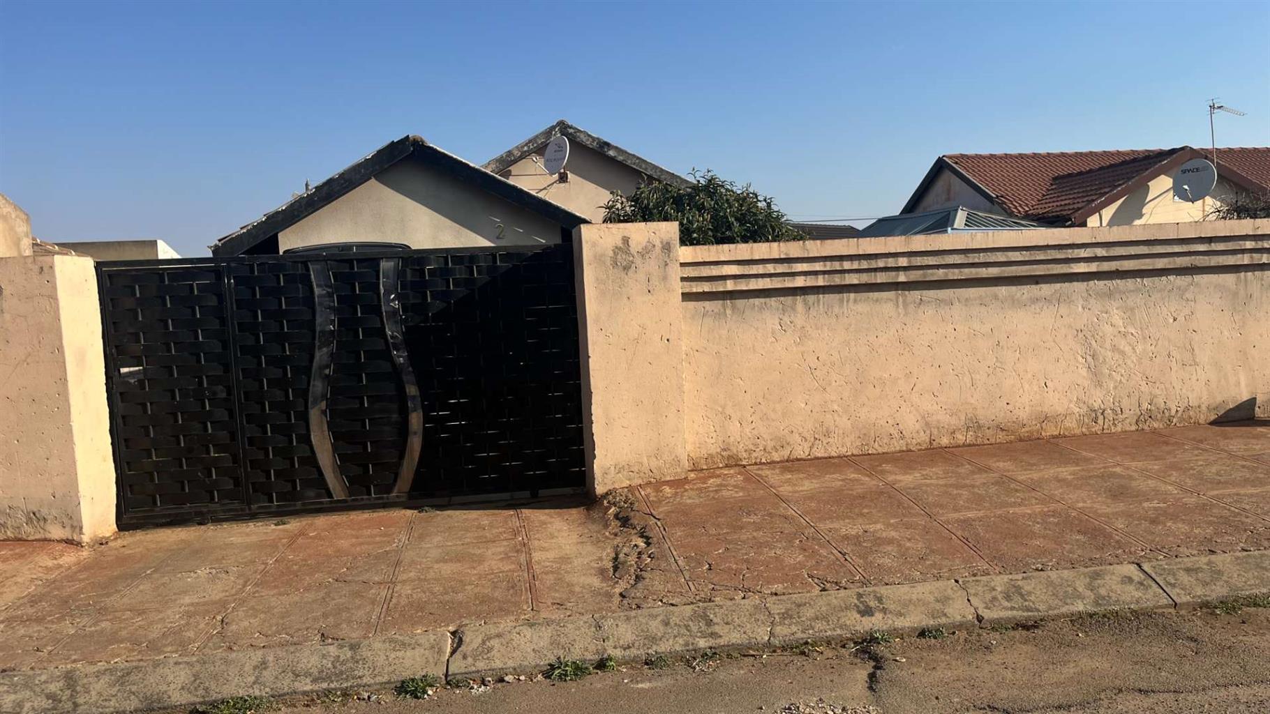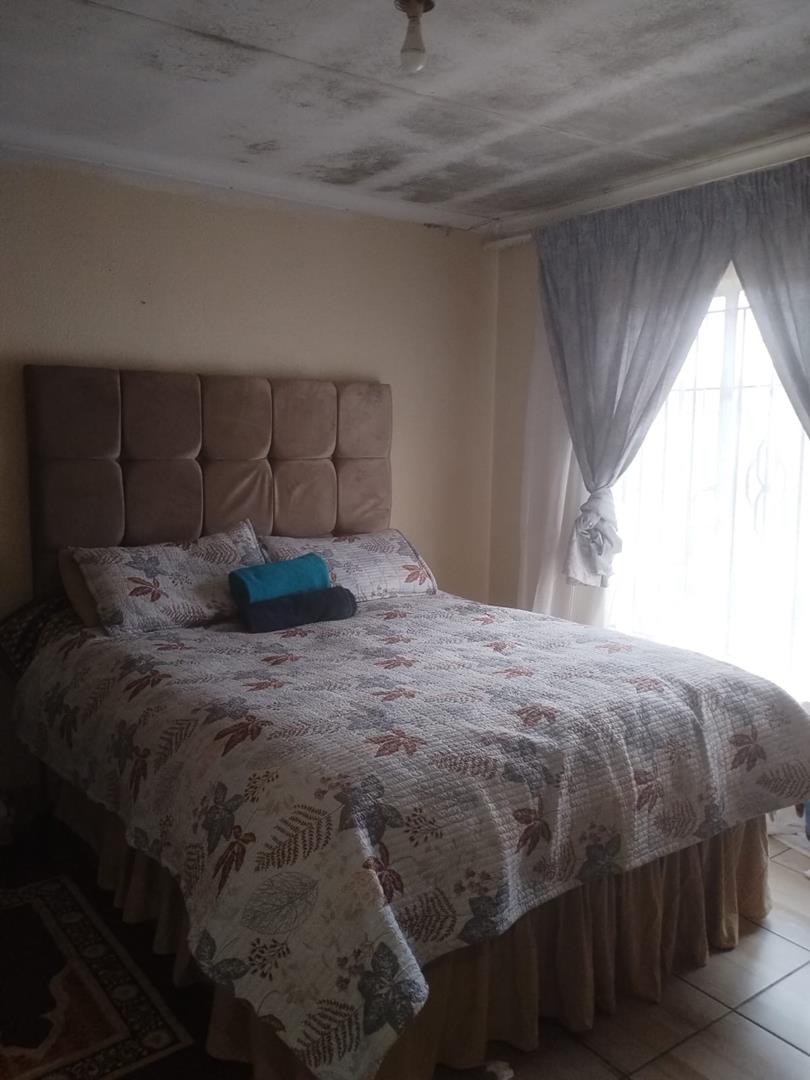 Neat kitchen tiled through out with build-in cupboards with electric stove and extractor fan, 3 bedrooms, 1 bathroom, dining, lounge and 1 garage enough garden space for the extension of the property and prepaid electricity meter.