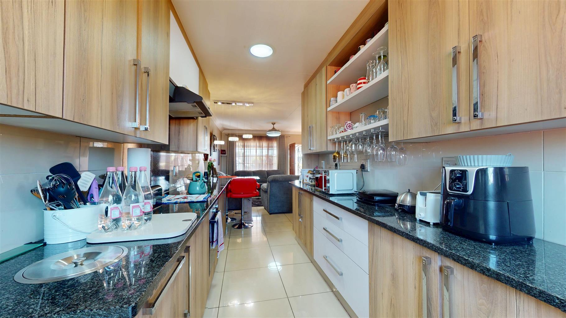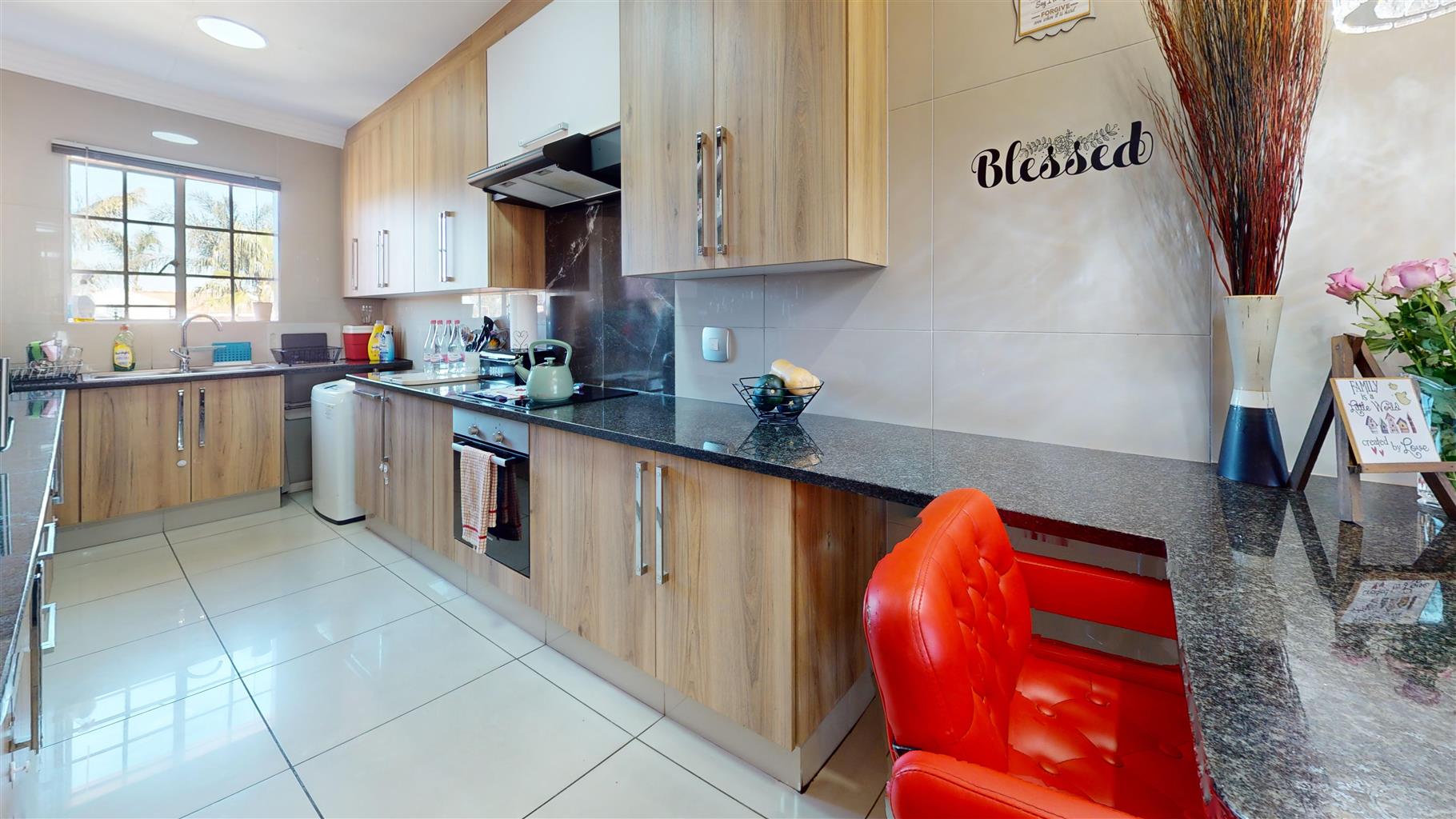 Step out onto the covered patio, perfectly positioned to capture the warmth of the northern sun – the ideal space to relax or enjoy a small braai.