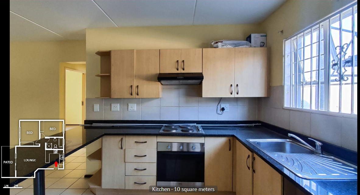 This beautifully maintained 2-bedroom, 1-bathroom home is located in a secure, well-managed complex in the heart of Bardene. With a modern, open-plan layout, the kitchen flows seamlessly into a bright and spacious lounge, ideal for comfortable everyday living and entertaining. The kitchen is neat and functional, offering ample cupboard space and clean finishes, while the entire unit is tiled throughout for easy maintenance.