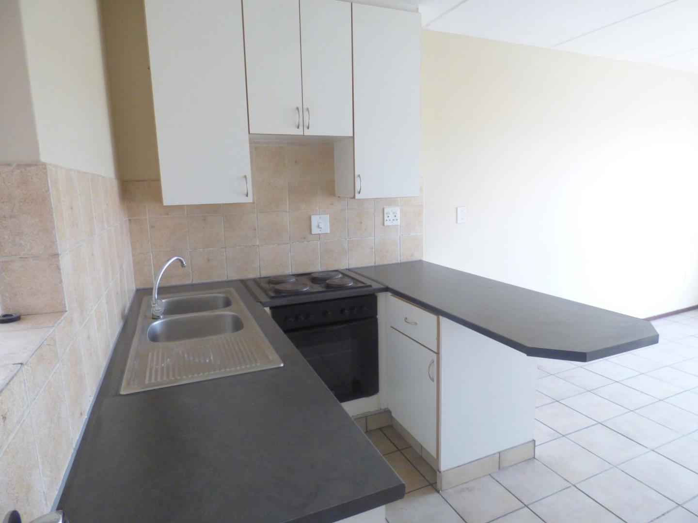 The spacious open-plan lounge is perfect for unwinding after a long day or entertaining friends. The modern kitchen comes fully equipped with a 4-plate electric stove, built-in cupboards, washing machine connection, and space for your fridge – everything you need for effortless living.