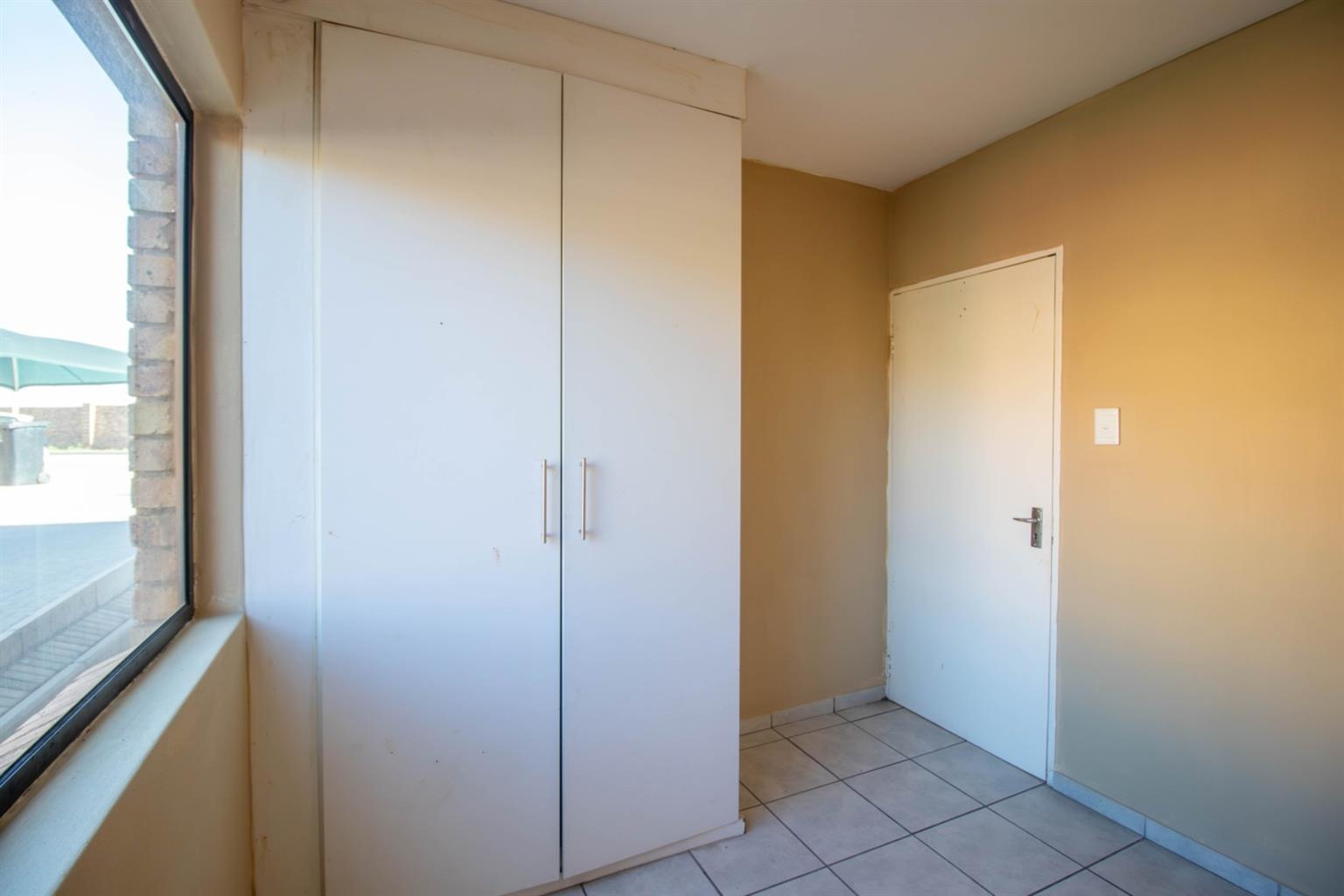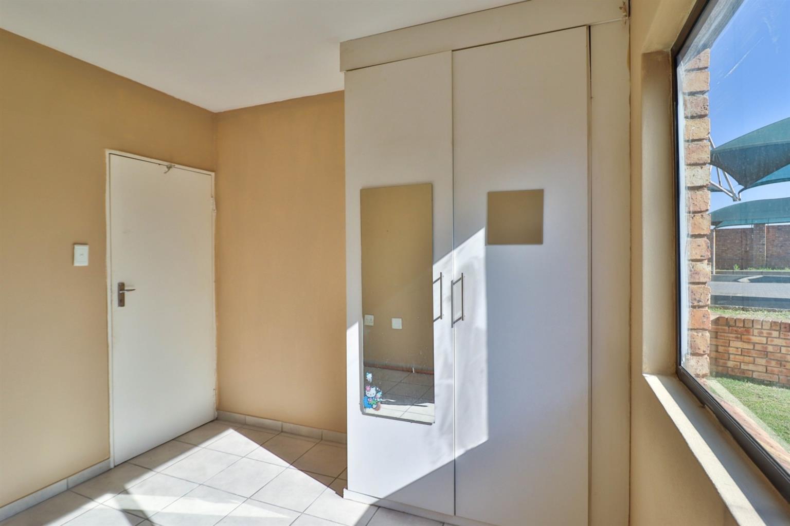 The master bedroom boasts an abundance of built-in cupboards and a full en-suite bathroom.