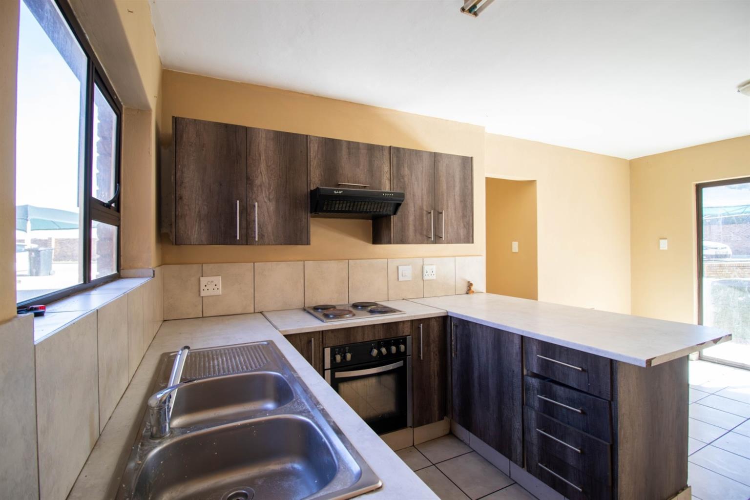 Open-plan kitchen and lounge area with sliding doors leading out to a private patio—ideal for entertaining or relaxing.