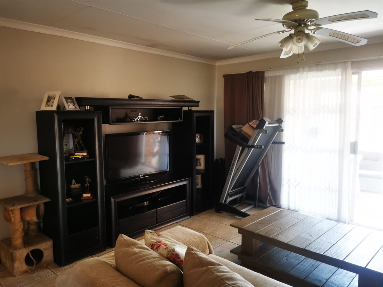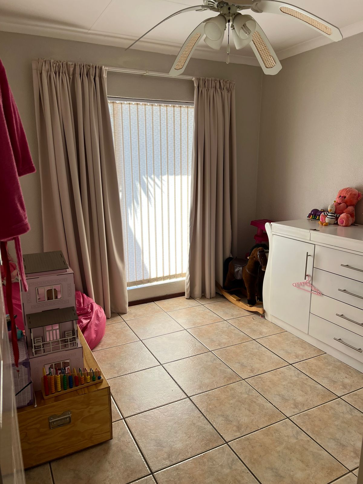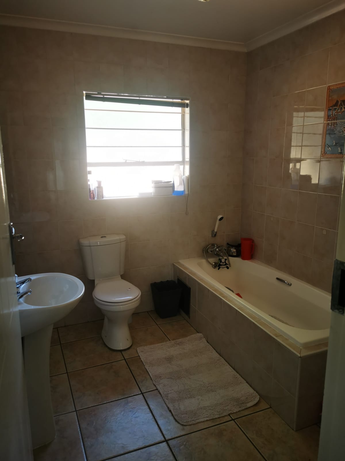 Townhouse with double garage, 3 bedrooms, 2 full bathrooms, lounge, dining room and large kitchen with scullery. Main bedroom has on suite bathroom with shower and bath and dressing room. Covered patio with built in braai and small garden. Alarm and security gates in a secure complex. Watering system installed. Remote controlled gates and garage door. Established garden. Fully tiled with under floor heating. Available 1 June for rent R14000 plus water and electricity.