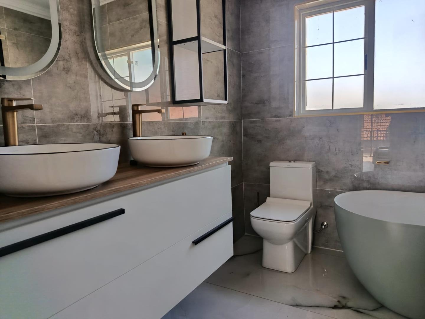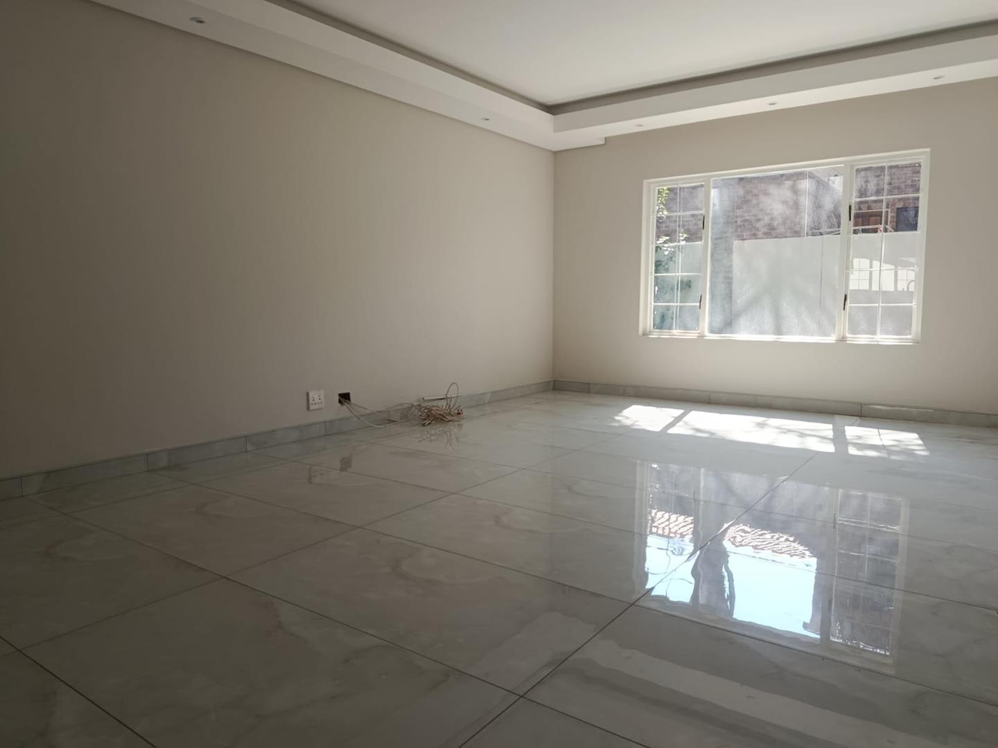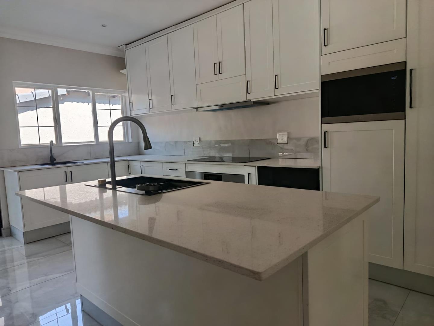 This stunning modern home is designed with style and comfort in mind featuring clean white finishes, glossy large tiles and a bright open-plan feel throughout. The spacious white kitchen comes with a breakfast nook and ample cupboard space, flowing effortlessly into two generous living areas. A large glass door leads you out to the garden and sparkling pool perfect for entertaining.