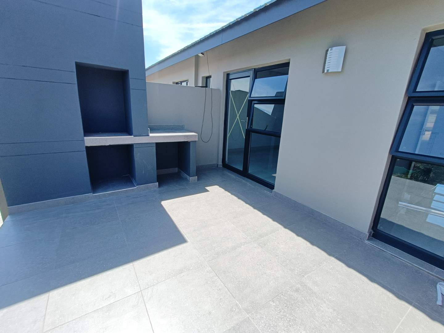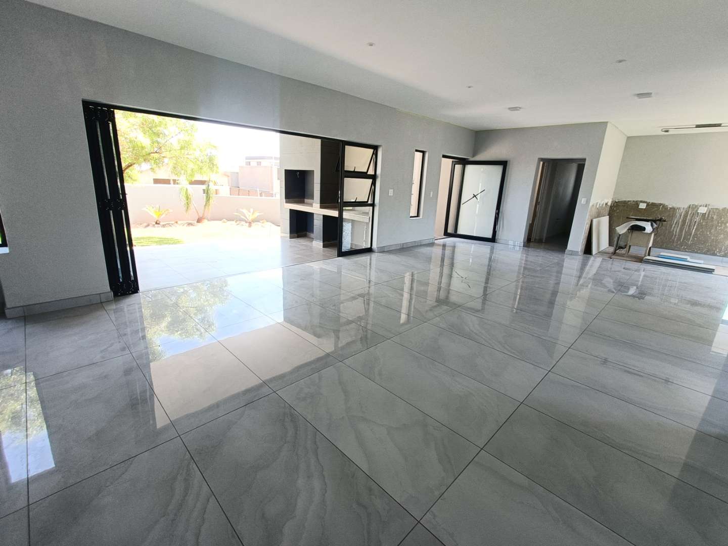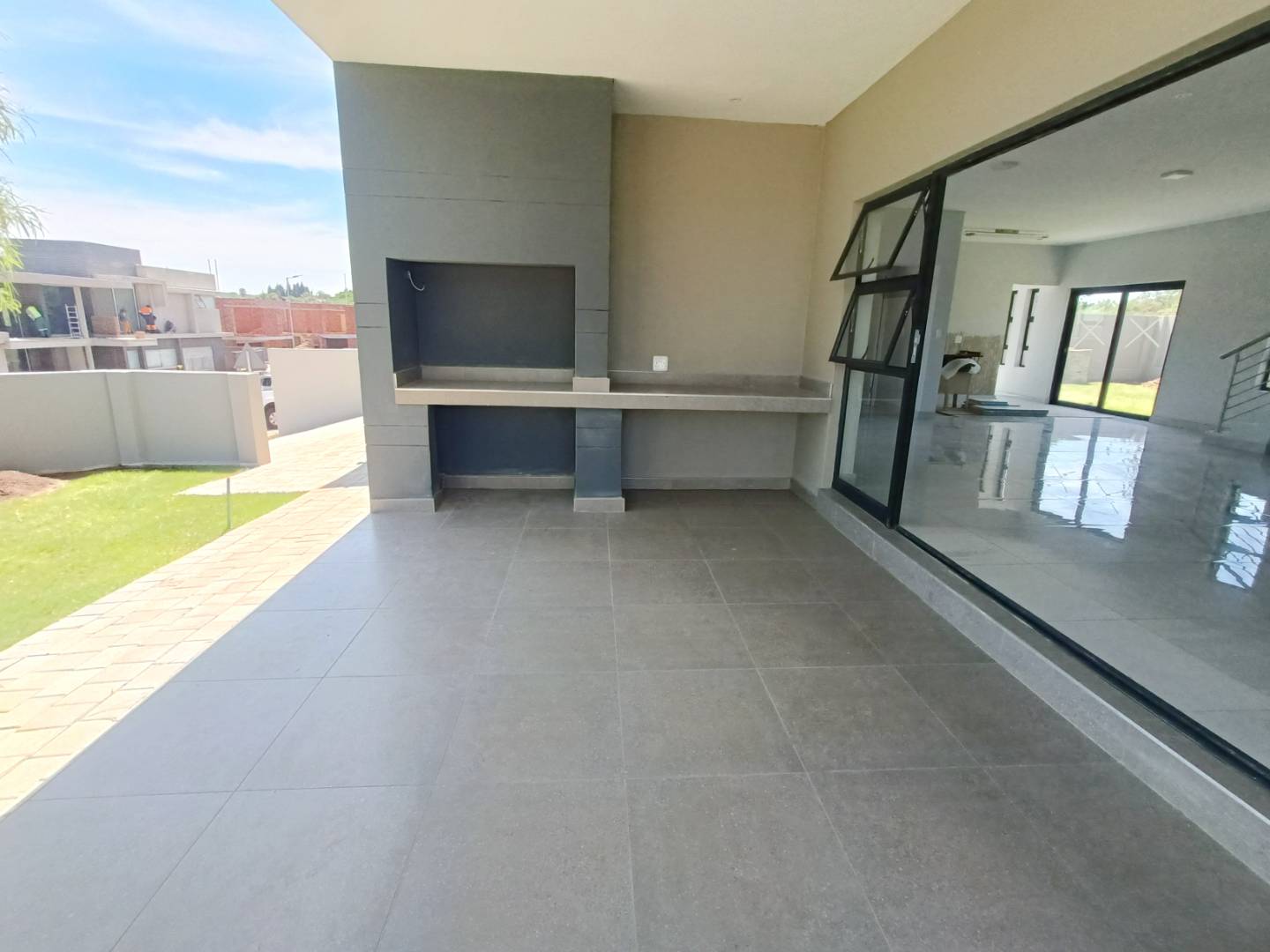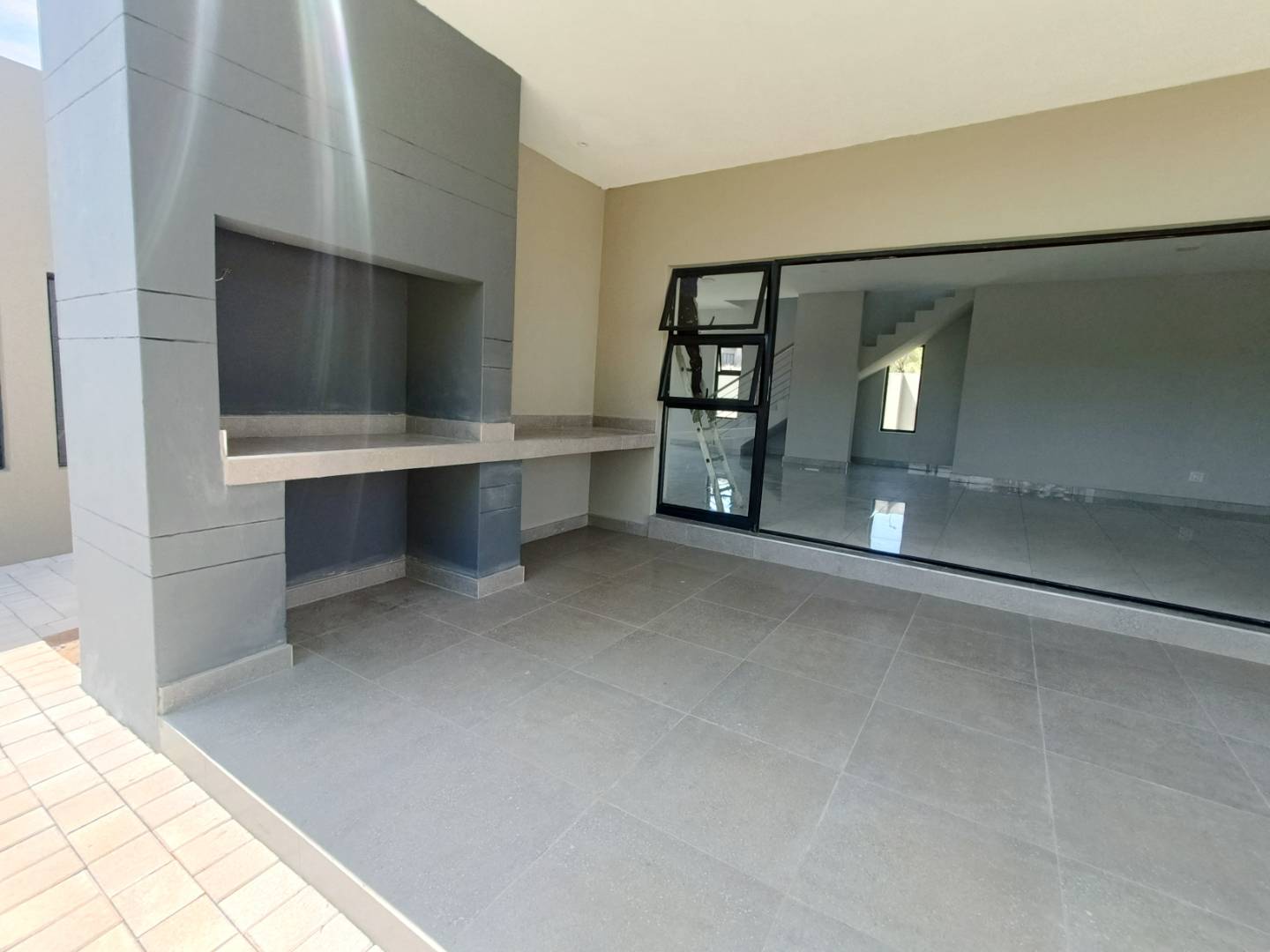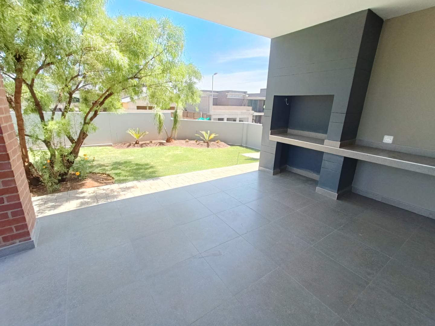As you step inside, you'll be greeted by a SPACIOUS and AIRY open-plan living area, perfect for ENTERTAINING and RELAXING. This area walks out onto a patio with a braai.