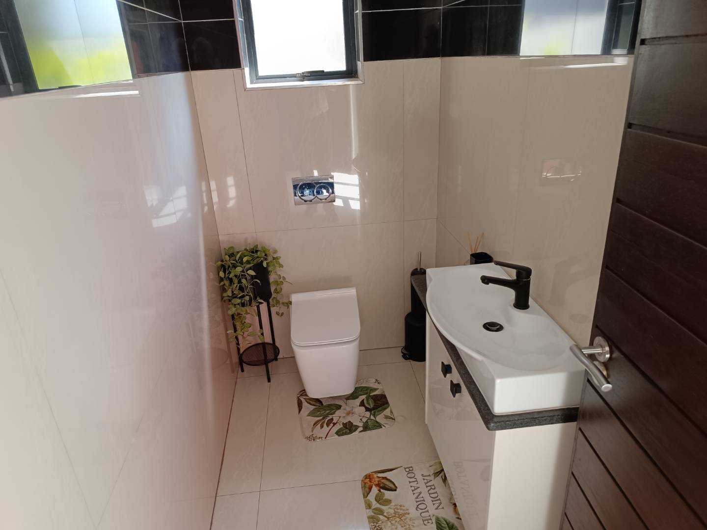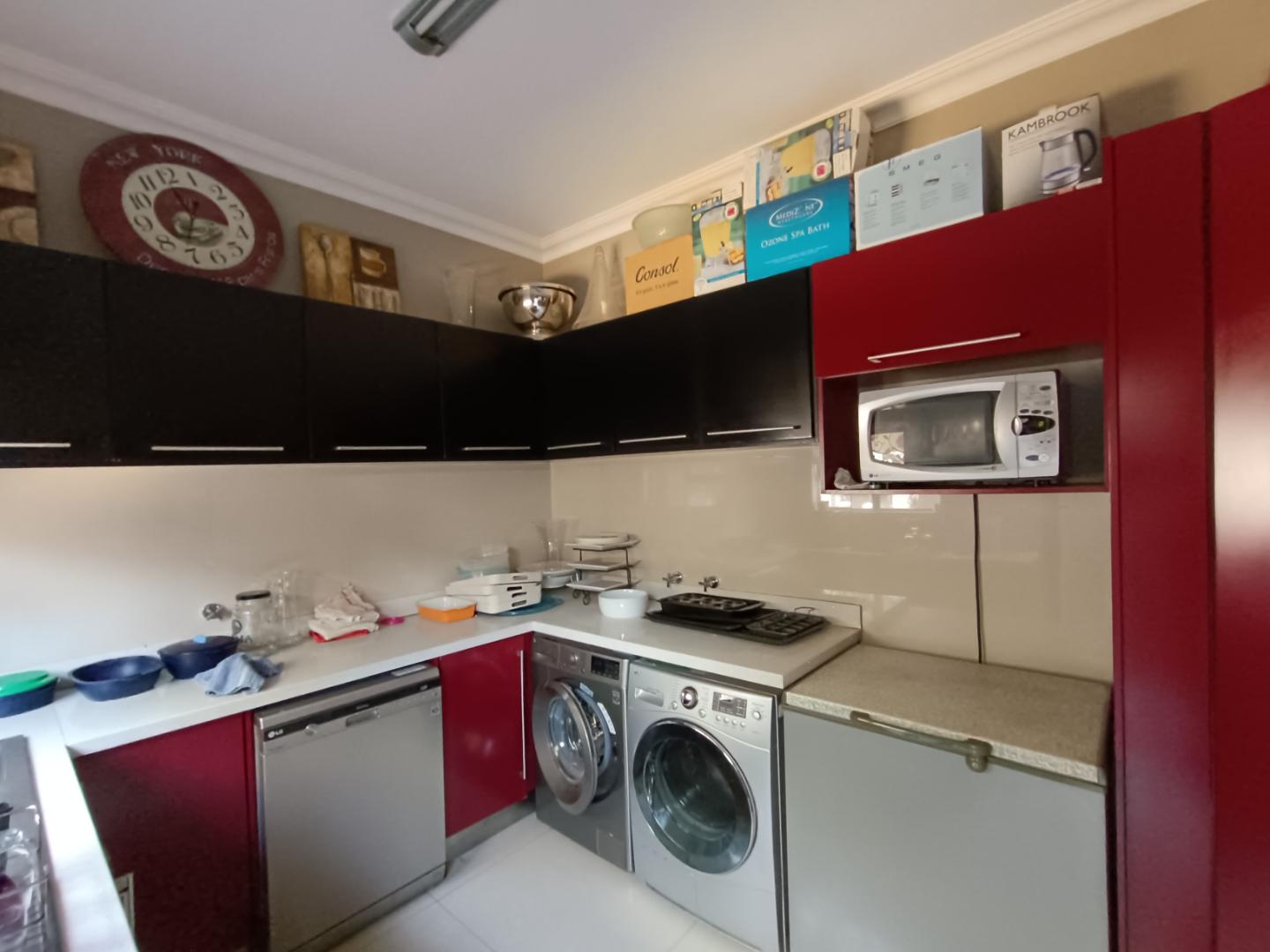 The modern gourmet kitchen is a chefs dream, equipped with a gas stove, an island breakfast nook, ample pantry storage, and space for a double fridge. The adjoining large scullery accommodates all your appliances, ensuring convenience at every turn.