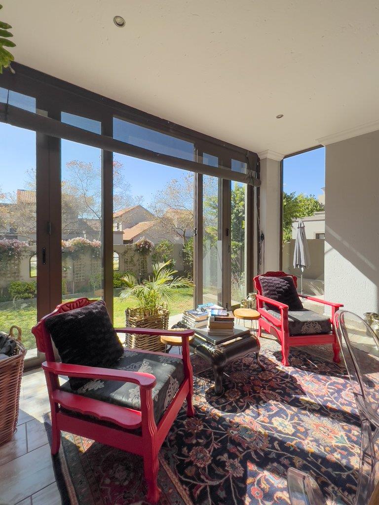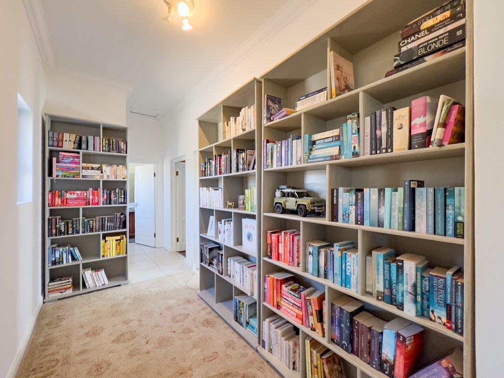 Downstairs, enjoy open-plan living with a designer kitchen, separate scullery, and a light-filled entertainment room with built-in braai and stacking doors opening onto a beautifully landscaped garden and boma designed for easy hosting and outdoor fun.