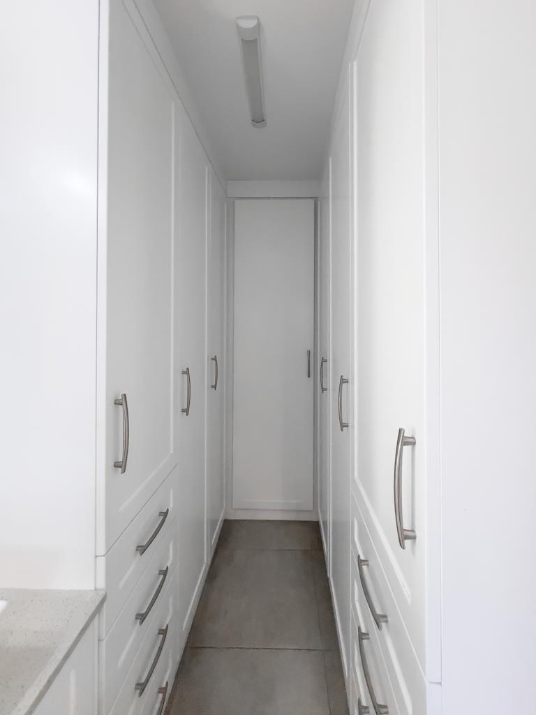 The kitchen offers you ample cupboard space with provision for a double fridge, gas stove & electric oven.
