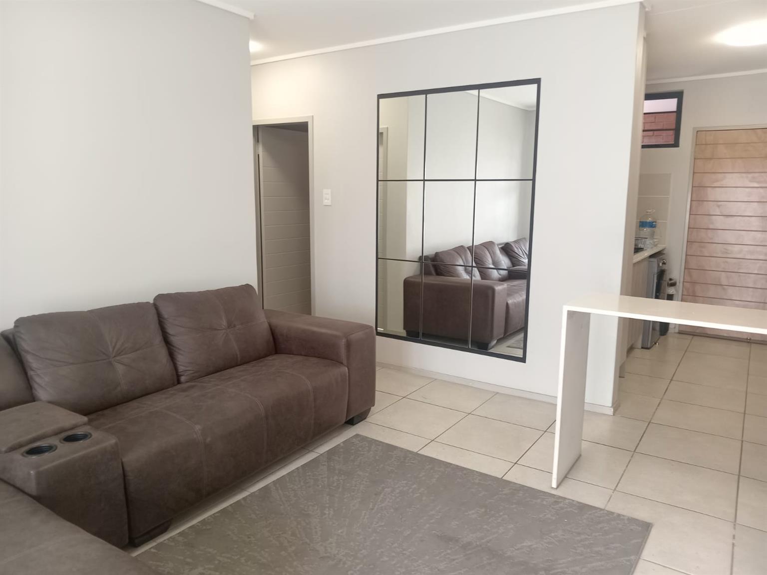 Beginner unit in secure estate. Open plan living area with enclosed small patio that lead to the garden. Designer kitchen with gas stove and lots of extras. Full bathroom with vanity. 2 Bedrooms with build in cupboards stretching from the floor to the roof. Double carport