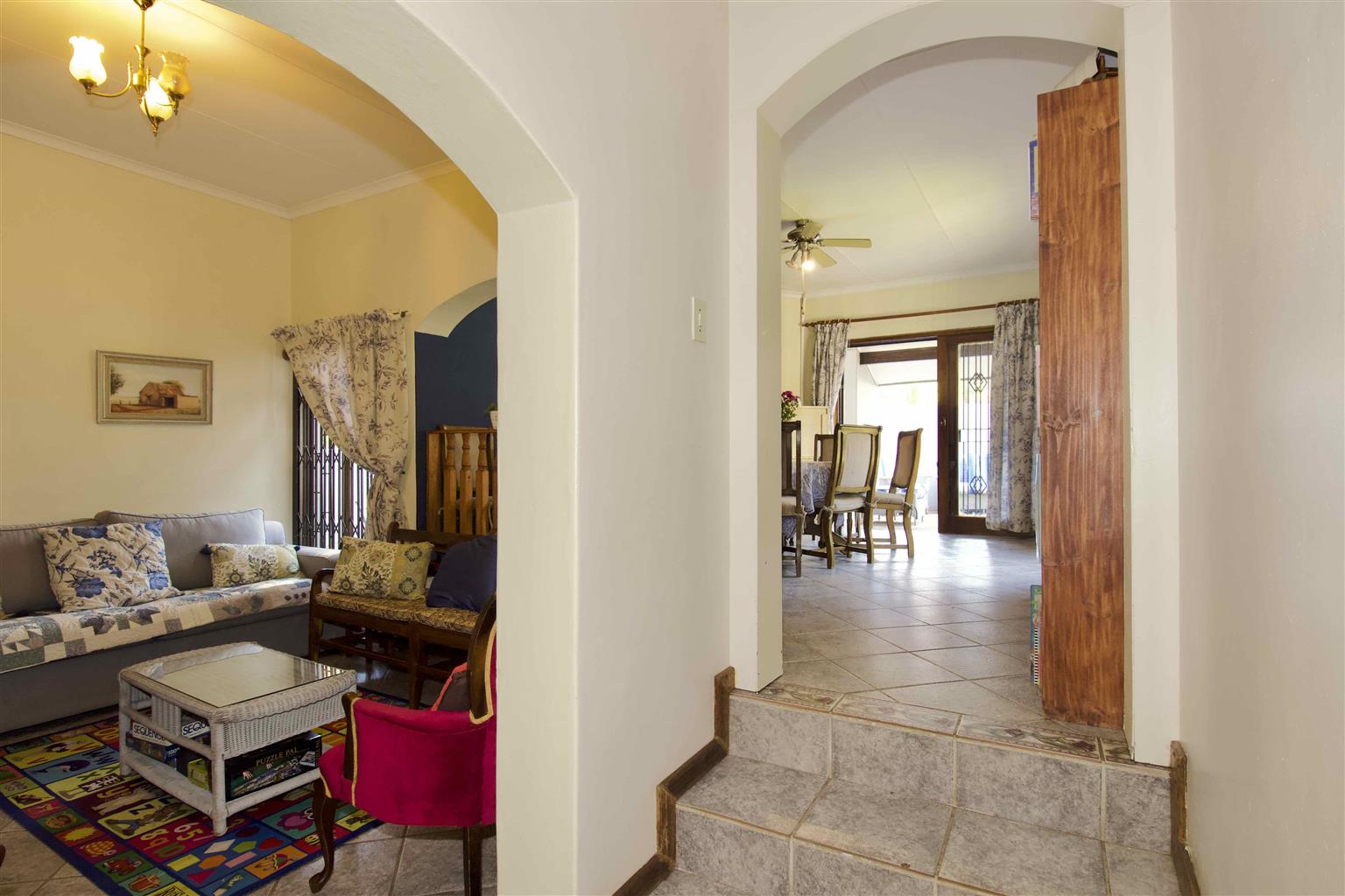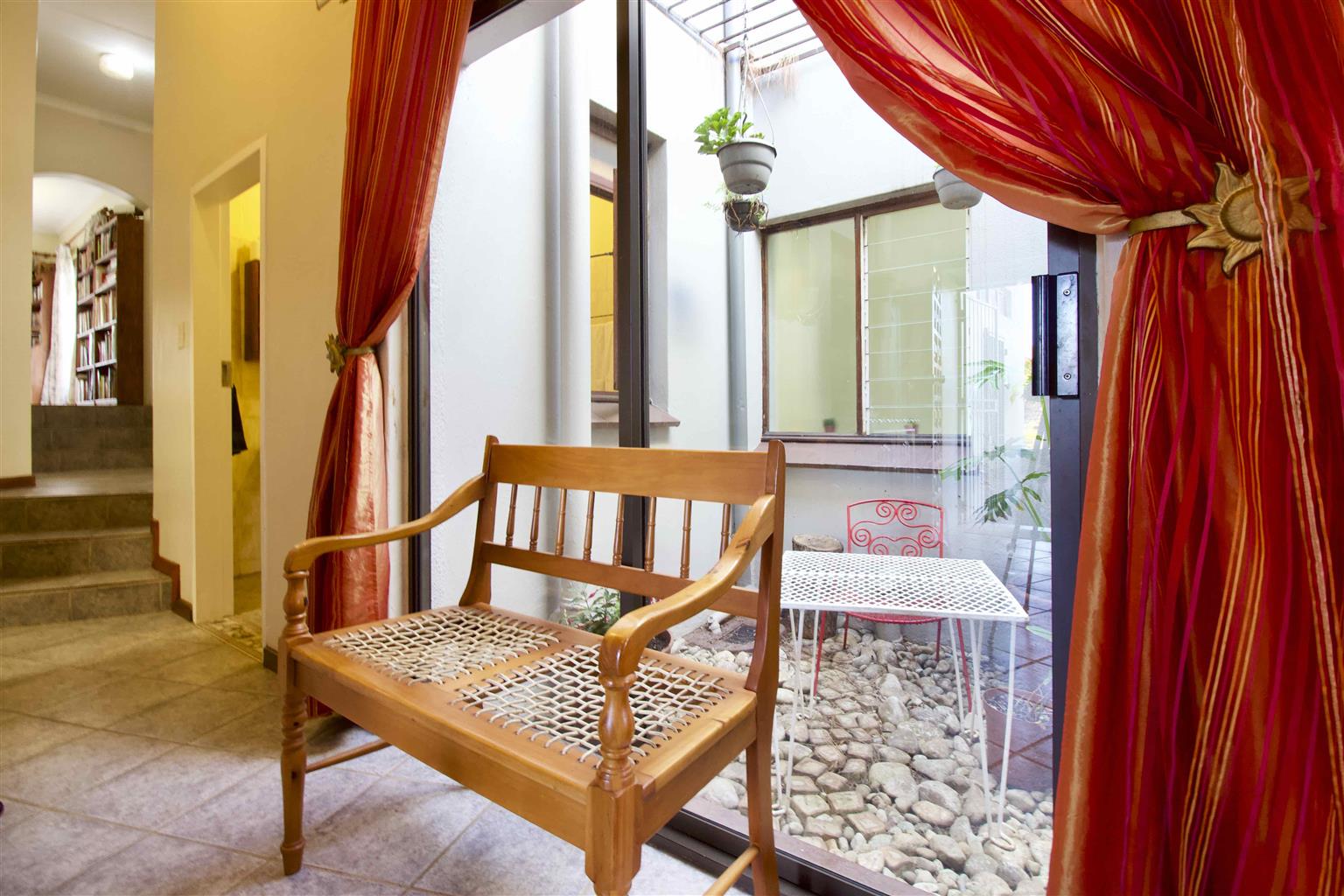 Leading to the garden and paved courtyard.