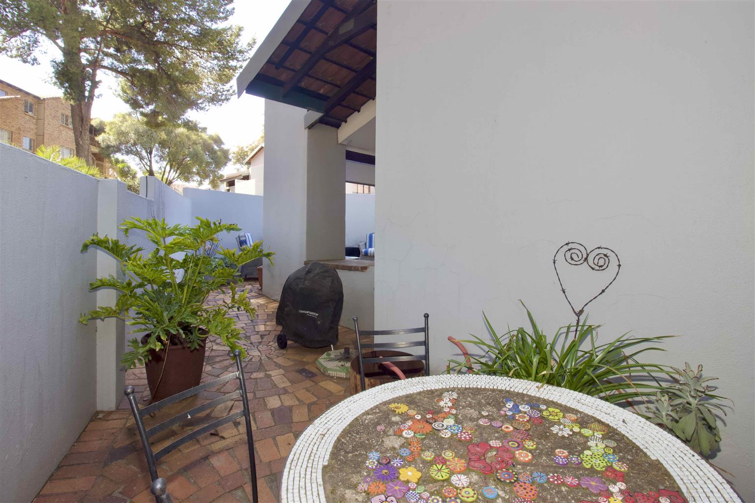 a covered entertainment area.
