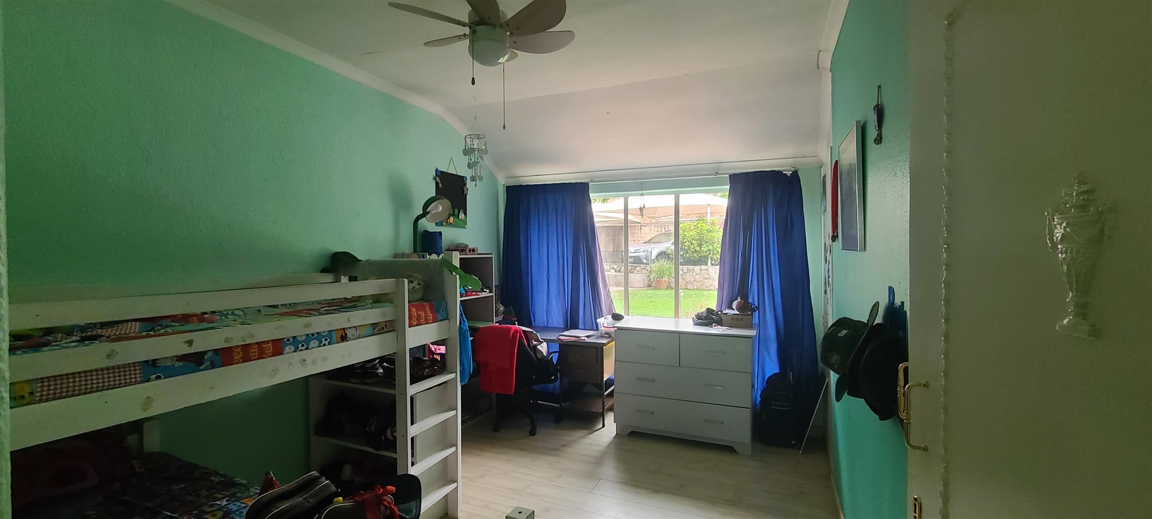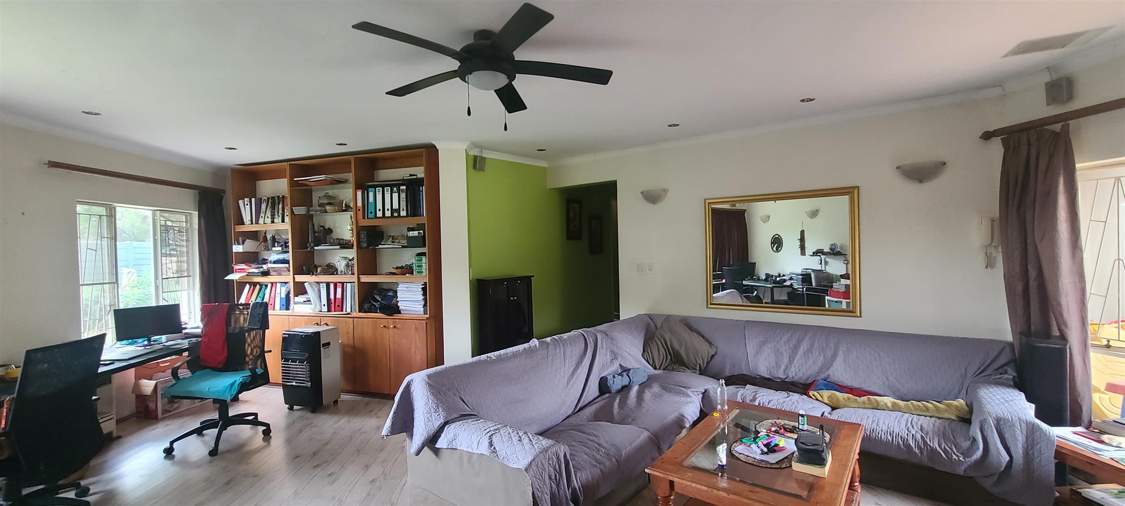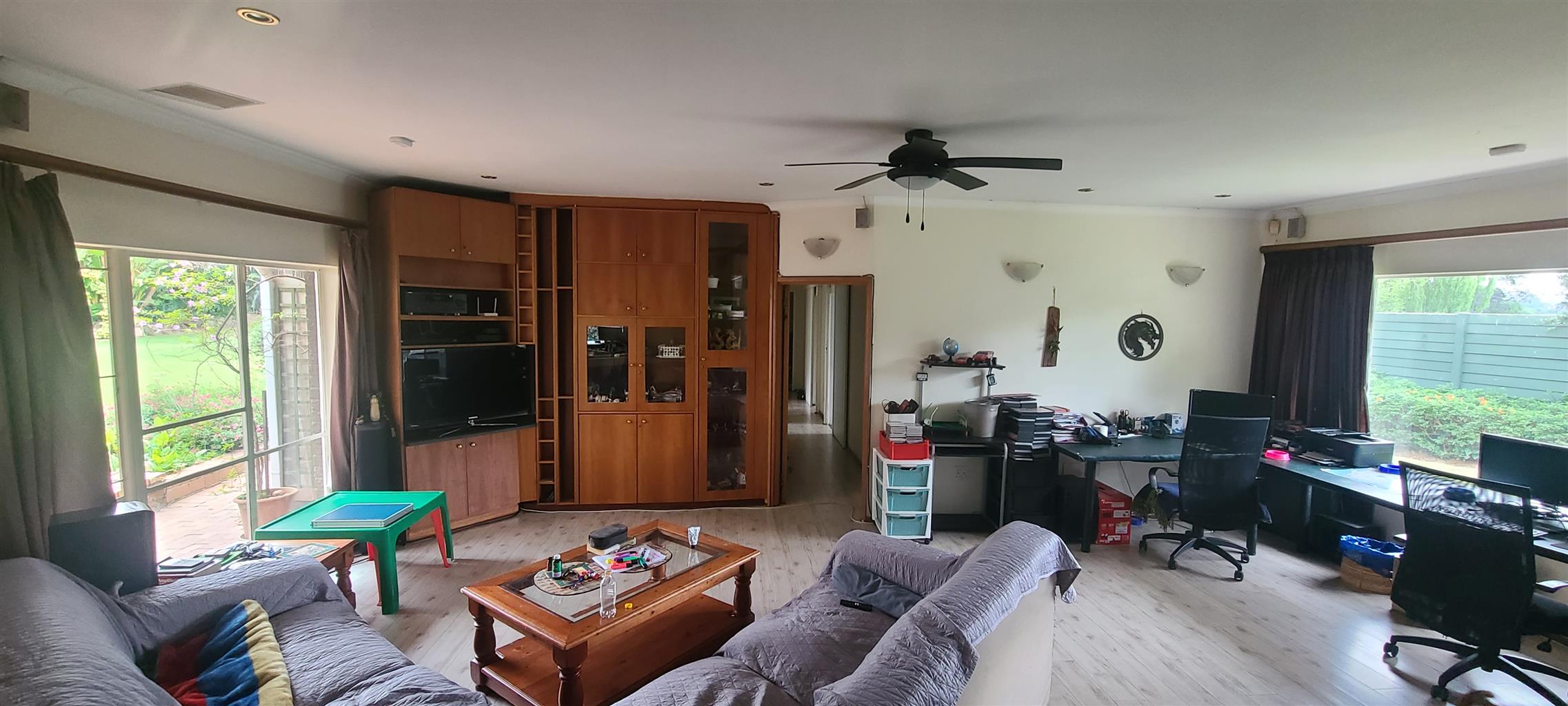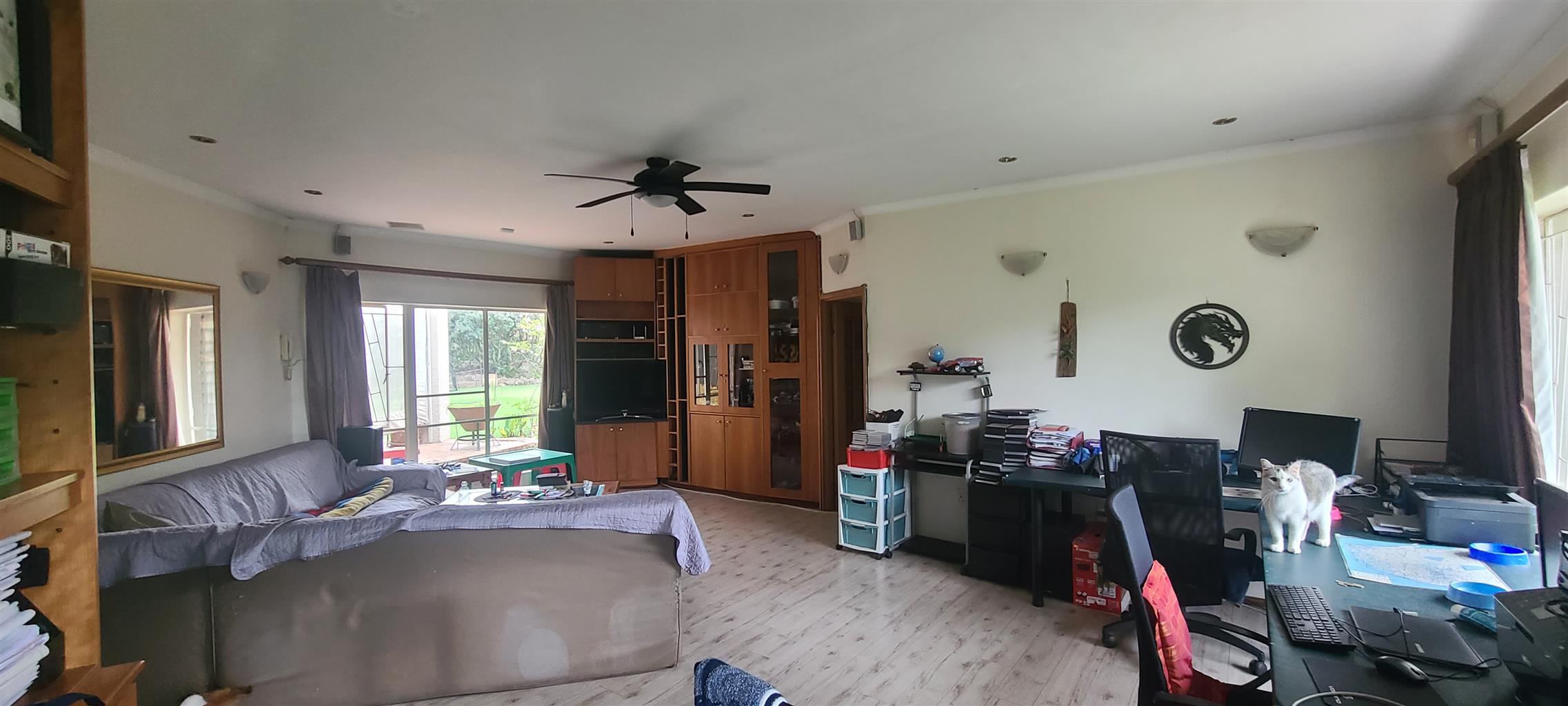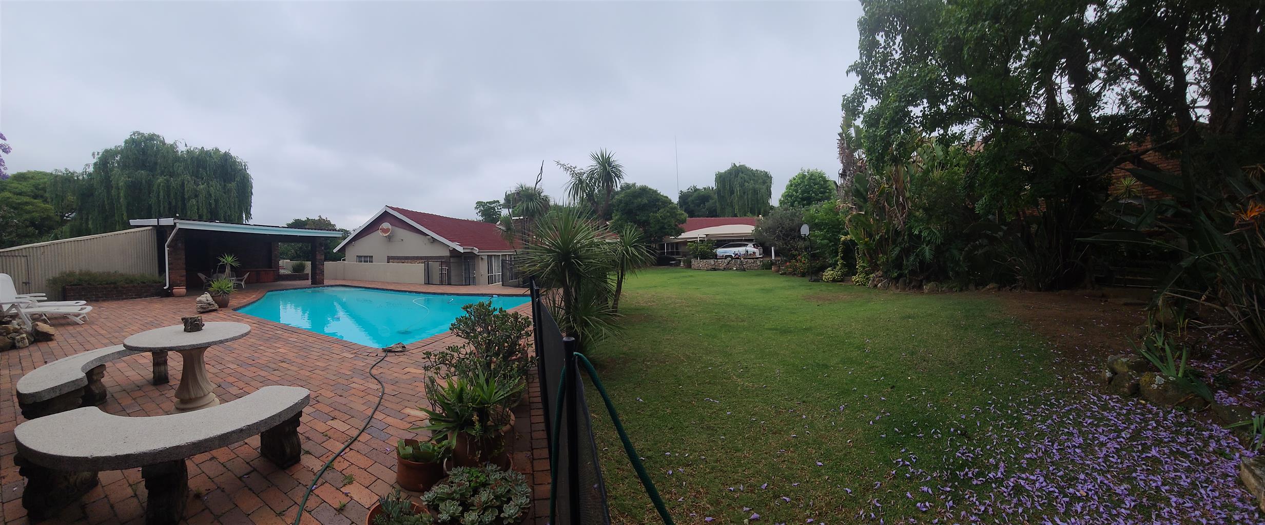 A must see. Neat and spacious home with a character, located in a boomed on a private cul de sec road. Offers five spacious bedrooms with modern sliding mirror door cupboards. Four modern full bathrooms and a guest toilet. Neat, modern, tiled cherry wood cupboard and granite tops kitchen. Open plan lounge and a dining. There is a massive self-contained two bedrooms cottage and a studio. There is a massive closed off entertainment area, and another open entertainment area right next to the pool. Lovely low maintenance garden. Double carports extra parking. Burglar proofed throughout, high walls with electric fence all around. It is near many good Edenvale schools & Greenstone mall.