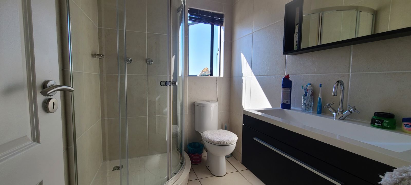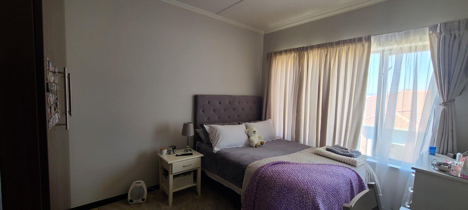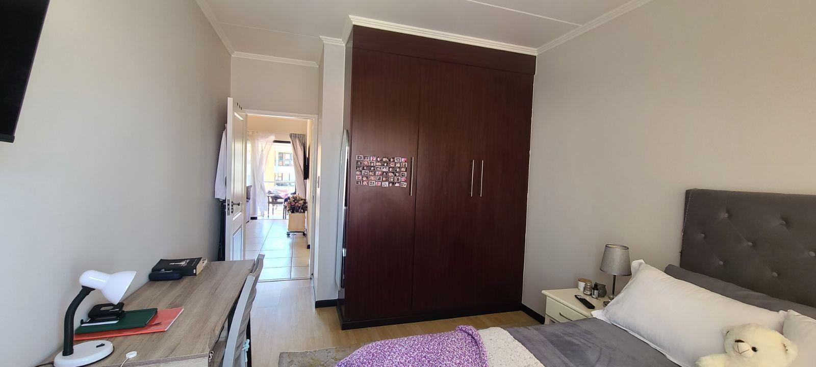 This spacious unit is in a very secure complex with 24 hours security guards, CCTV cameras and continuously patrols. It located right next to Green Valley & Greenstone mall. It offers huge open plan lounge, dining room, modern huge and neat kitchen with granites tops. Spacious two bedrooms with cupboards and tiled floors. Two modern full bathrooms, bath, shower, basin and toilet. There is a balcony with a built-in braai. Lovely communal gardens with two swimming pools (one for kids), children play ground, day-care centre, gym and conference room.