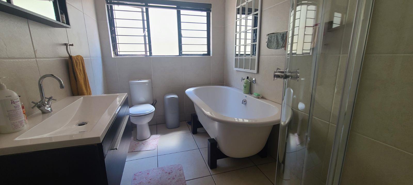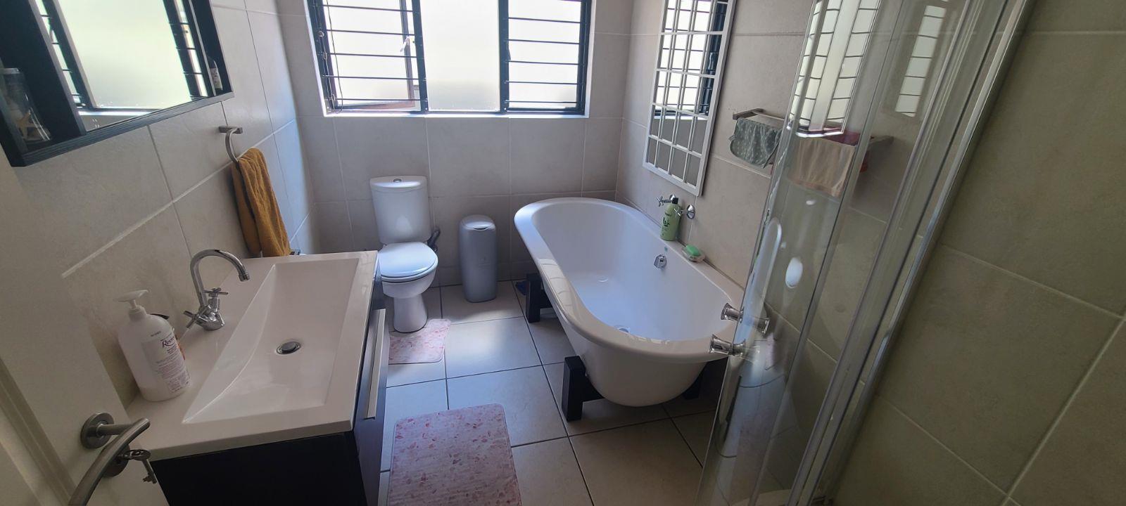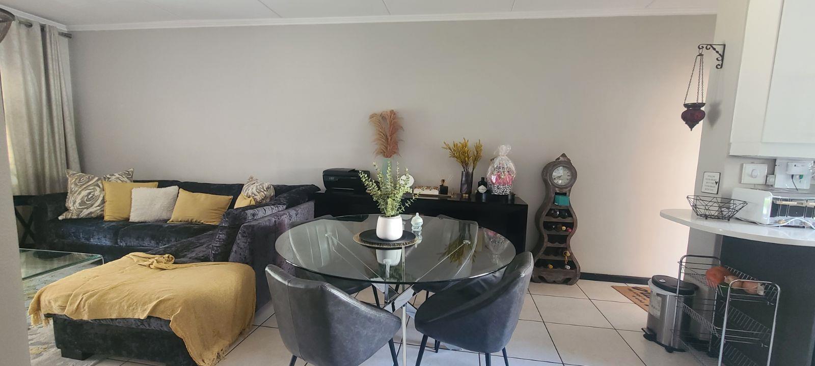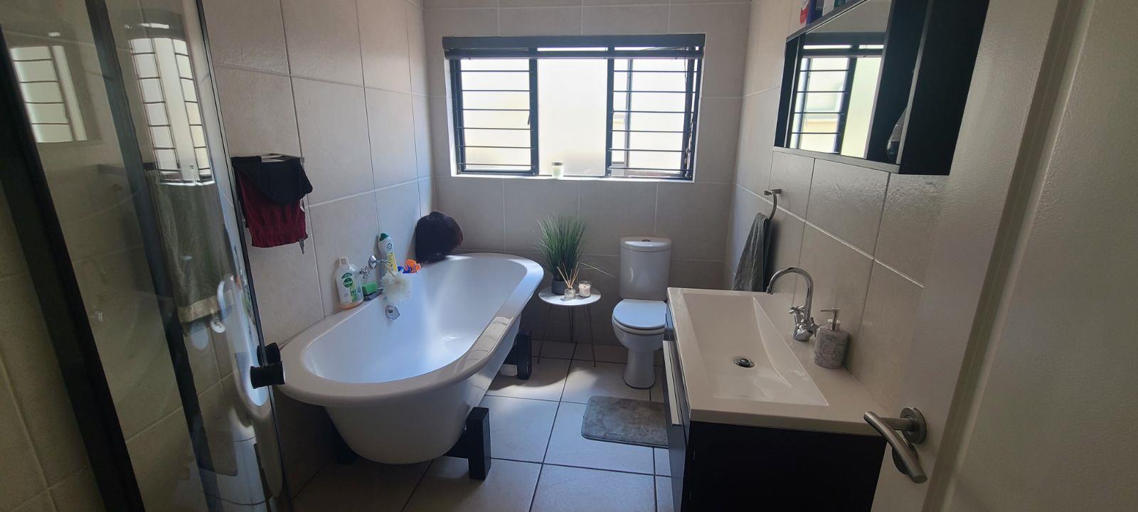 This spacious unit is in a very secure complex with 24 hours security guards, CCTV cameras and continuously patrols. It located right next to Green Valley & Greenstone Mall. It offers a huge open plan lounge, dining room, modern huge and neat kitchen with granites tops. Spacious three bedrooms with cupboards and tiled floors. Two modern full bathrooms, bath, shower, basin and toilet. Lovely private garden. There are communal two swimming pools (one for kids), children's play ground, day-care centre, gym and conference room. Ideal for young at heart.