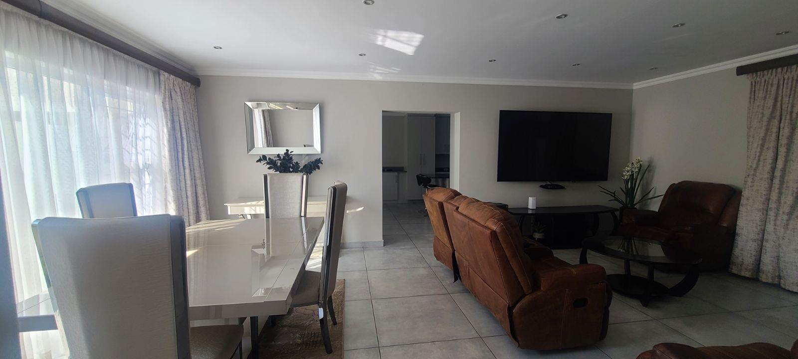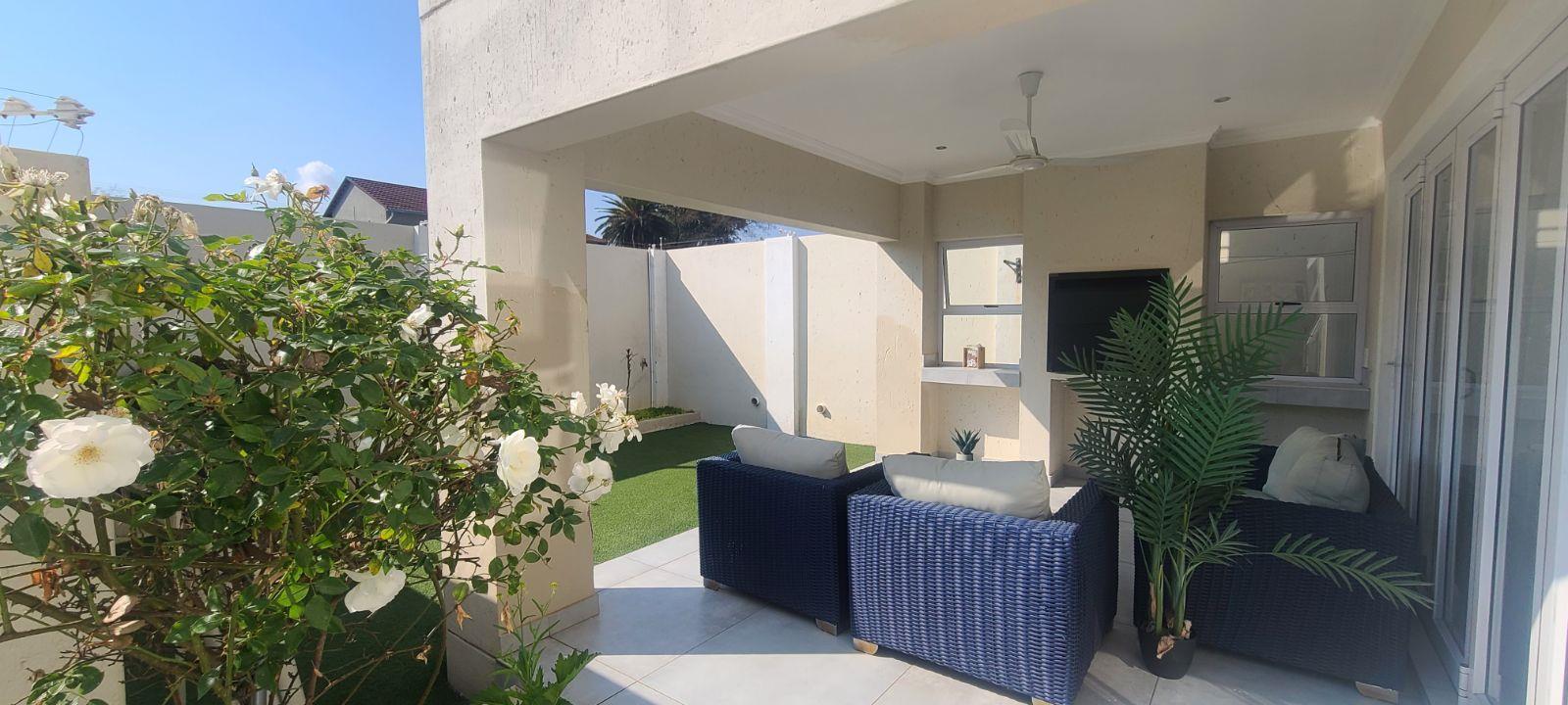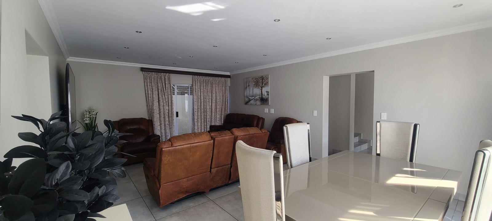 This is a brand new complex. Electric fence, remote controlled main gate, huge double garages, high walls with electric fence and very secure. Just move in without lifting a finger.