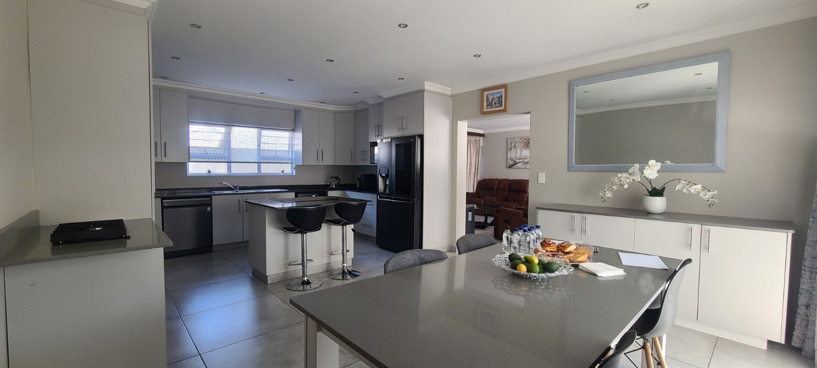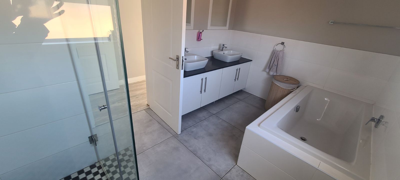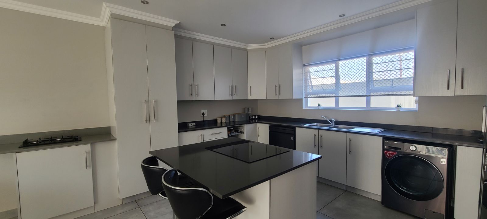 This is a brand new complex. Electric fence, remote controlled main gate, huge double garages, high walls with electric fence and very secure. Just move in without lifting a finger.