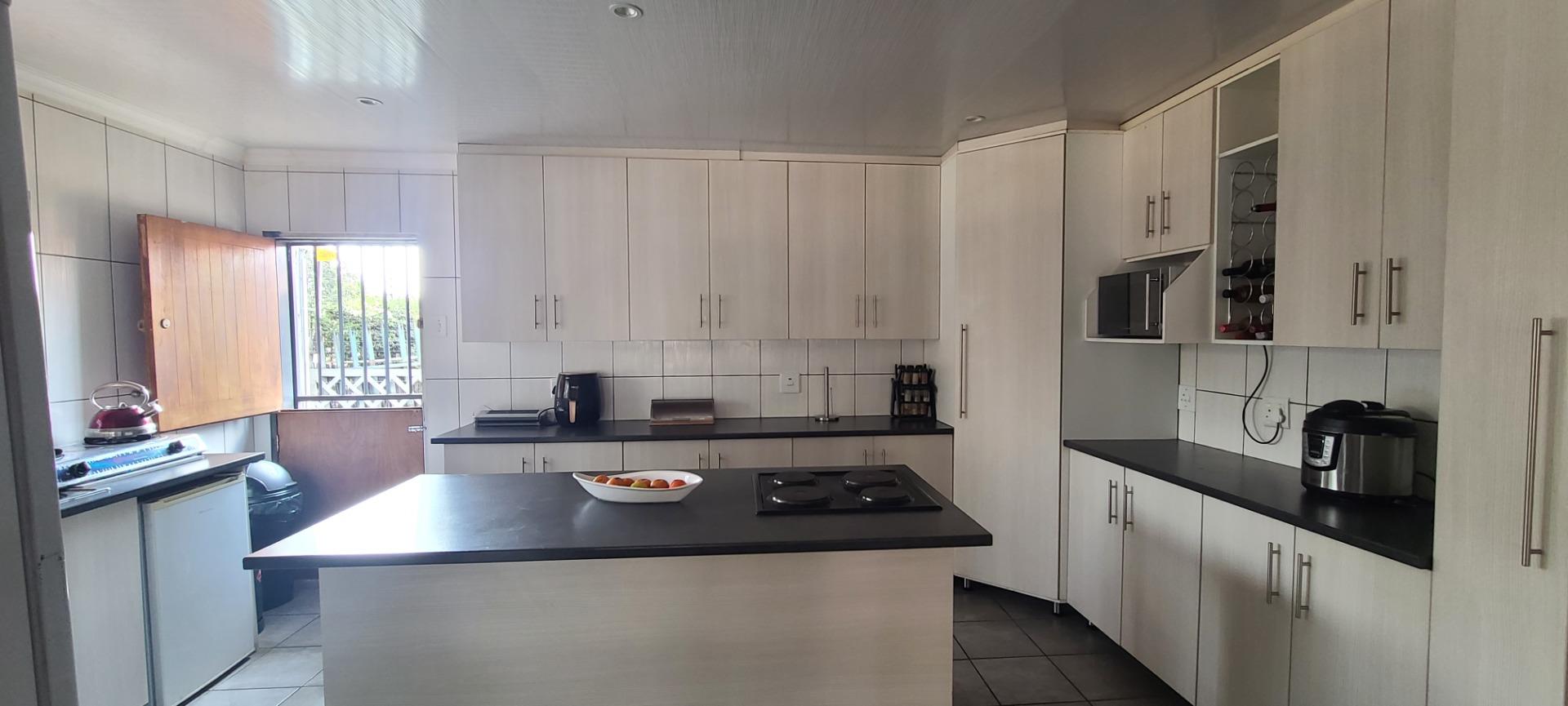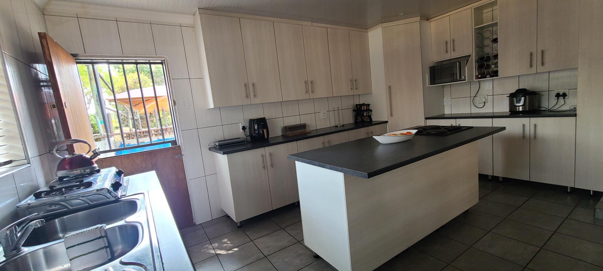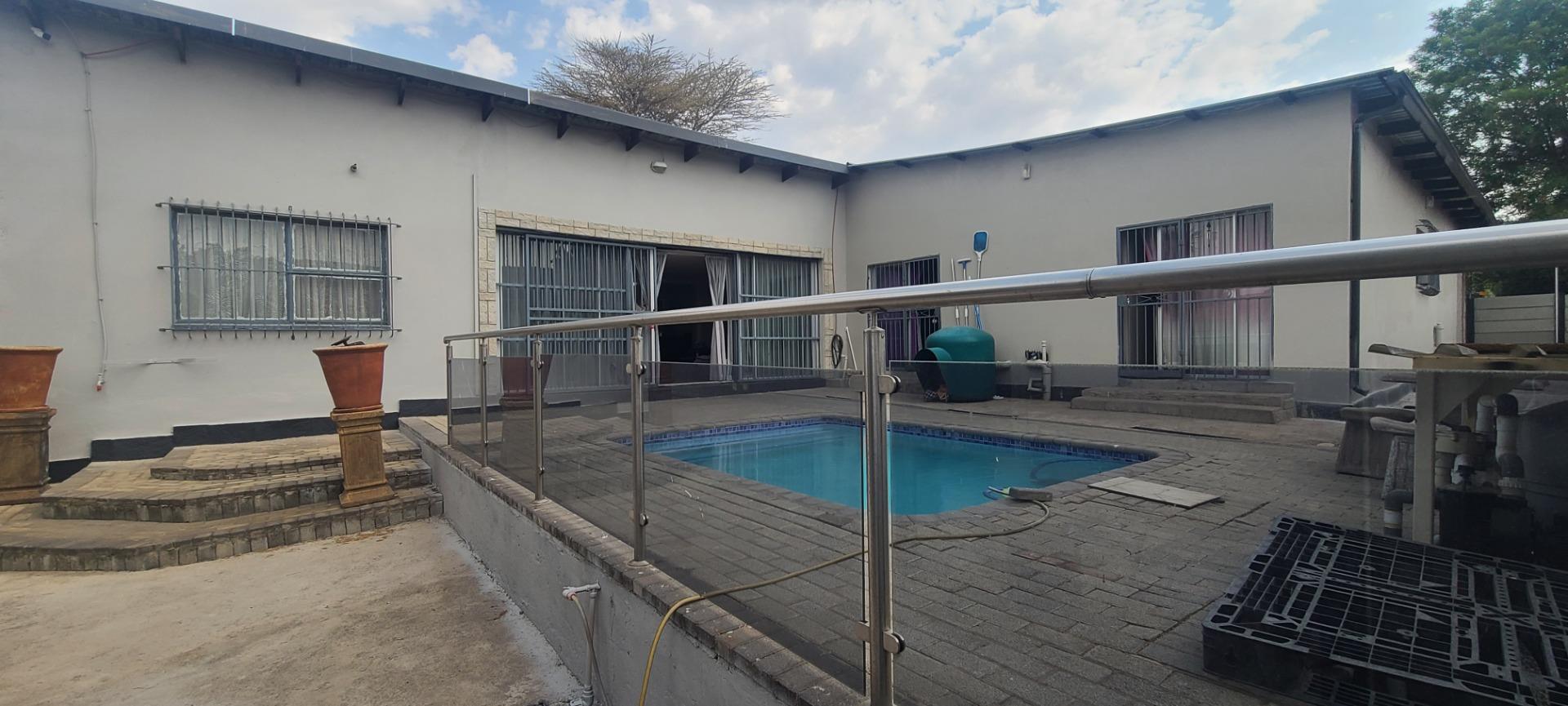 These two homes are spacious, modern and lovely finishes throughout. They are located near the schools and the police station. Both homes are offering huge open plan lounges, dining rooms and spacious and modern neat kitchens each (one with centre island). Six bedrooms with cupboards (3 beds per each house) and four bathrooms, two ensuites. There is one bed, self-contained cottage. Alarm system. High walls with electric fence. Three garages, a carport and extra parking. Covered entertainment area with a built-in braai and a pool.
