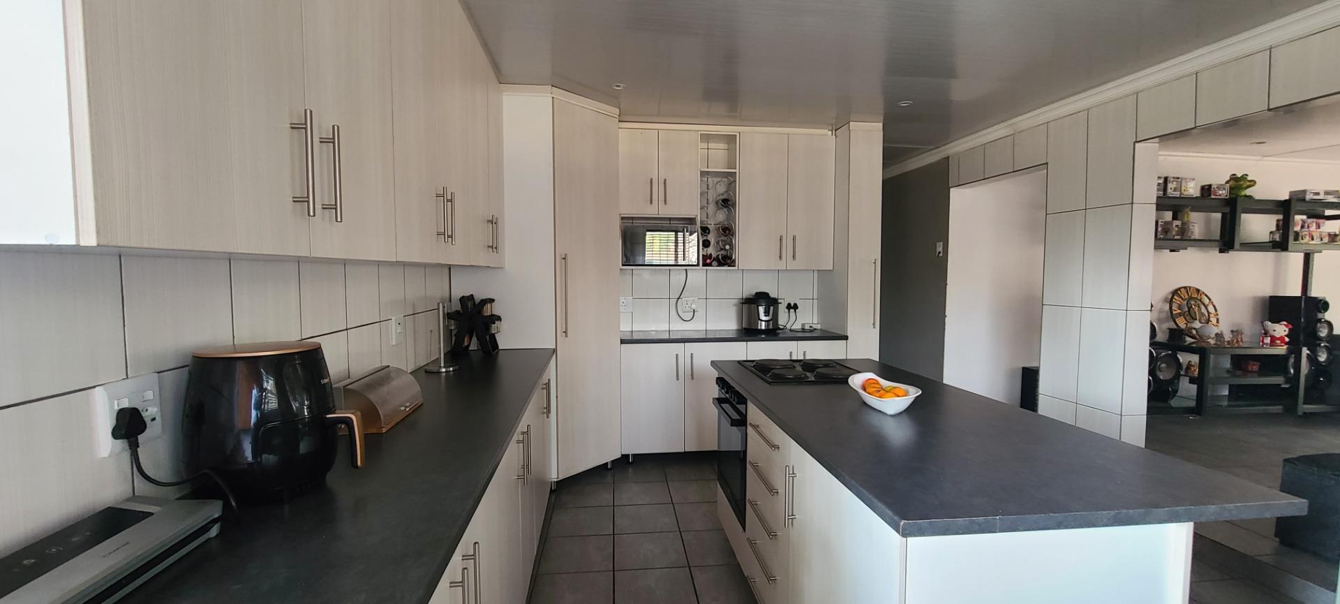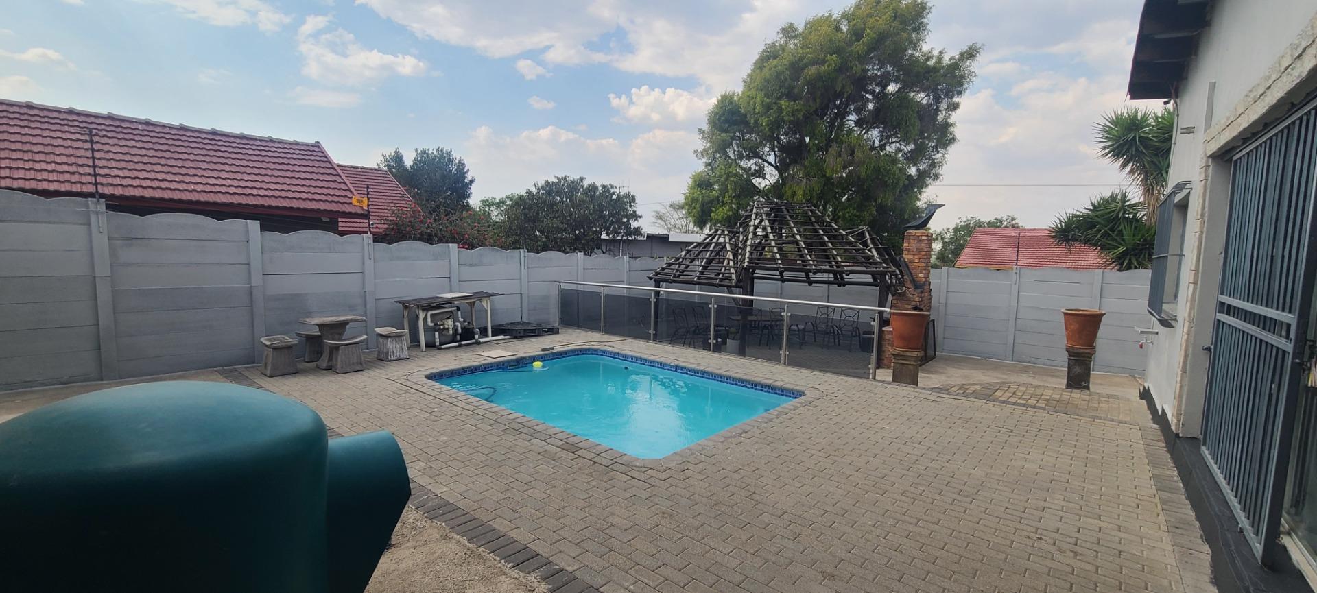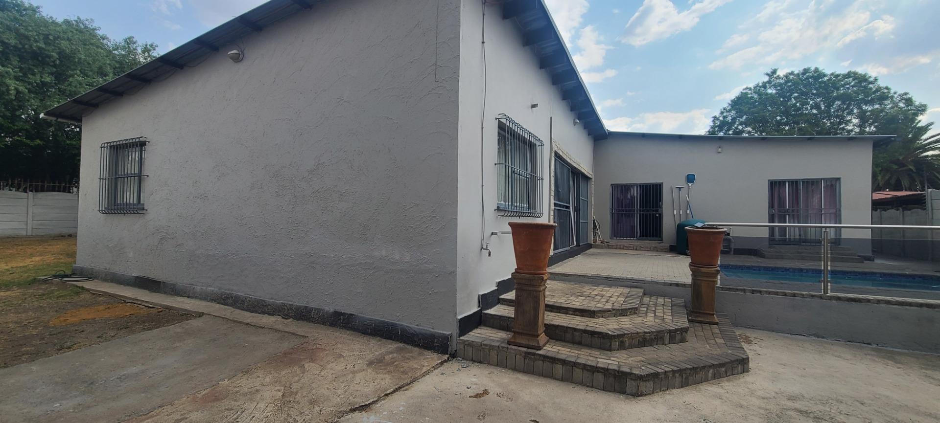 These two homes are spacious, modern and lovely finishes throughout. They are located near the schools and the police station. Both homes are offering huge open plan lounges, dining rooms and spacious and modern neat kitchens each (one with centre island). Six bedrooms with cupboards (3 beds per each house) and four bathrooms, two ensuites. There is one bed, self-contained cottage. Alarm system. High walls with electric fence. Three garages, a carport and extra parking. Covered entertainment area with a built-in braai and a pool.
