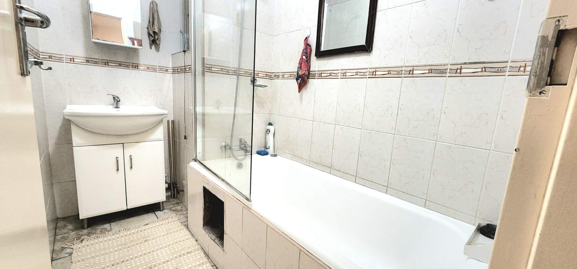 Kitchen - portable electric stove with oven, top loader washing machine connection, ample cupboard space